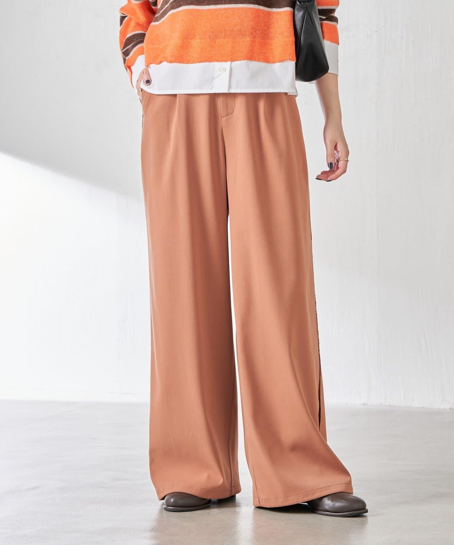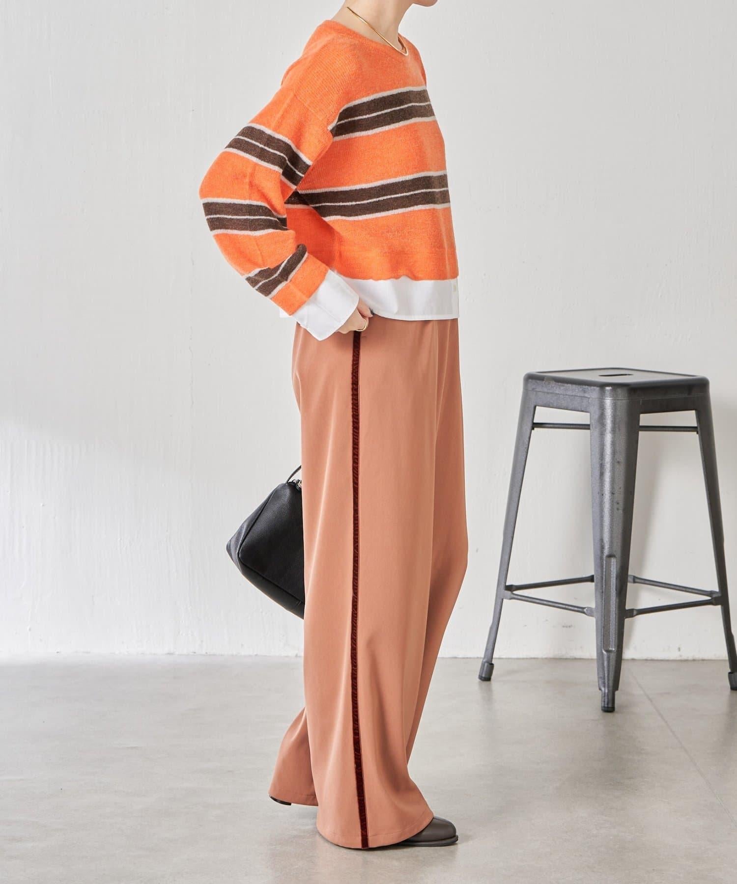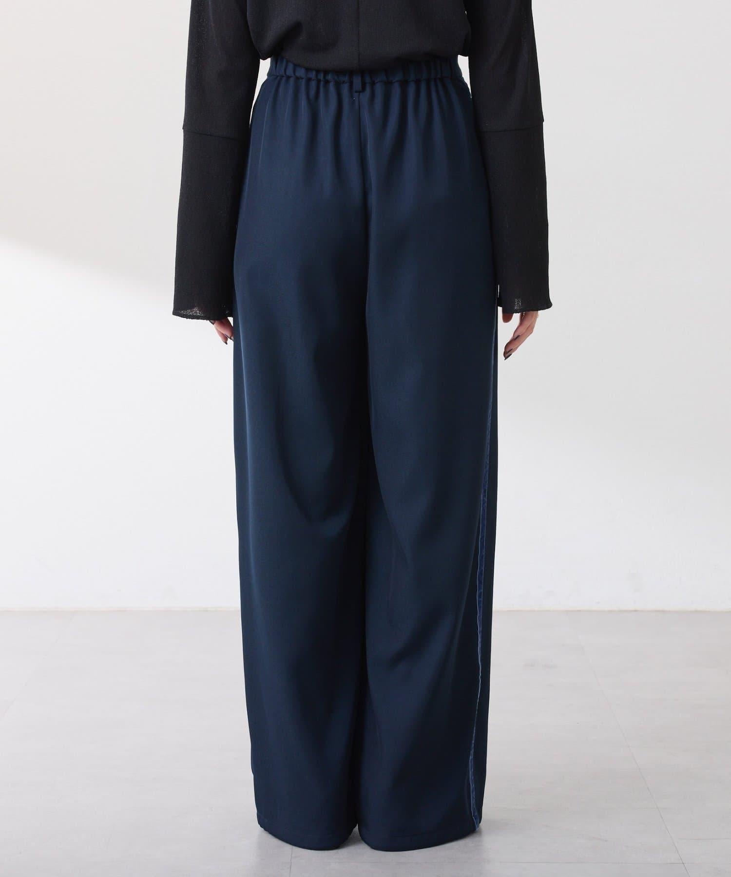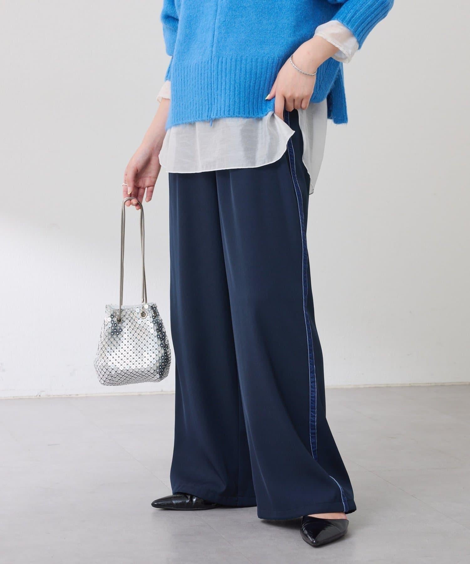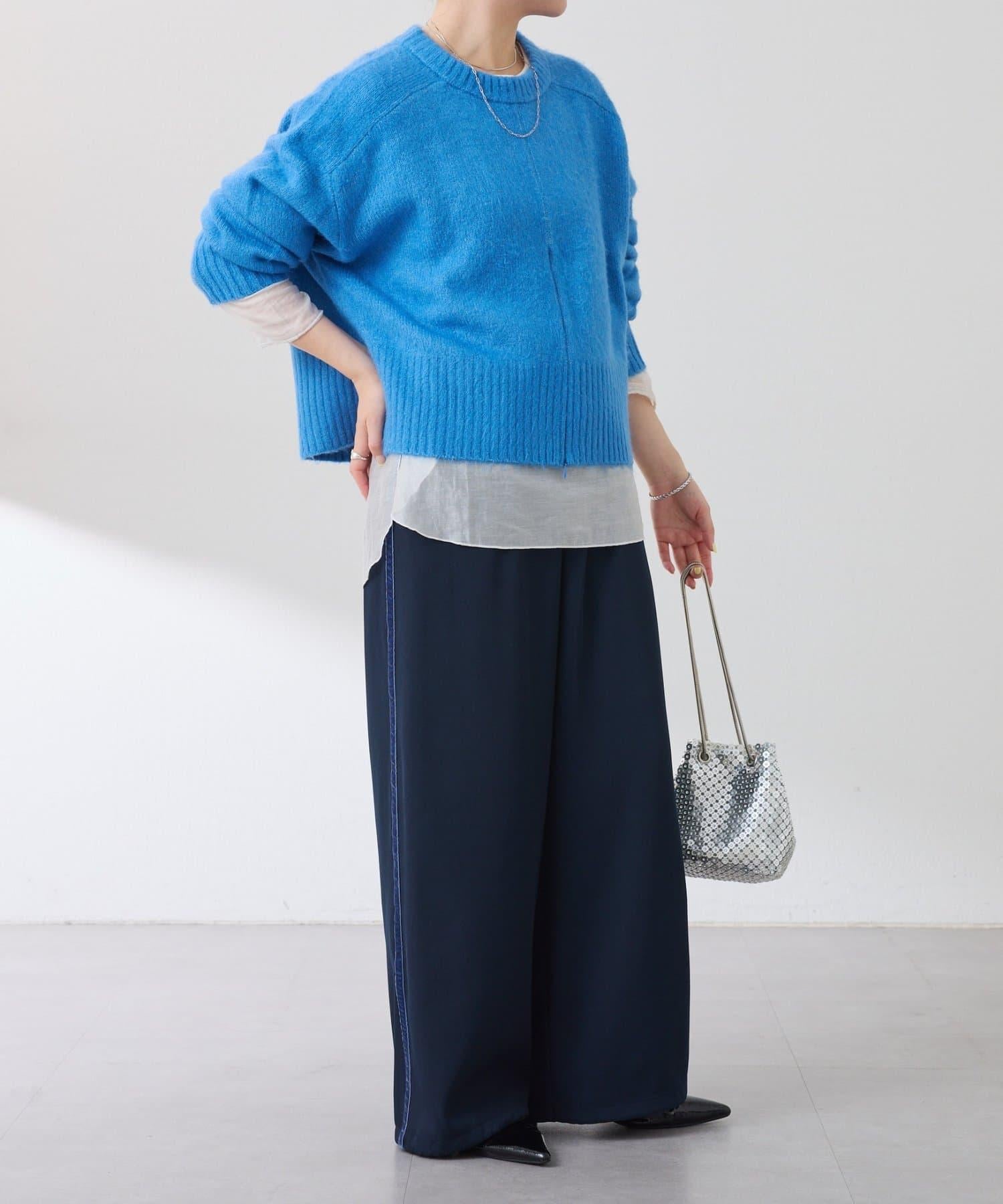 寬大的褲型輪廓優美,但由於採用了具有墜落感的面料,因此不會顯得過於寬大。