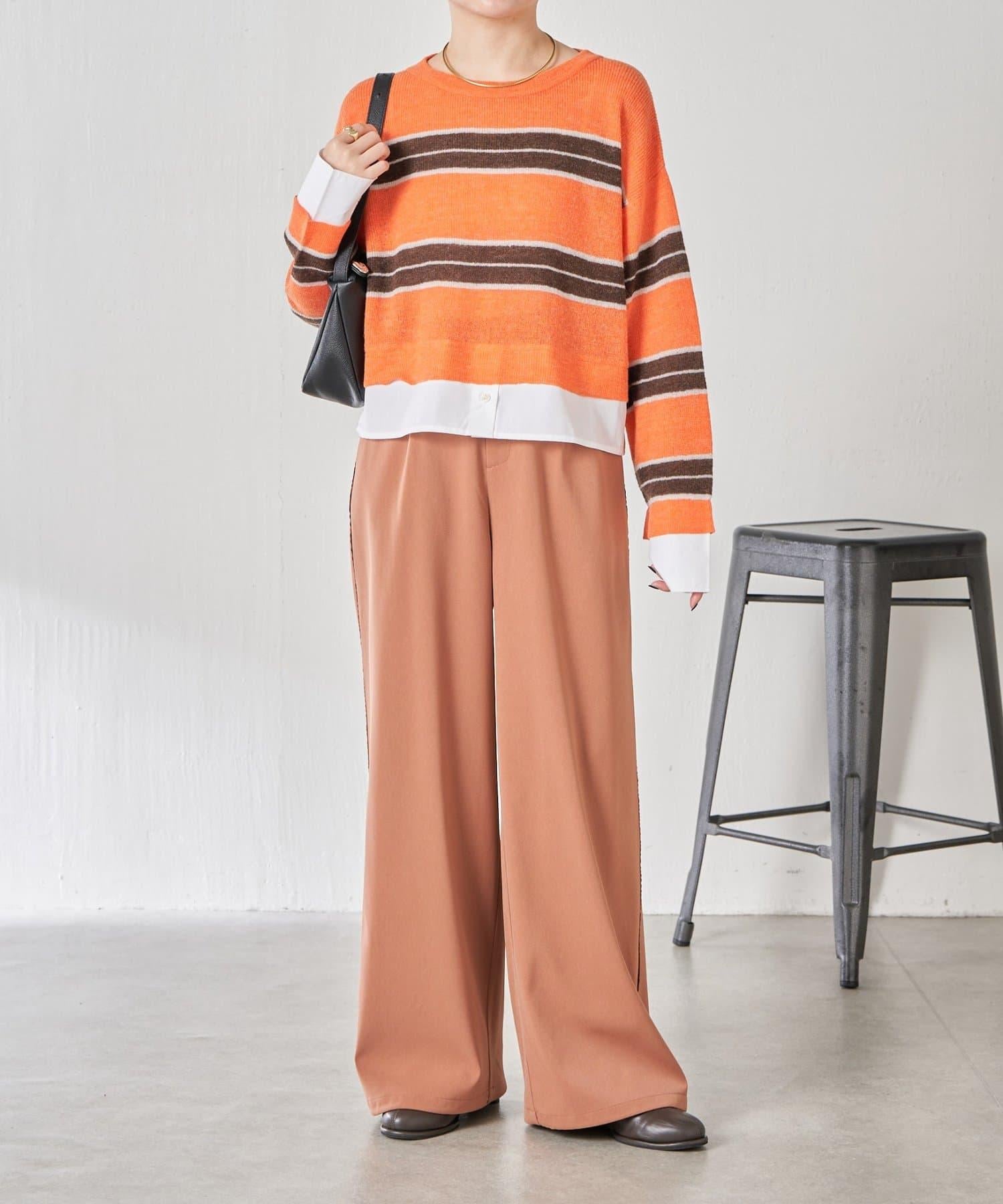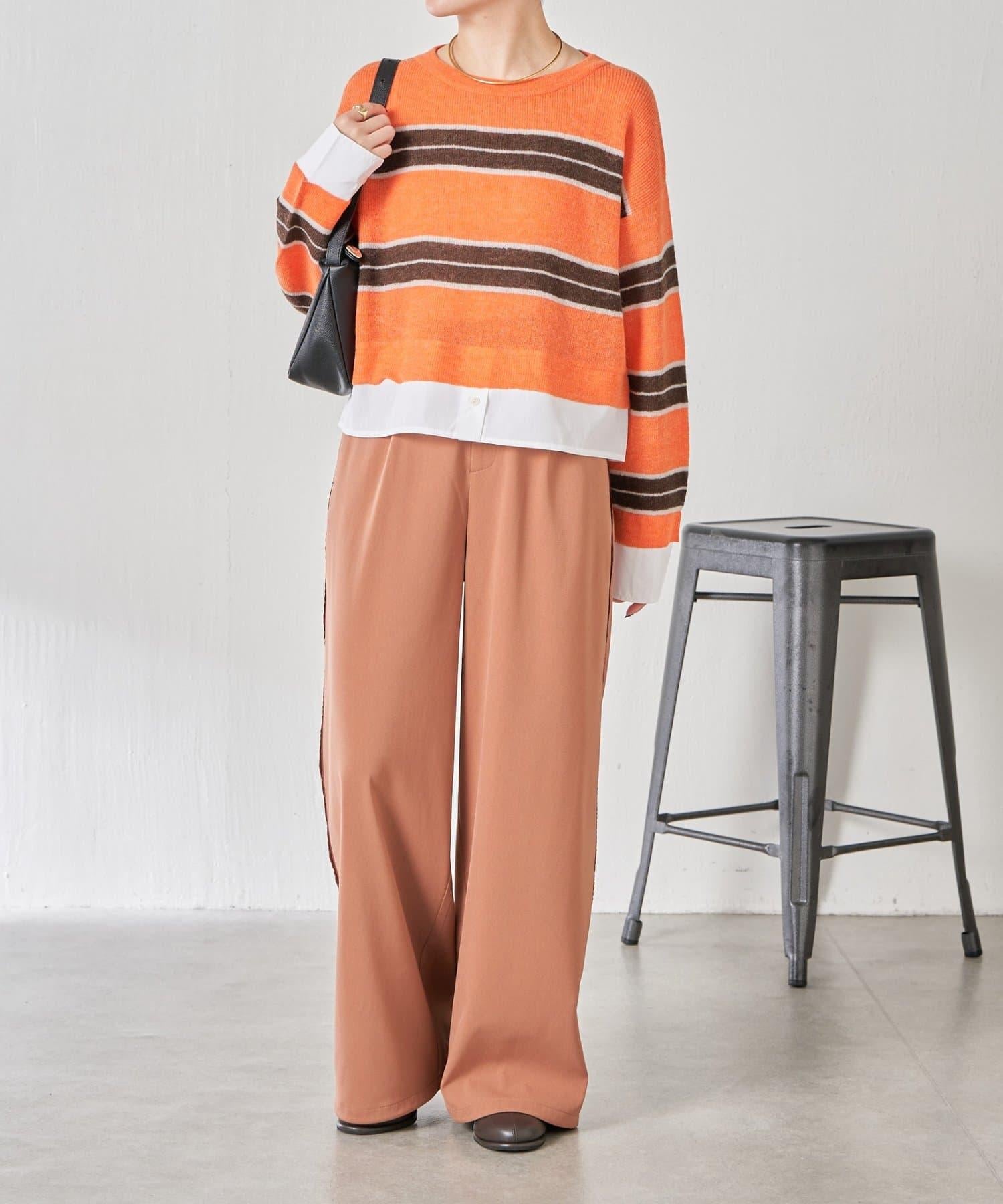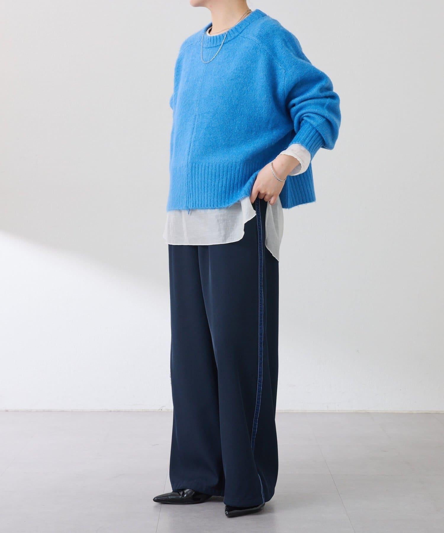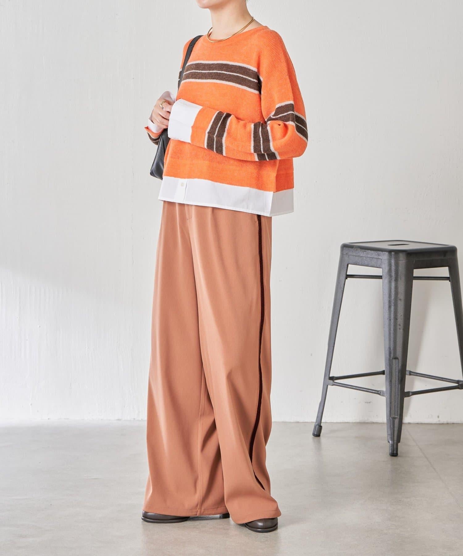寬大的褲型輪廓優美,但由於採用了具有墜落感的面料,因此不會顯得過於寬大。