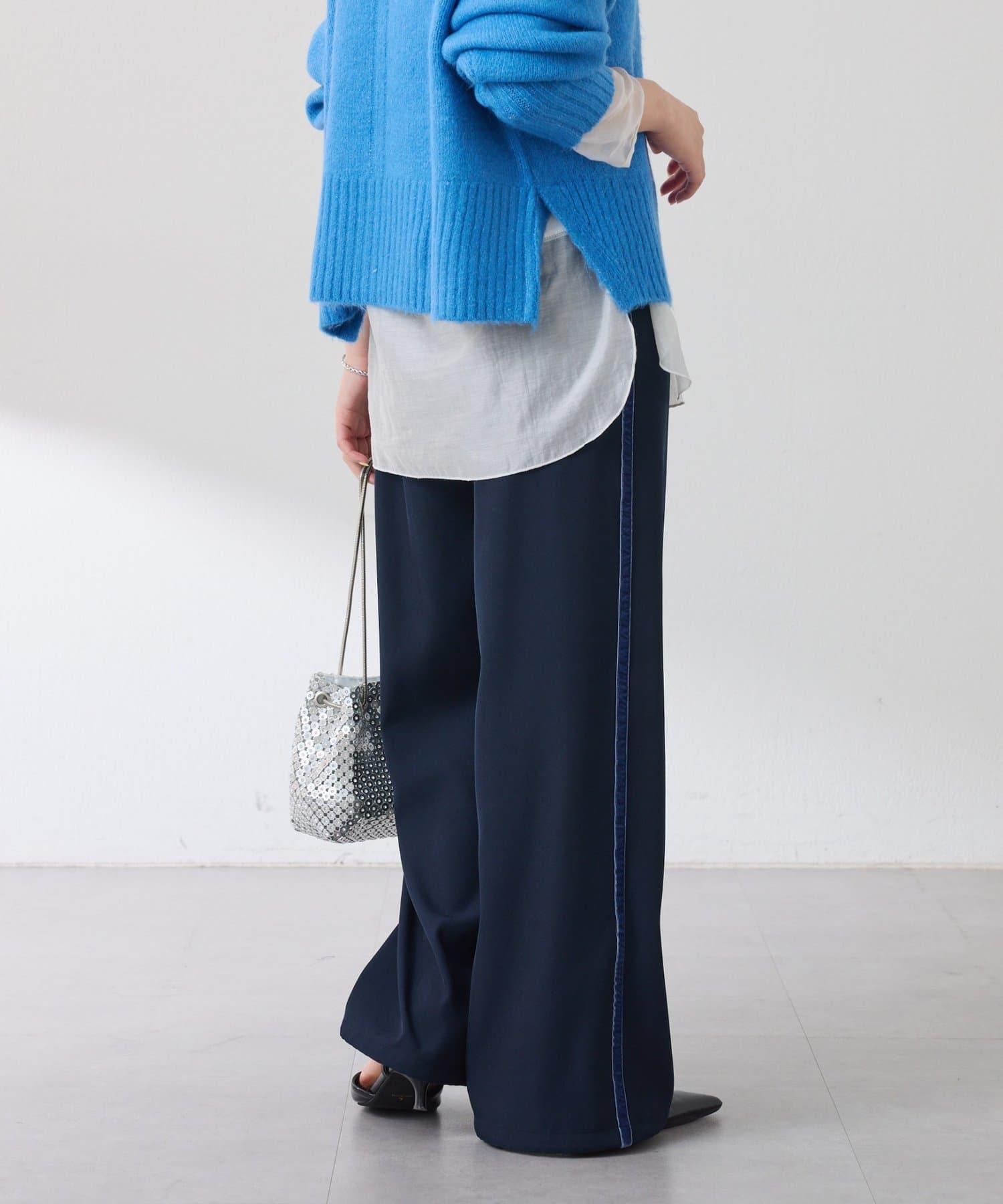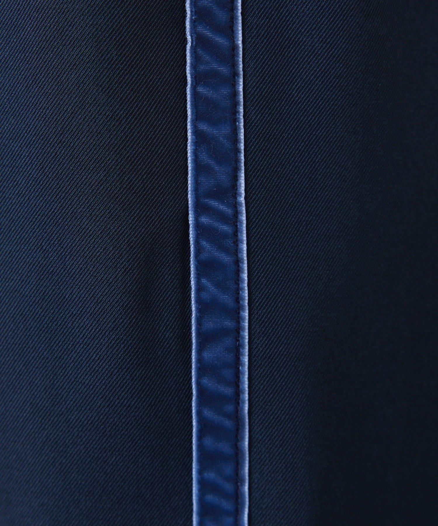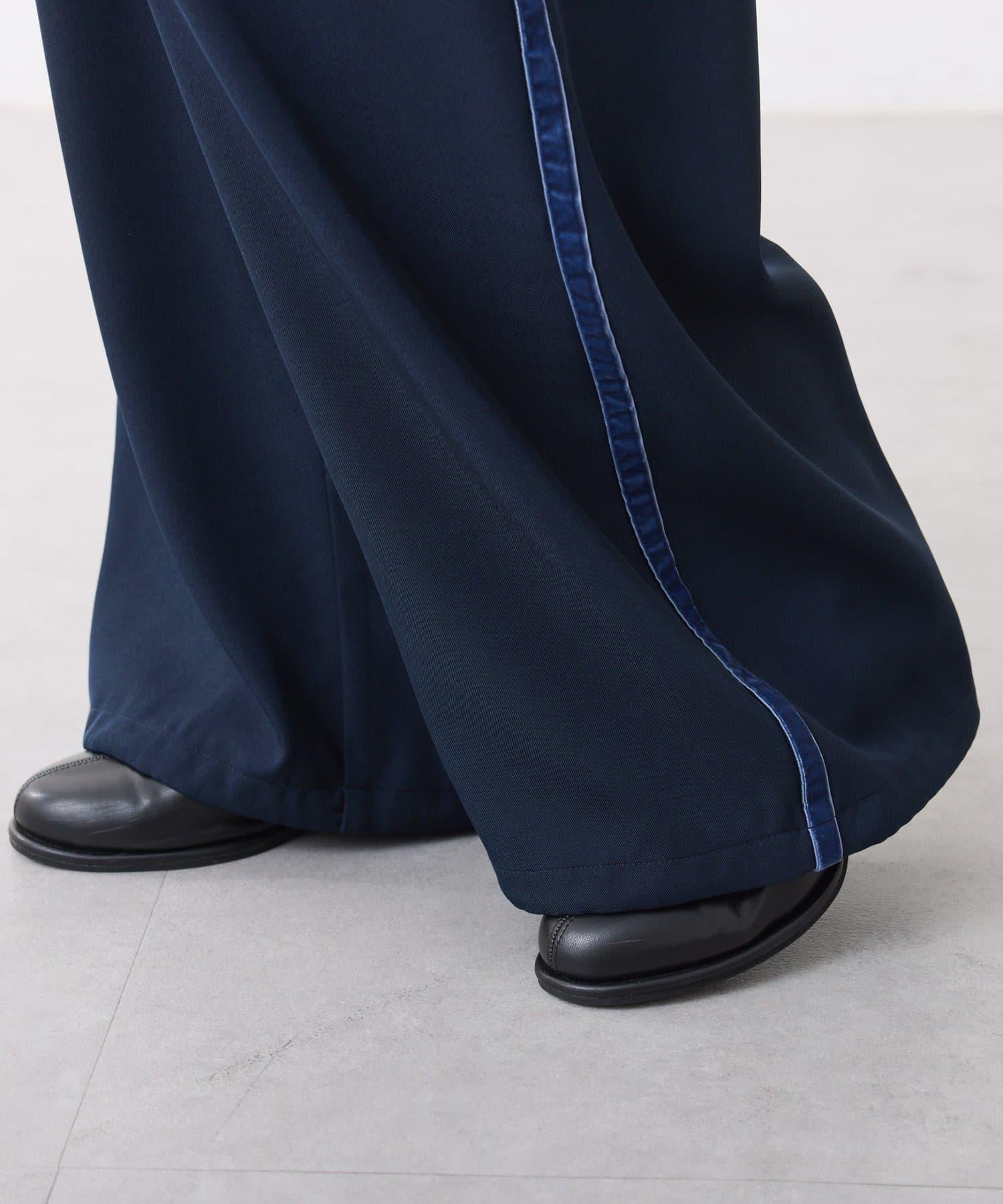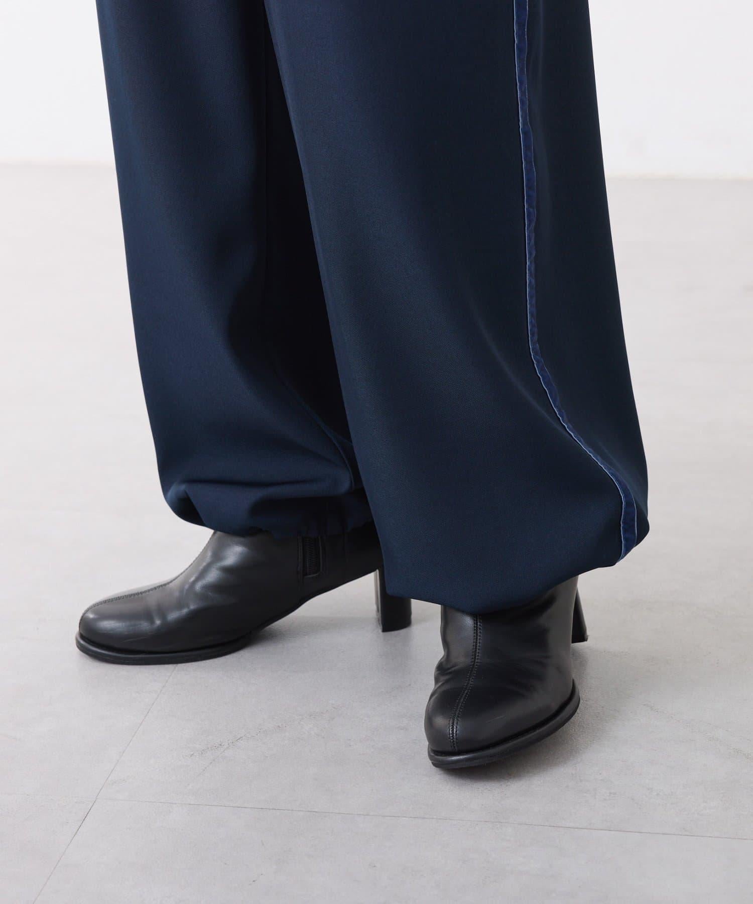 側邊的絲絨膠帶具有拉長腿部線條的效果。
