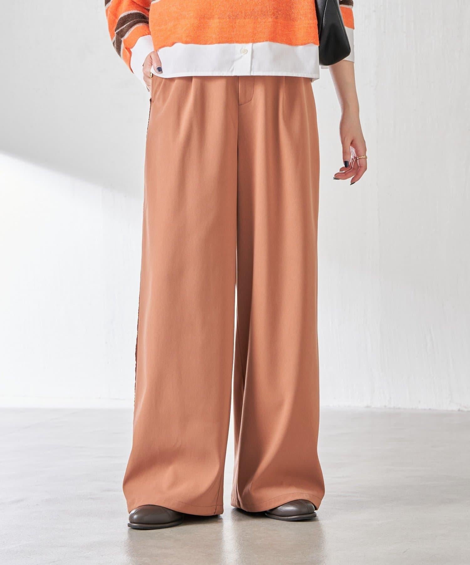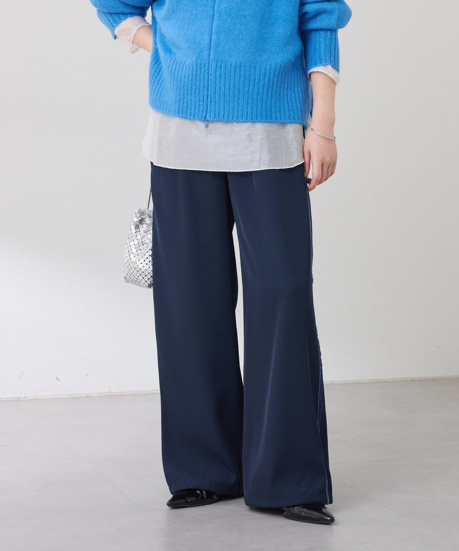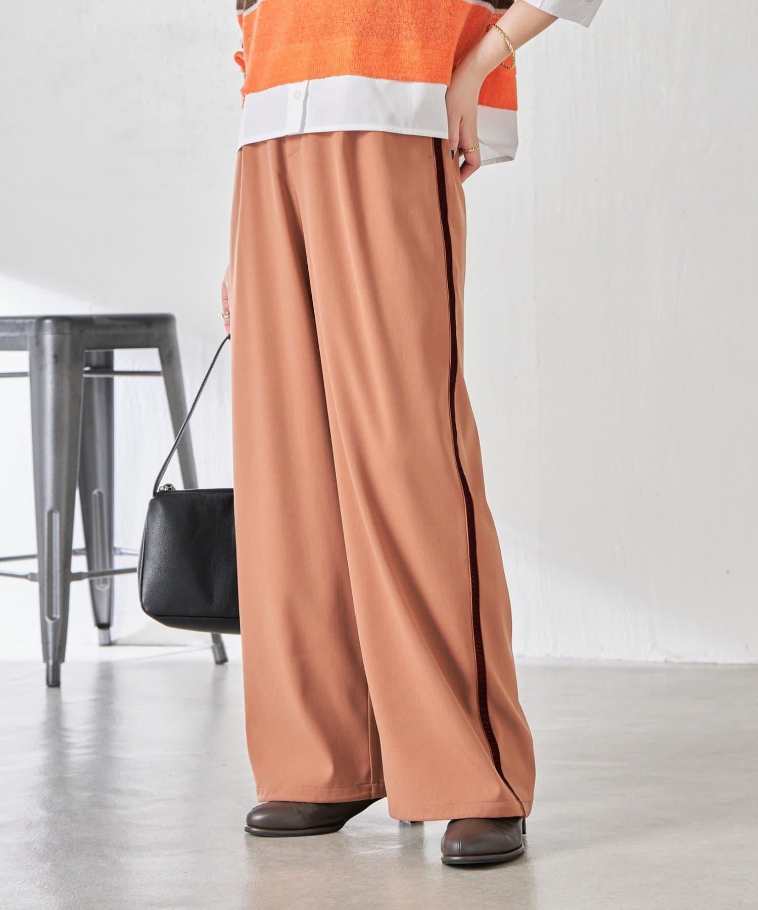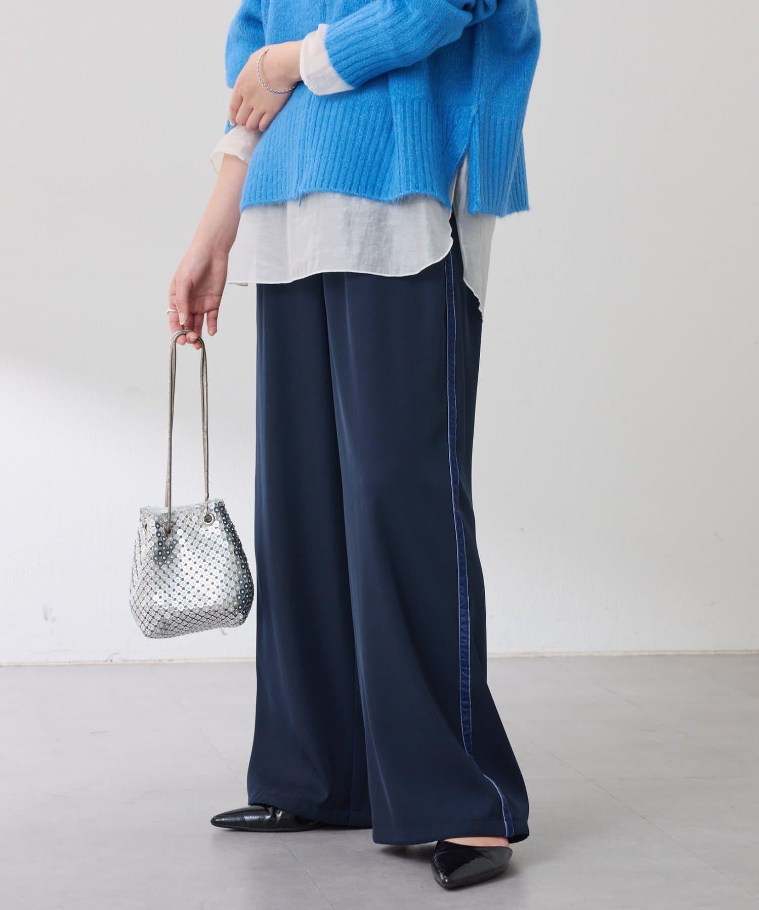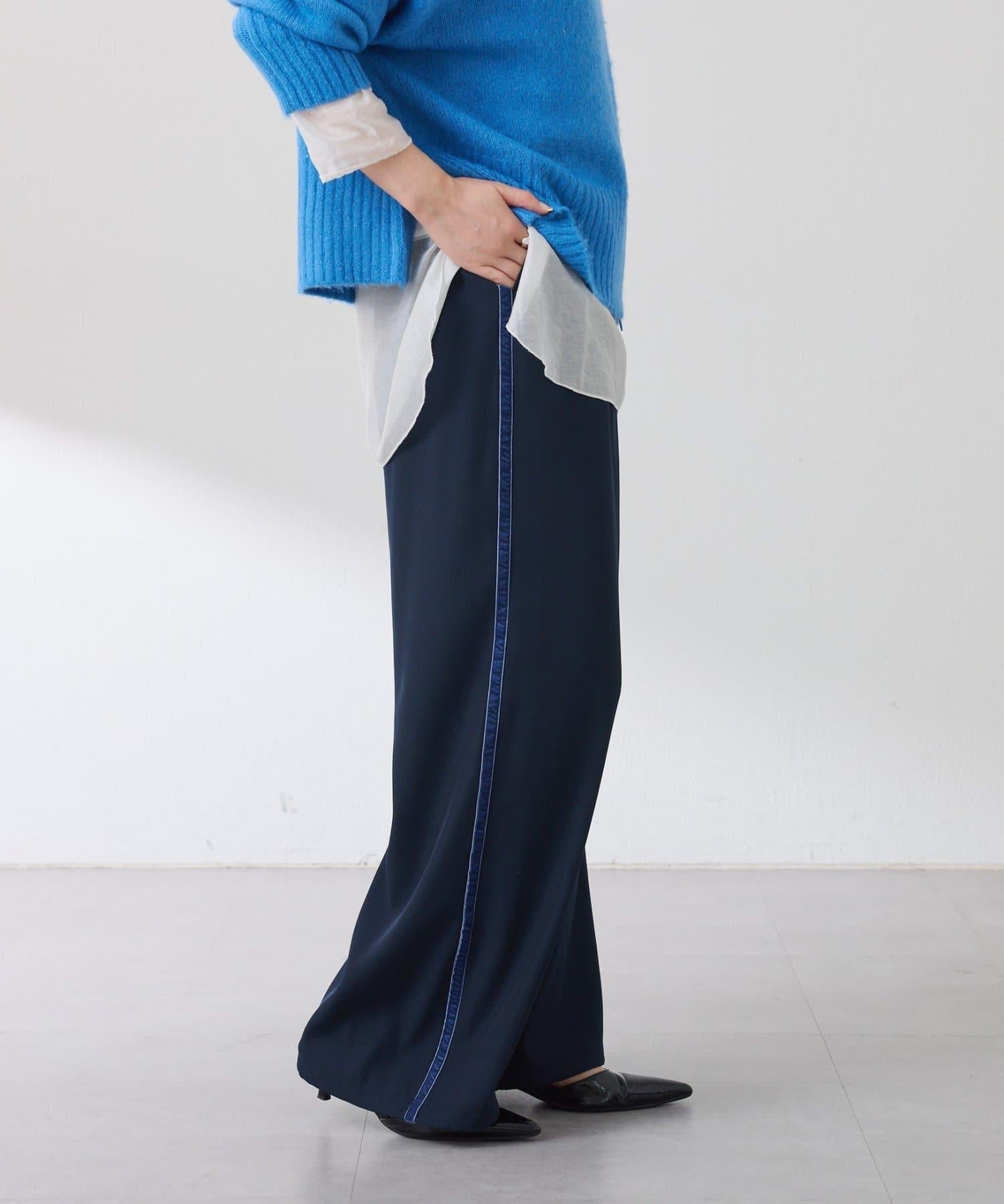 側邊的絲絨膠帶具有拉長腿部線條的效果。
