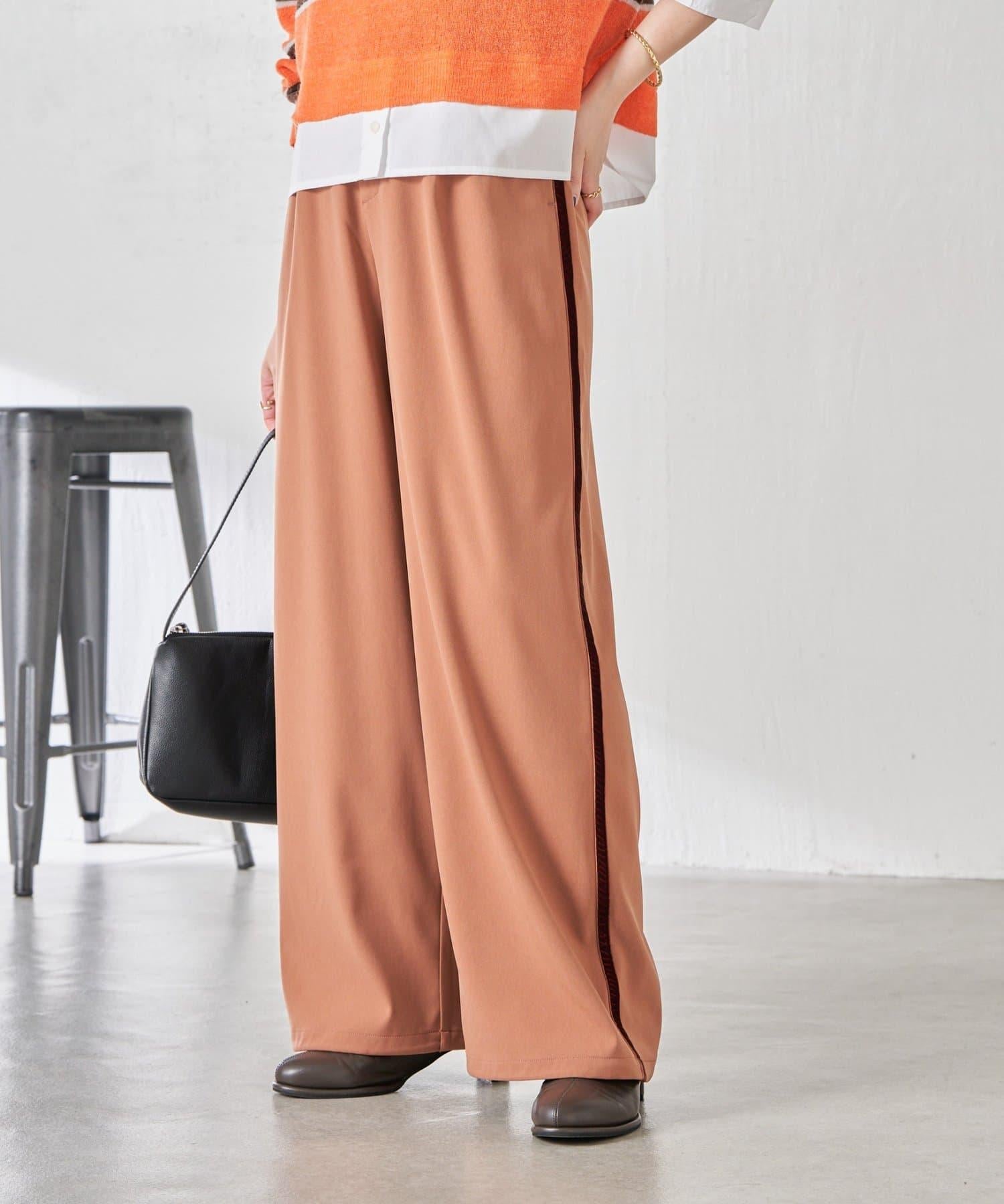 【美腿效果◎】側邊天鵝絨抽繩收口褲