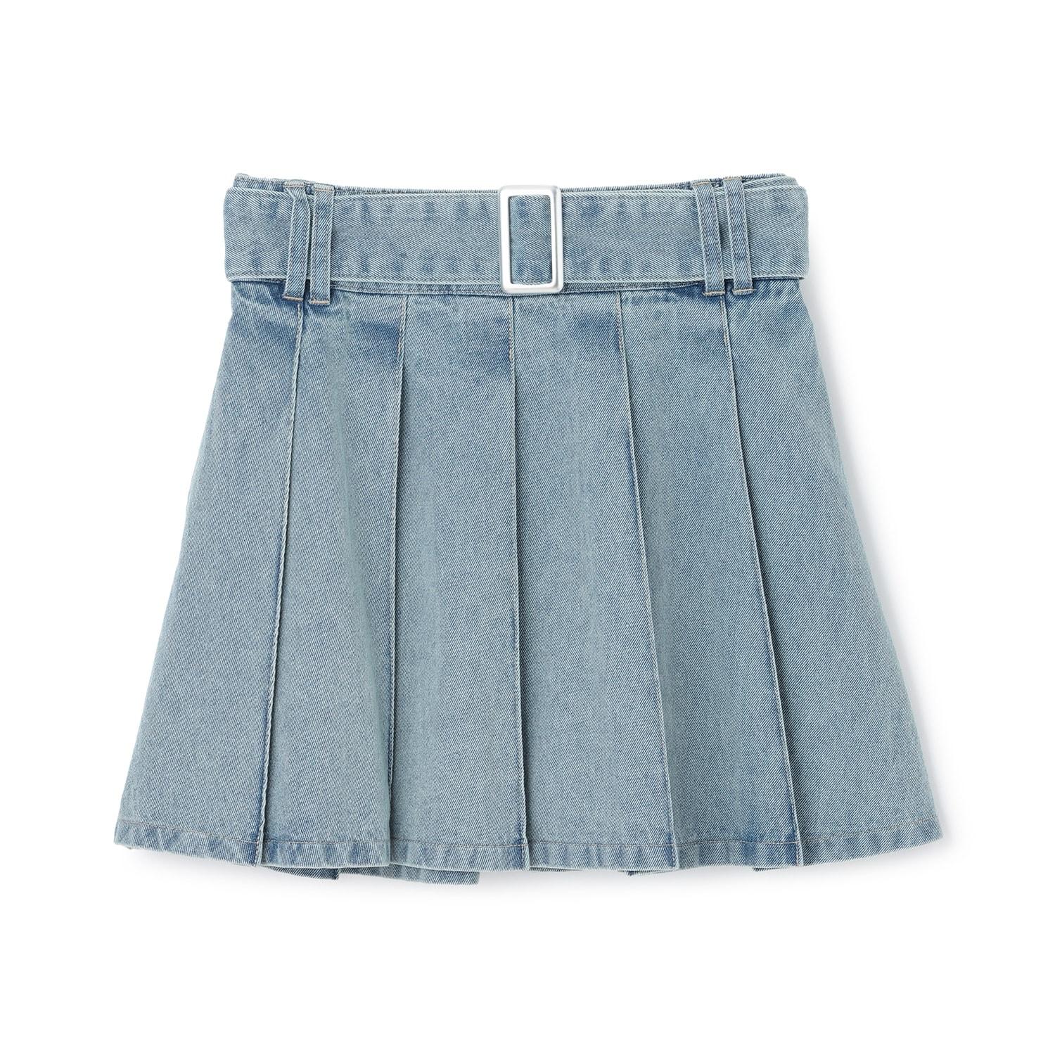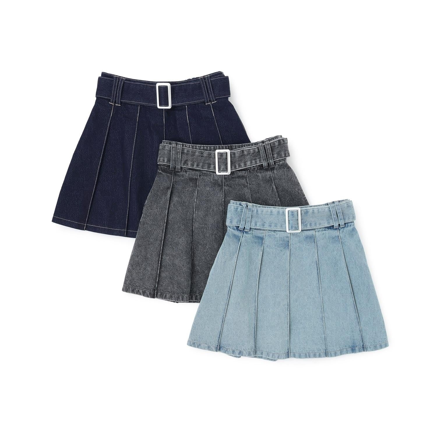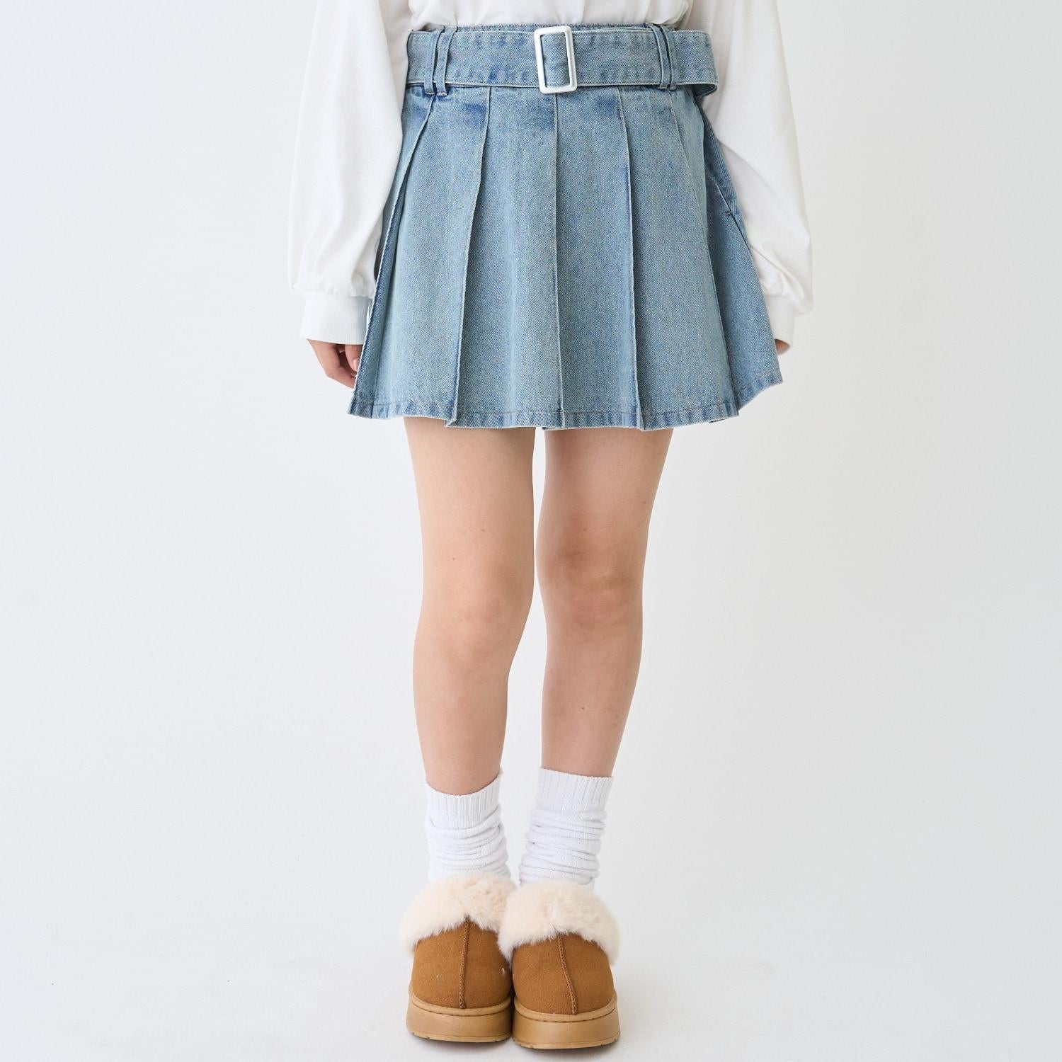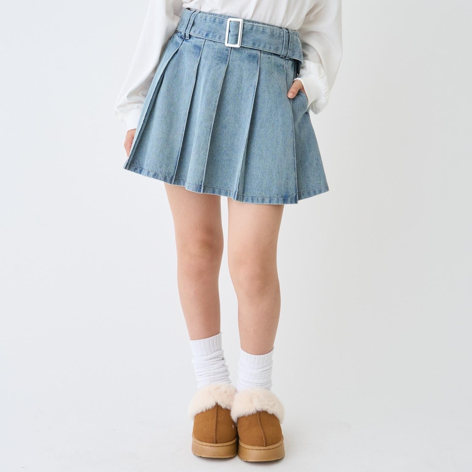 美腿顯瘦帶腰帶牛仔百褶裙