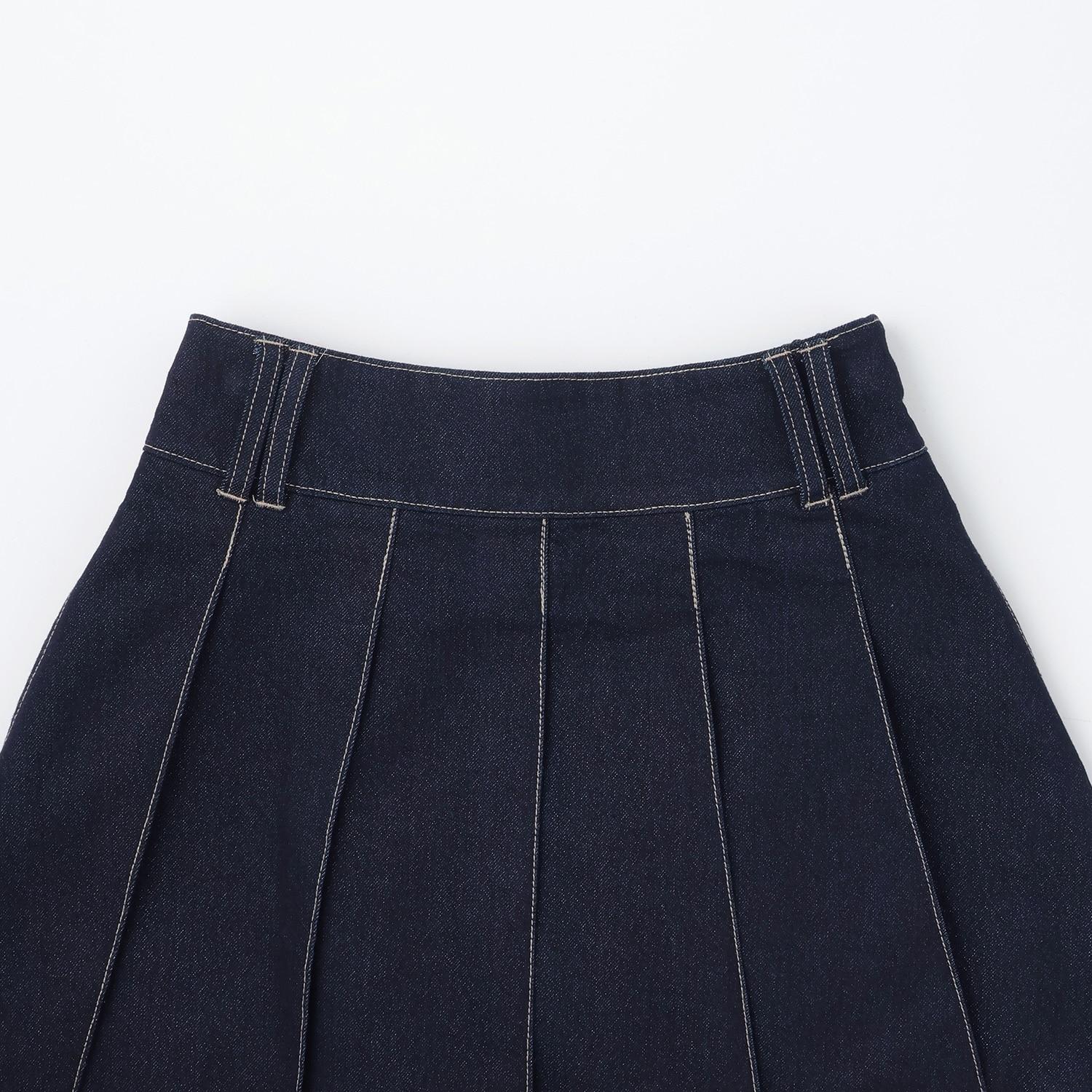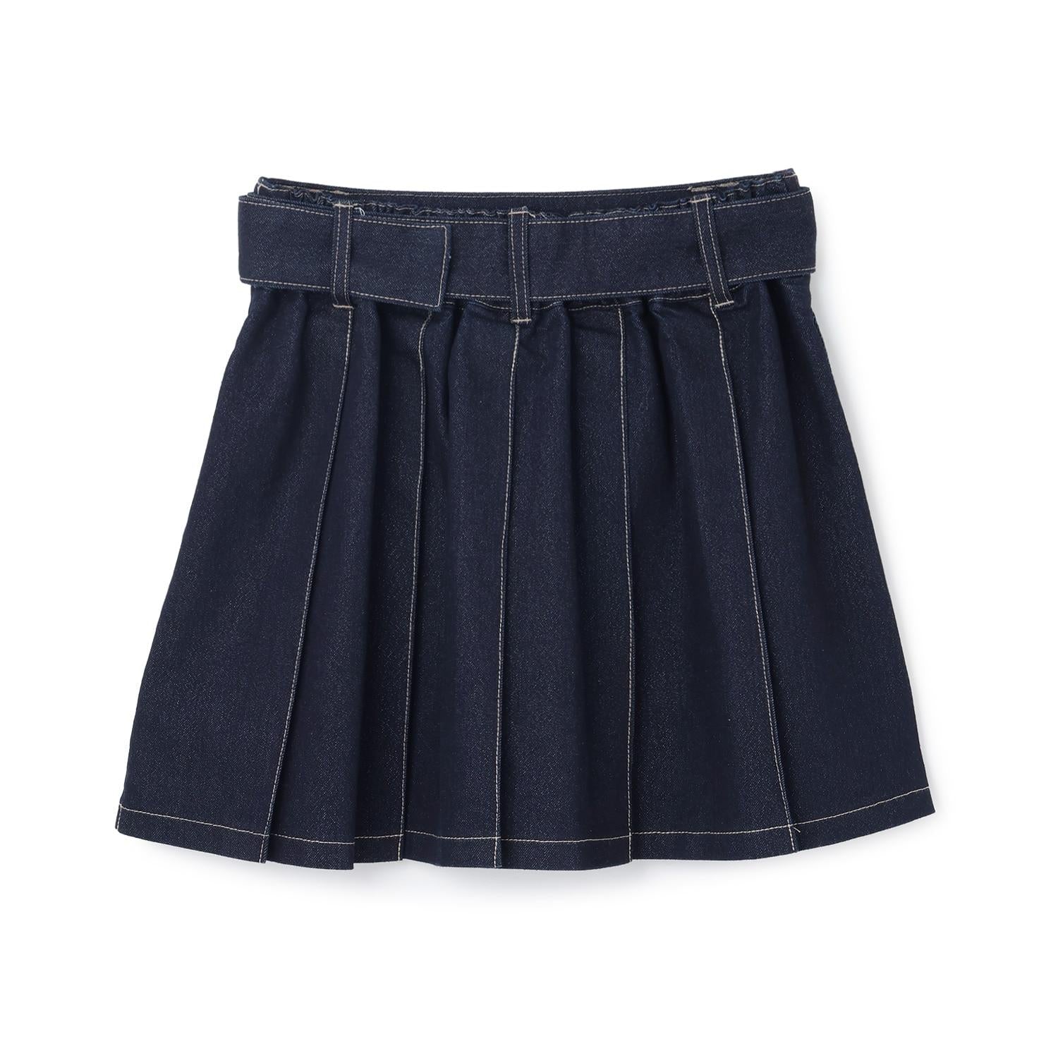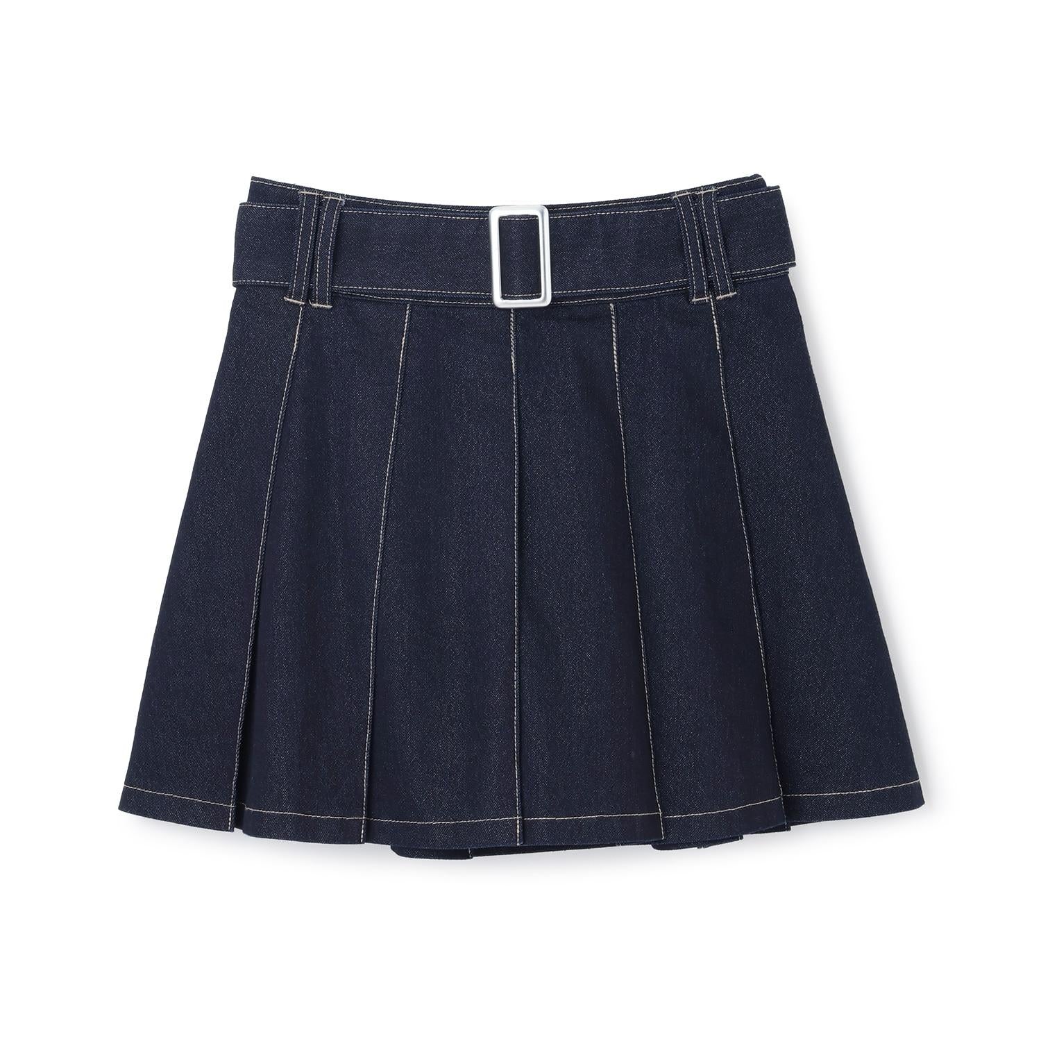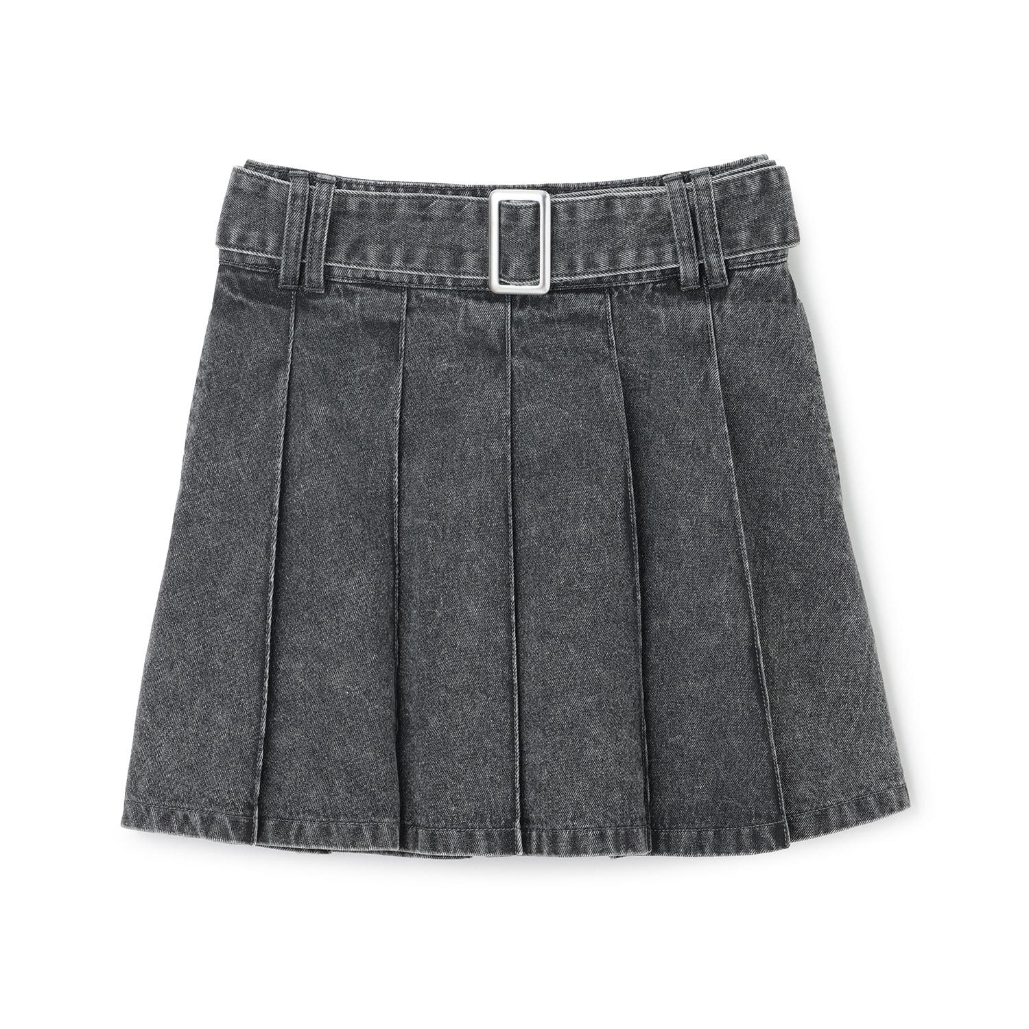 美腿顯瘦帶腰帶牛仔百褶裙