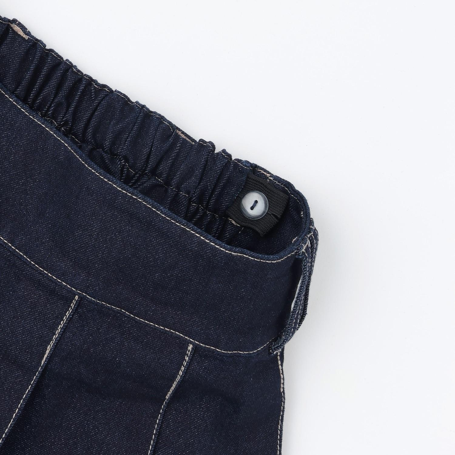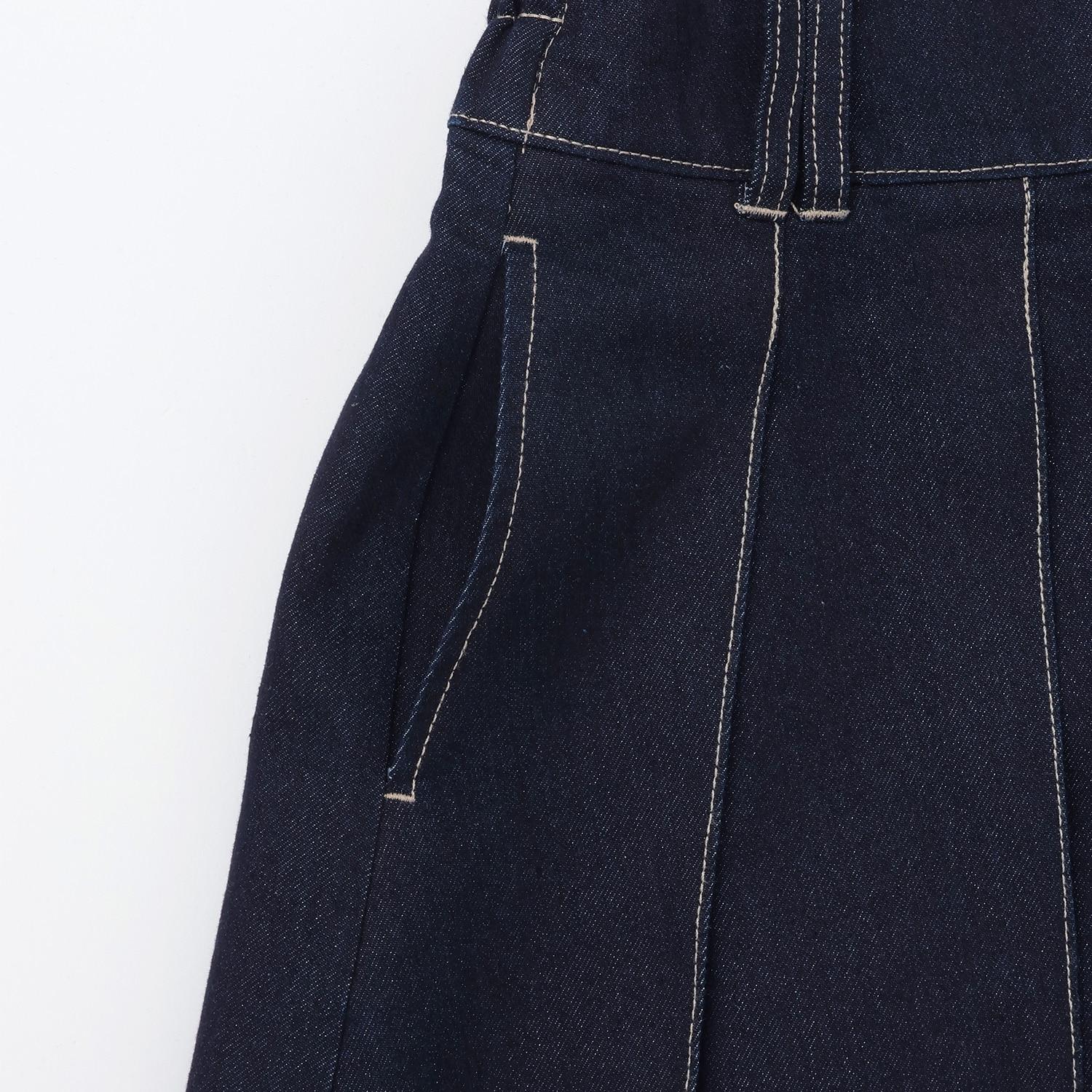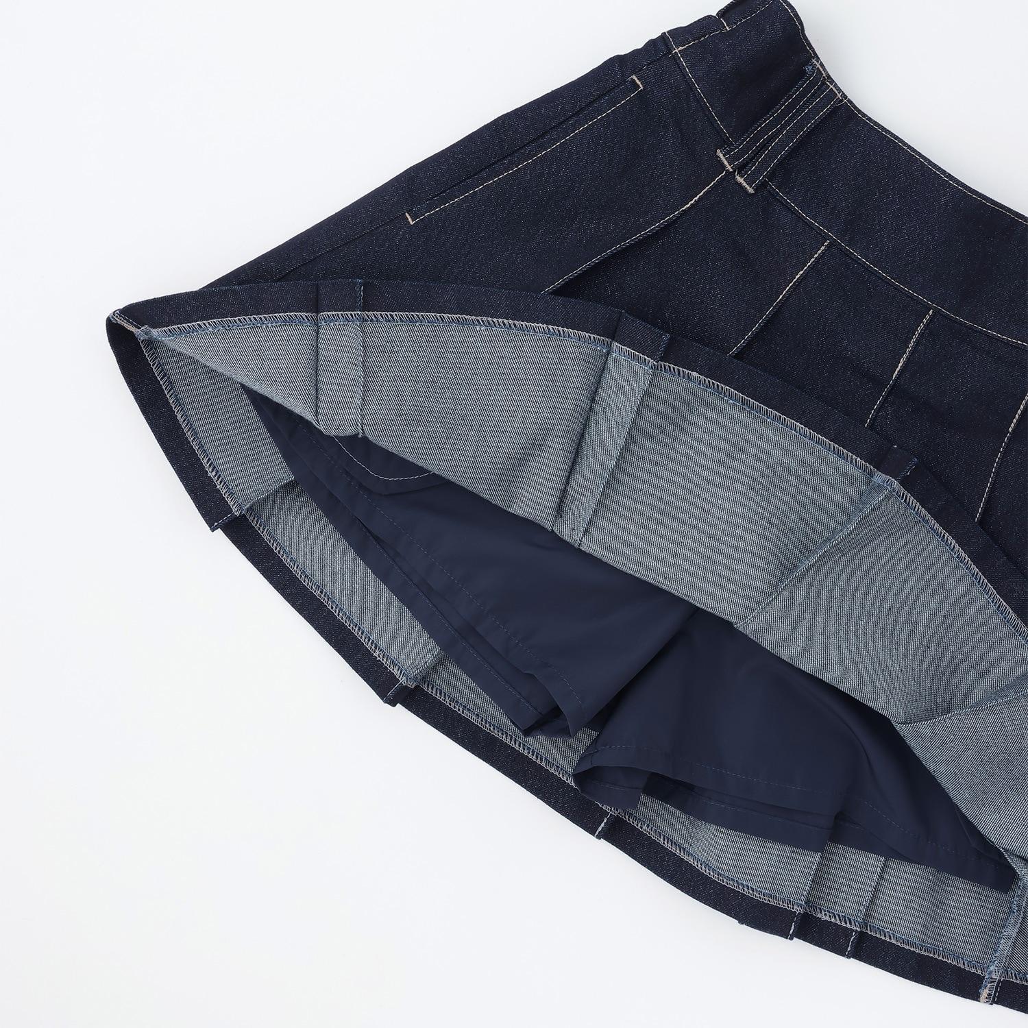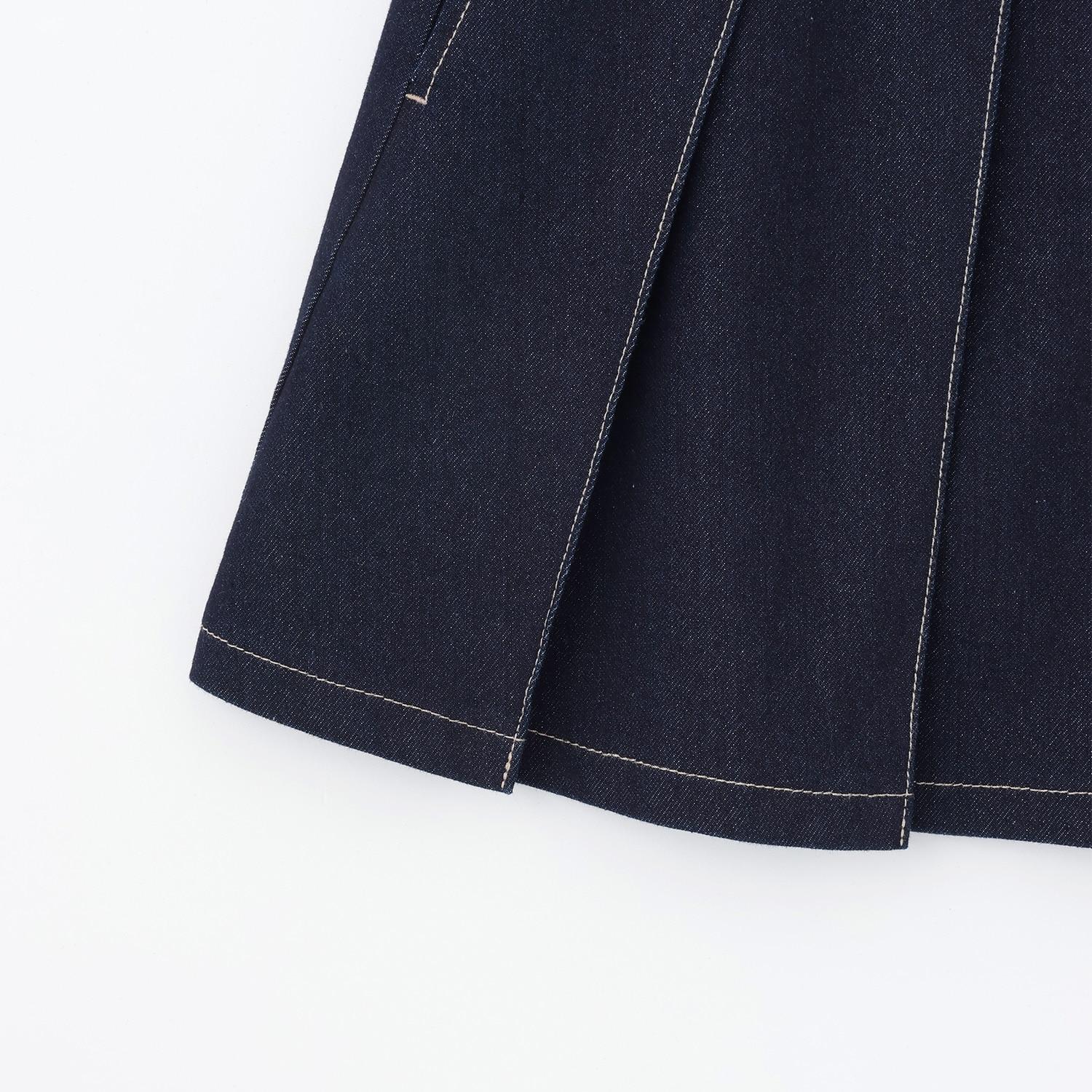 這款百褶裙採用牛仔面料剪裁,腿部線條優美。