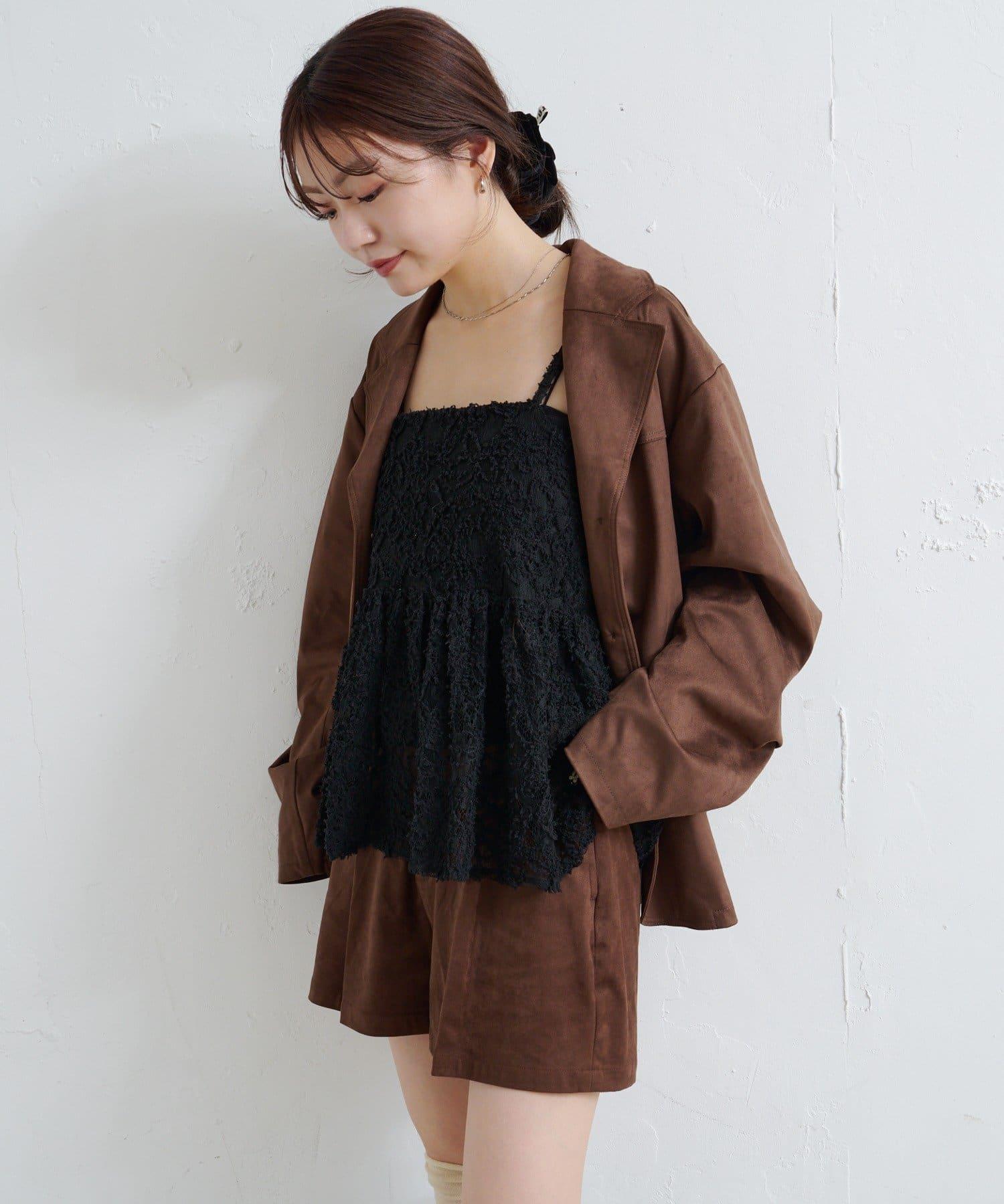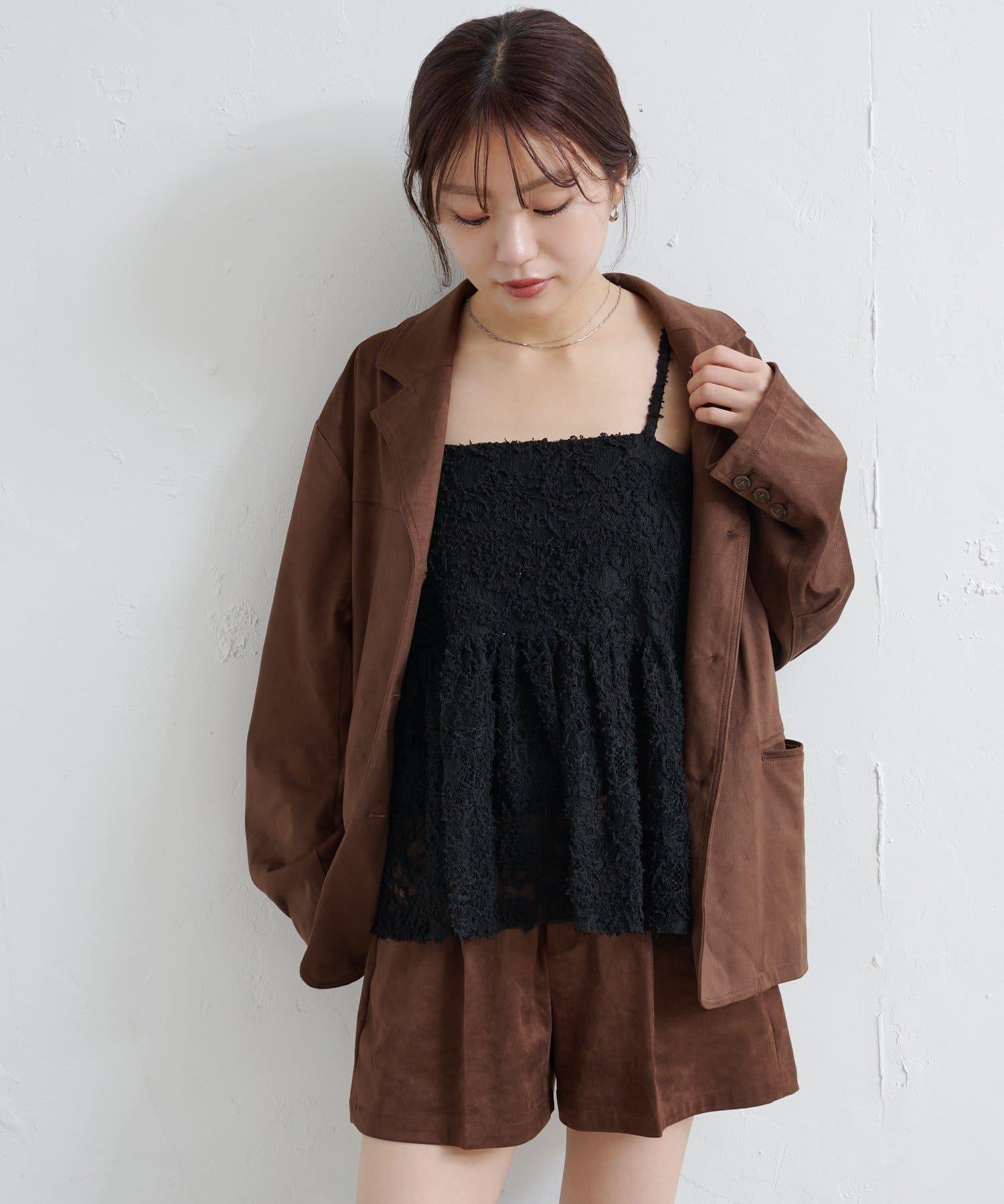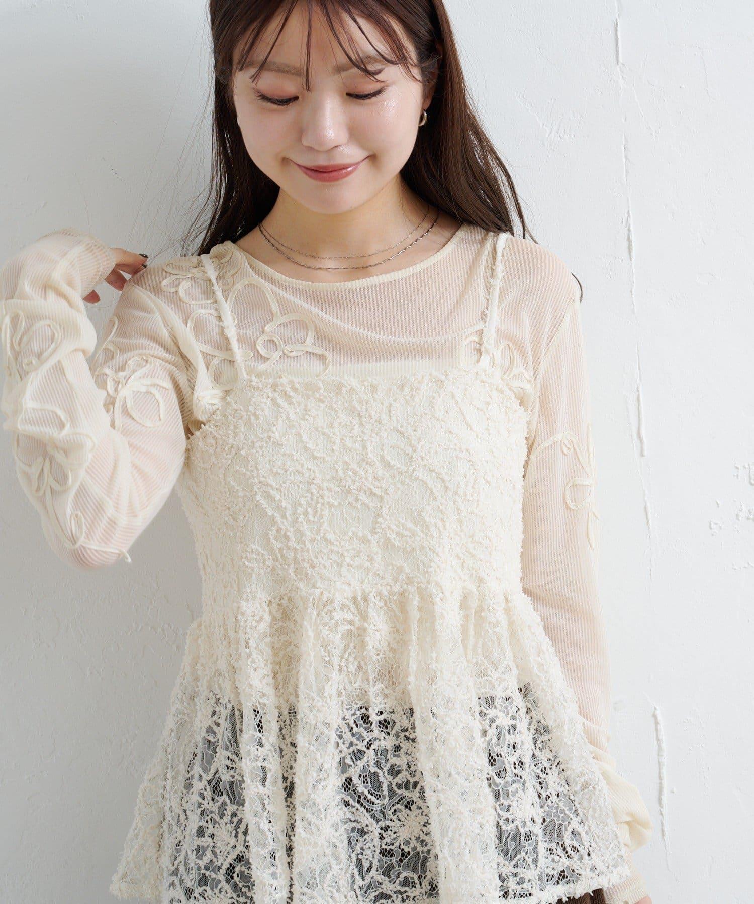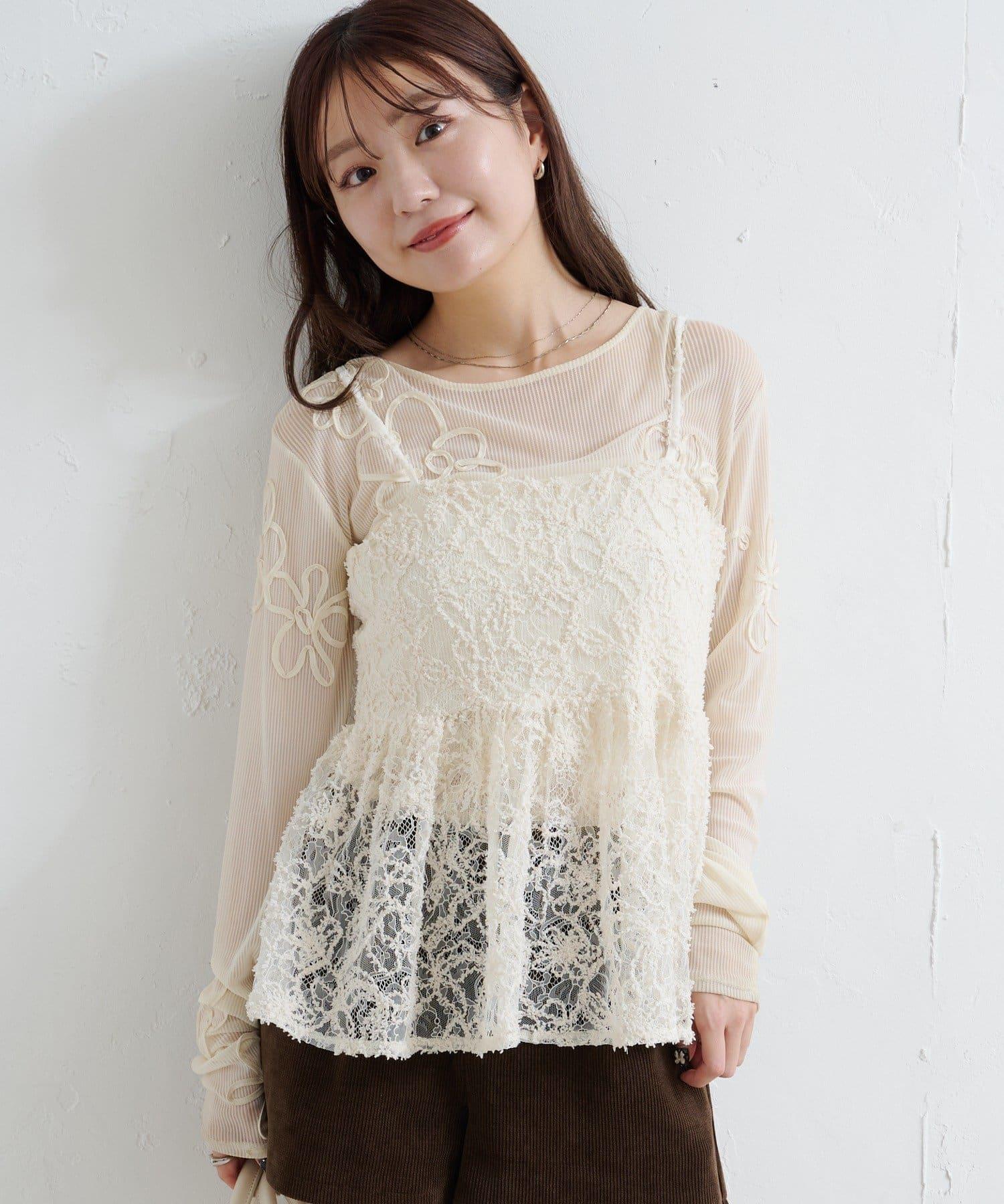 使用了精緻的蕾絲材料。如果與粗糙的表面摩擦,或被包、皮帶或尖銳物品夾住,蕾絲的縷線很容易浮起,可能會被割斷。請小心處理。
