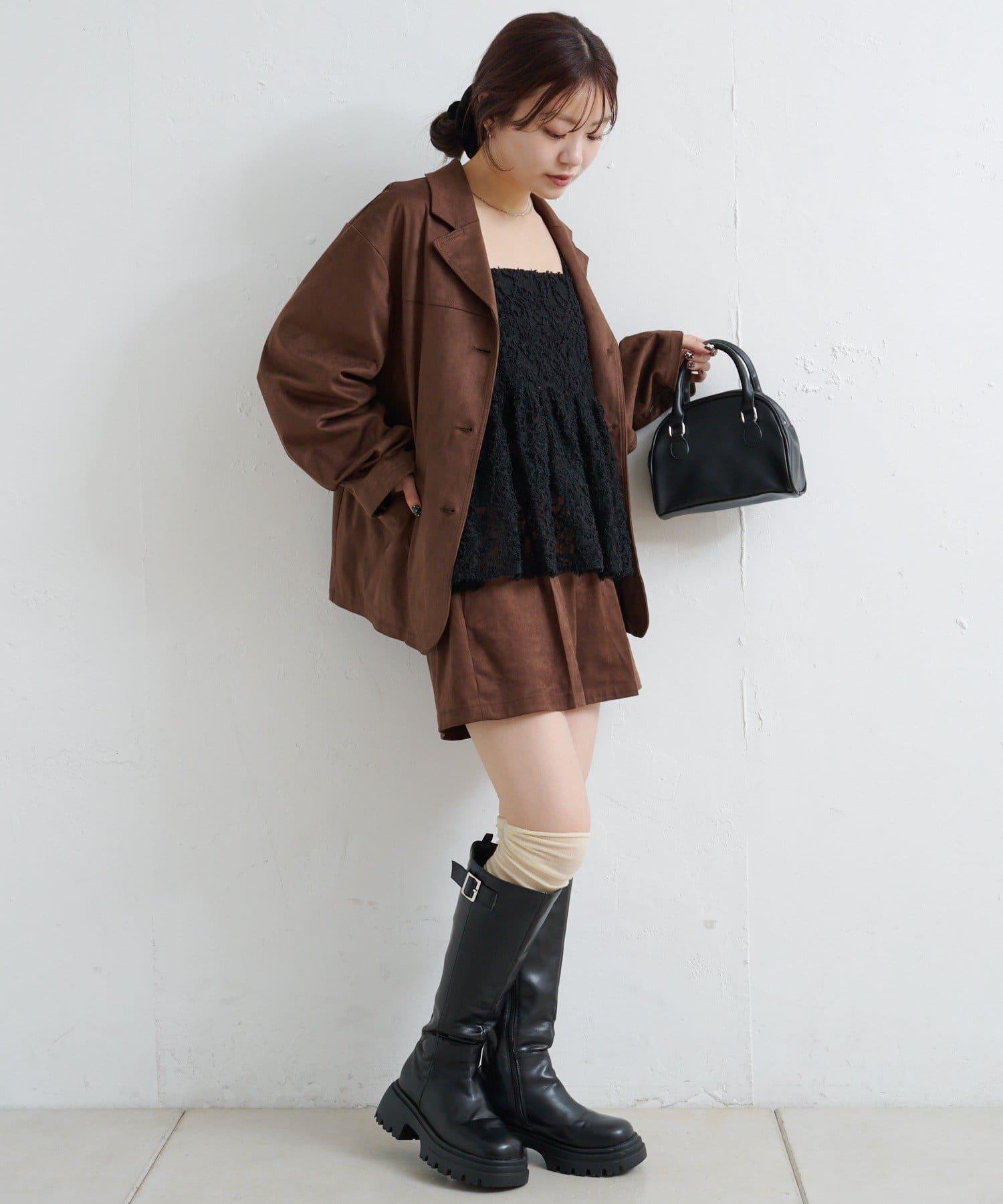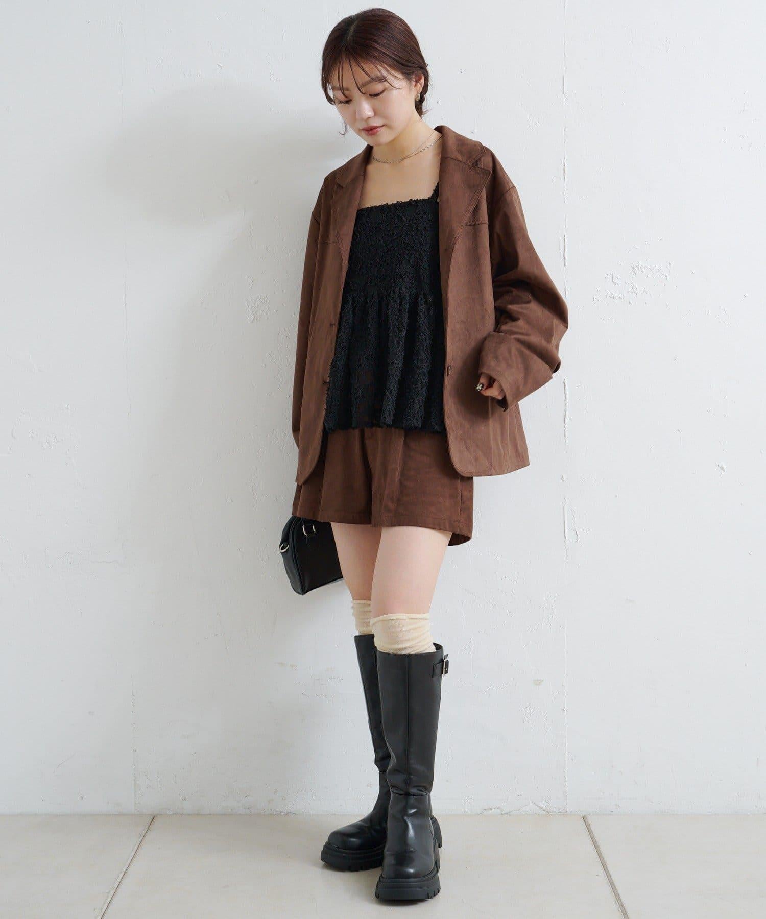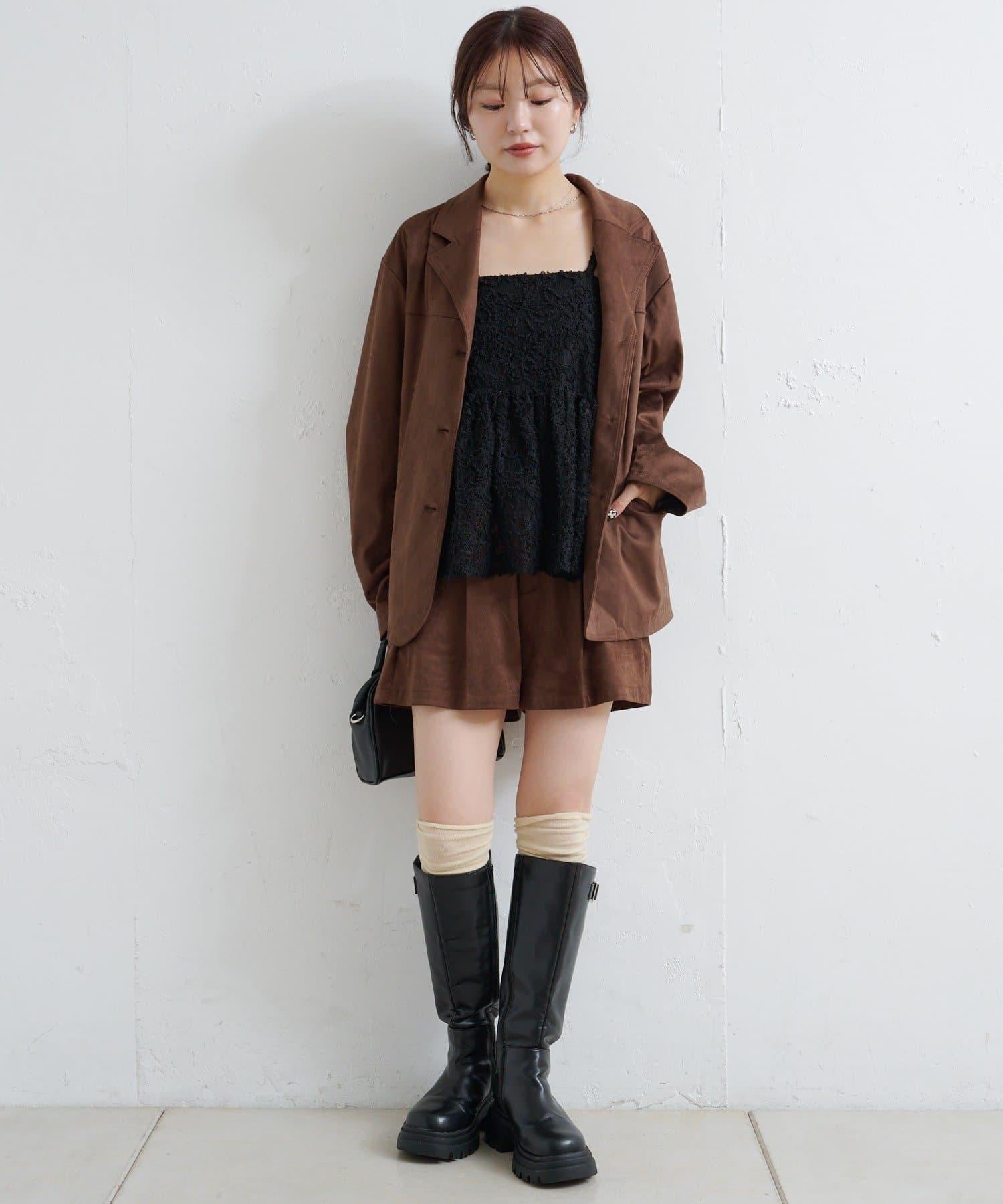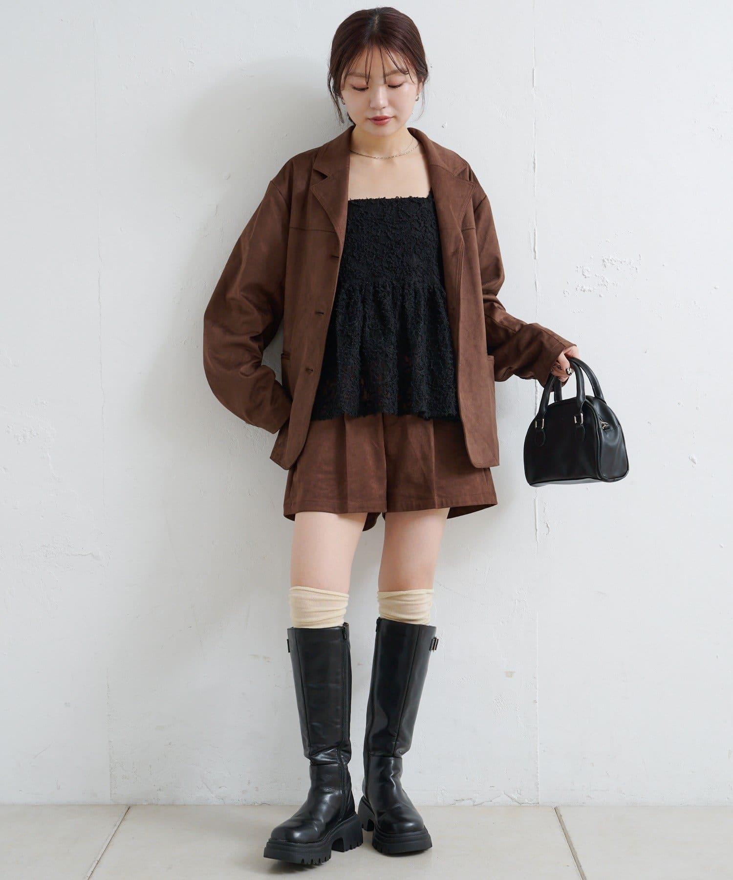 使用了精緻的蕾絲材料。如果與粗糙的表面摩擦,或被包、皮帶或尖銳物品夾住,蕾絲的縷線很容易浮起,可能會被割斷。請小心處理。