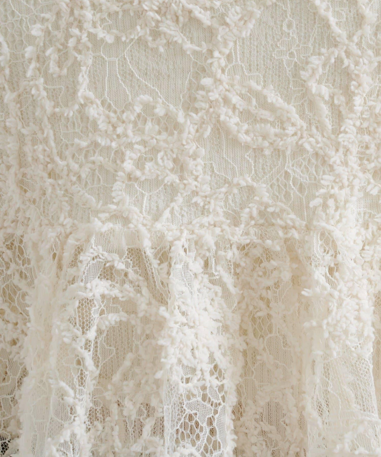 柔軟蓬鬆的羽毛狀蕾絲面料。