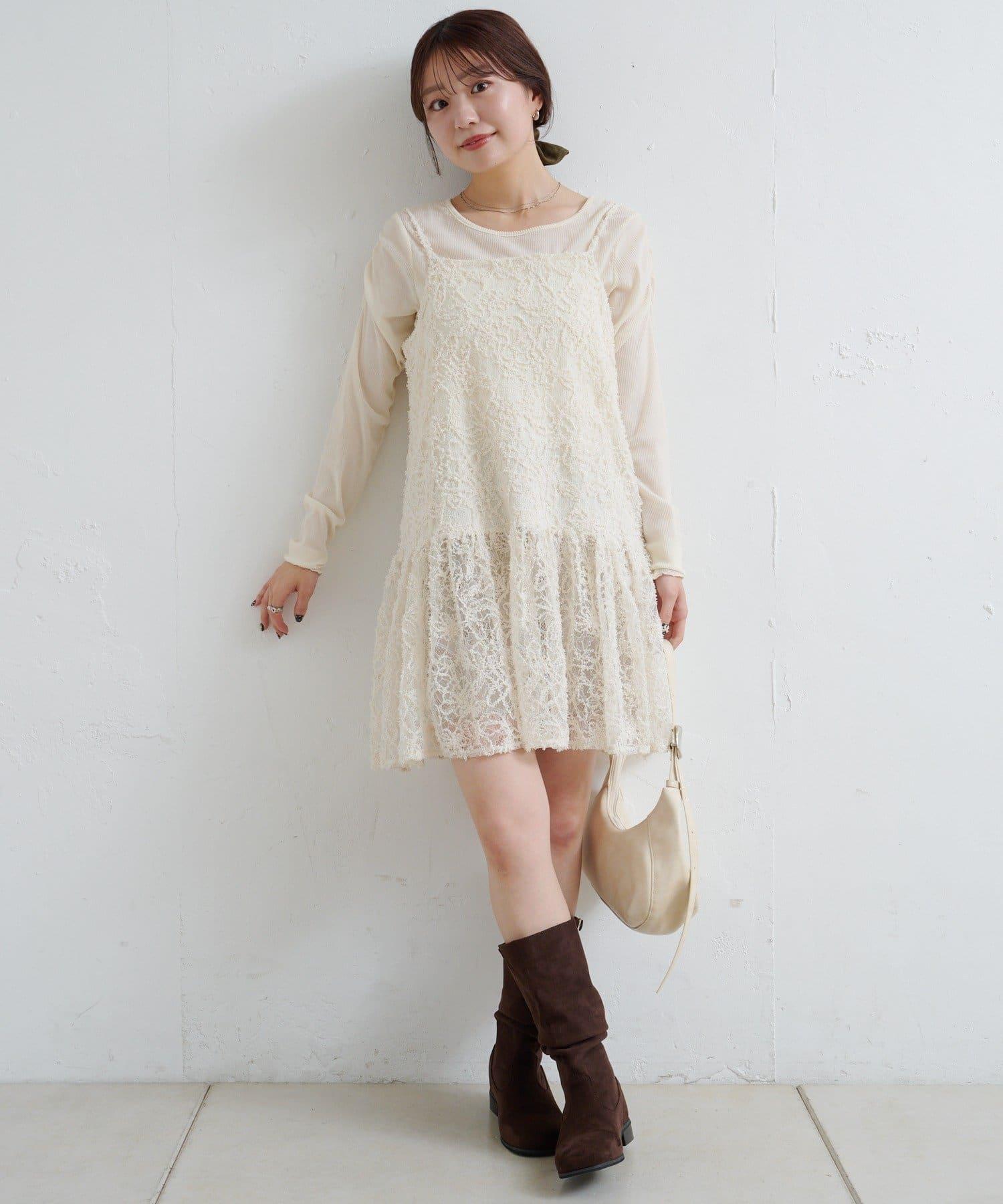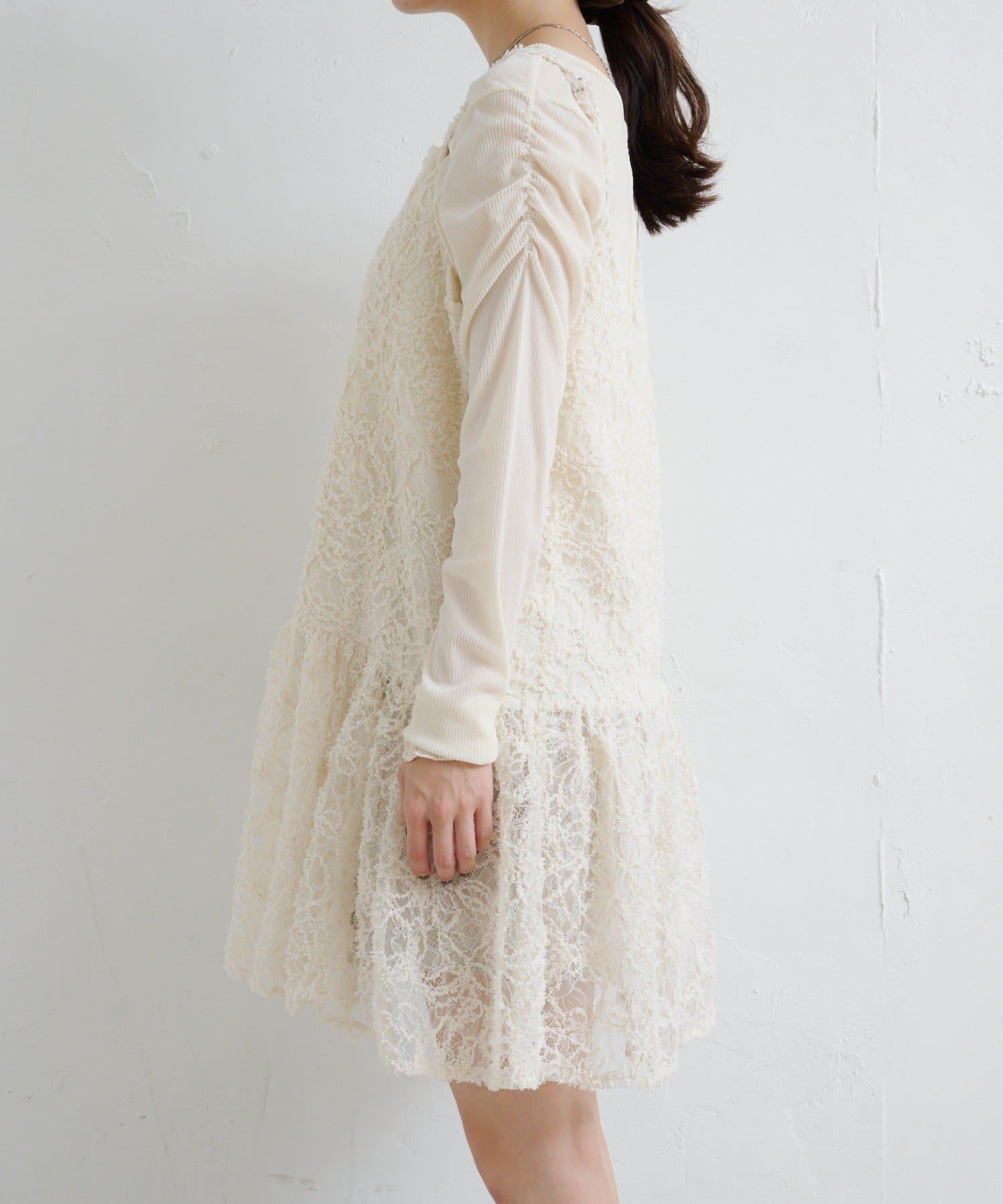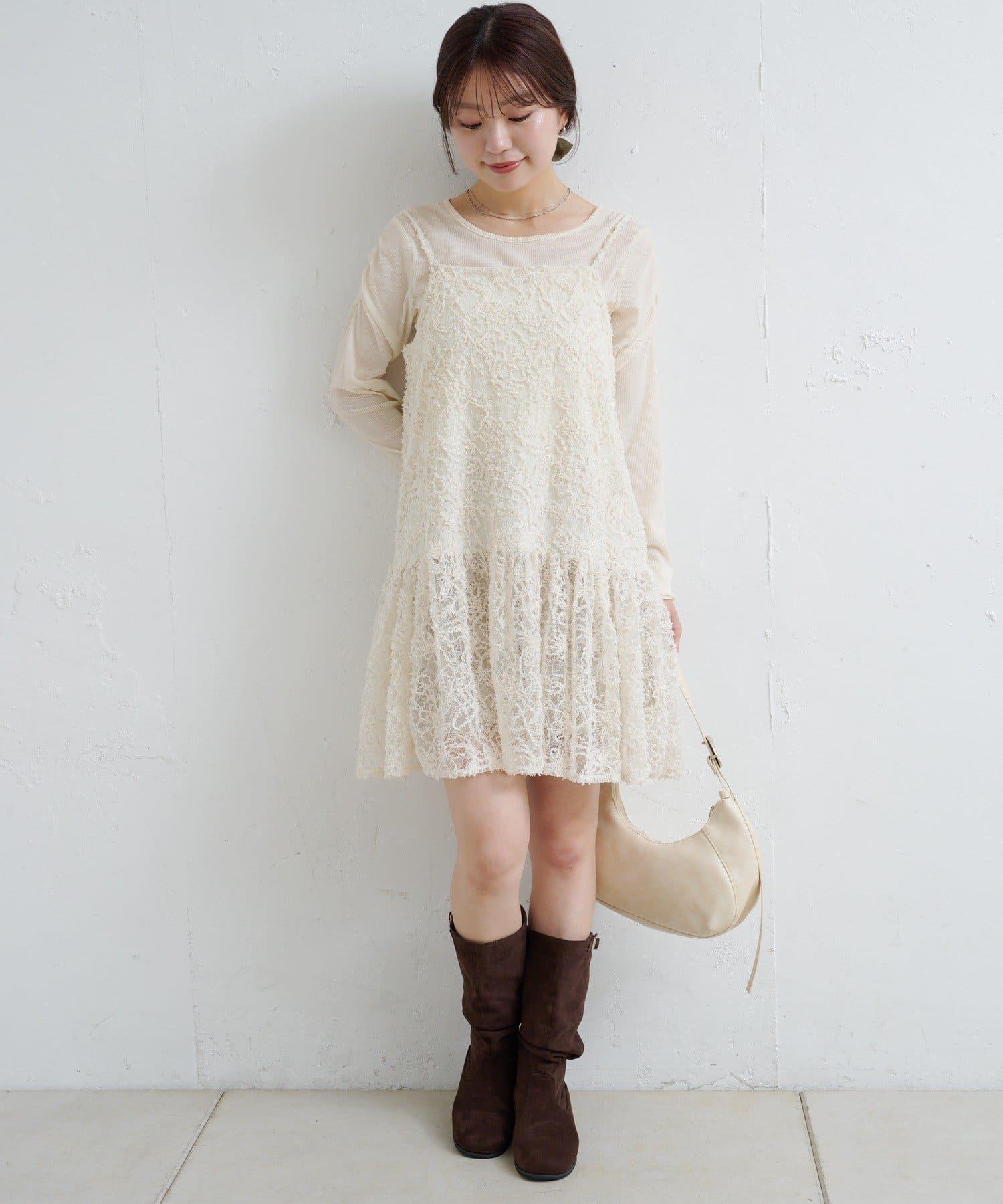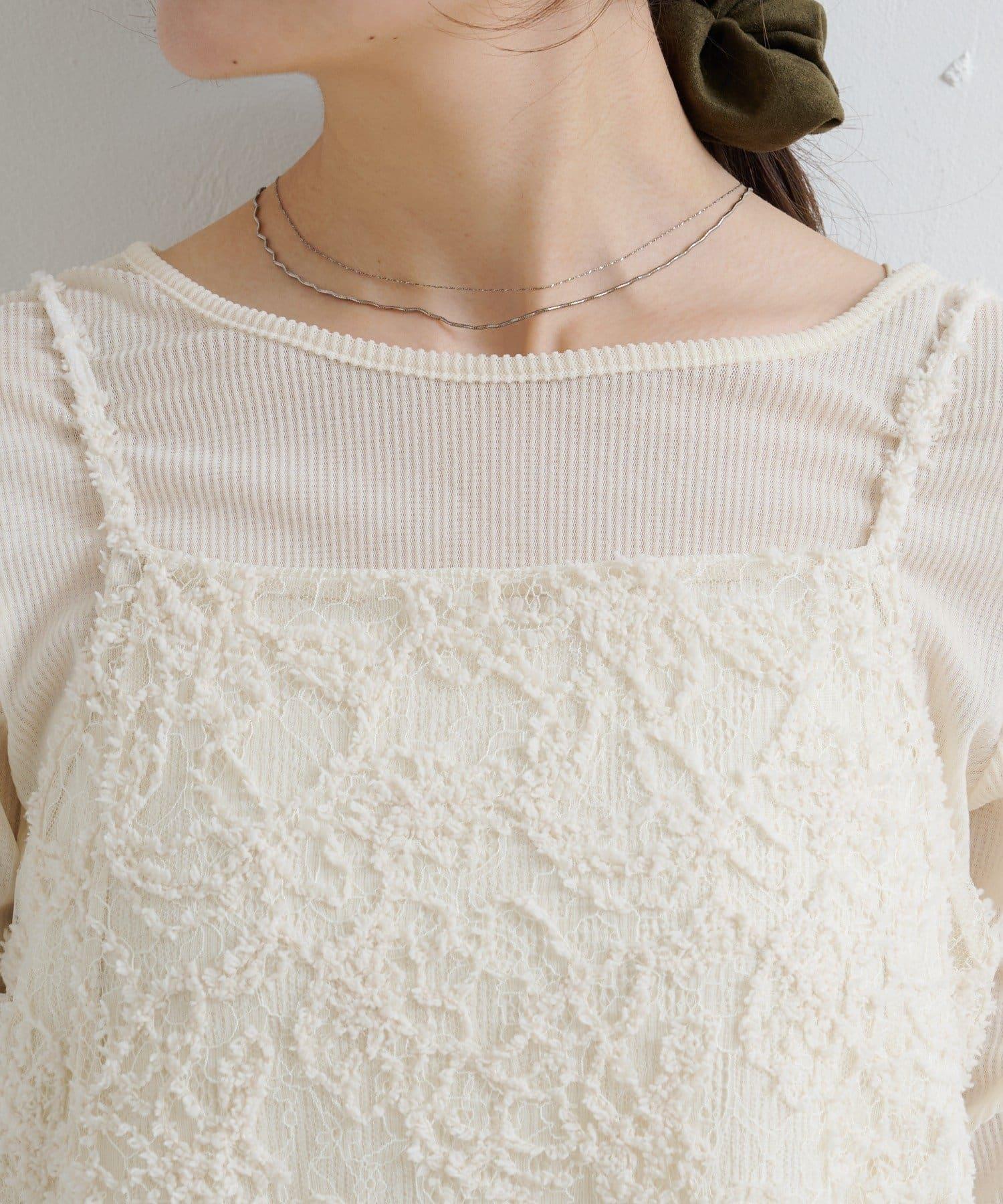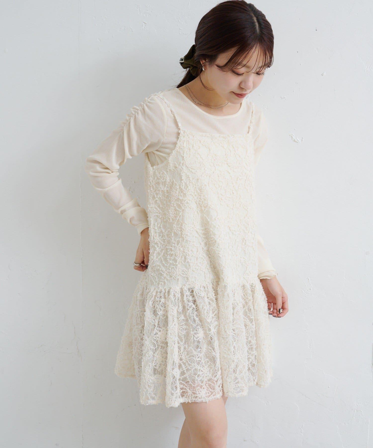 使用了精緻的蕾絲材料。如果與粗糙的表面摩擦,或被包、皮帶或尖銳物品夾住,蕾絲的縷線很容易浮起,可能會被割斷。請小心處理。