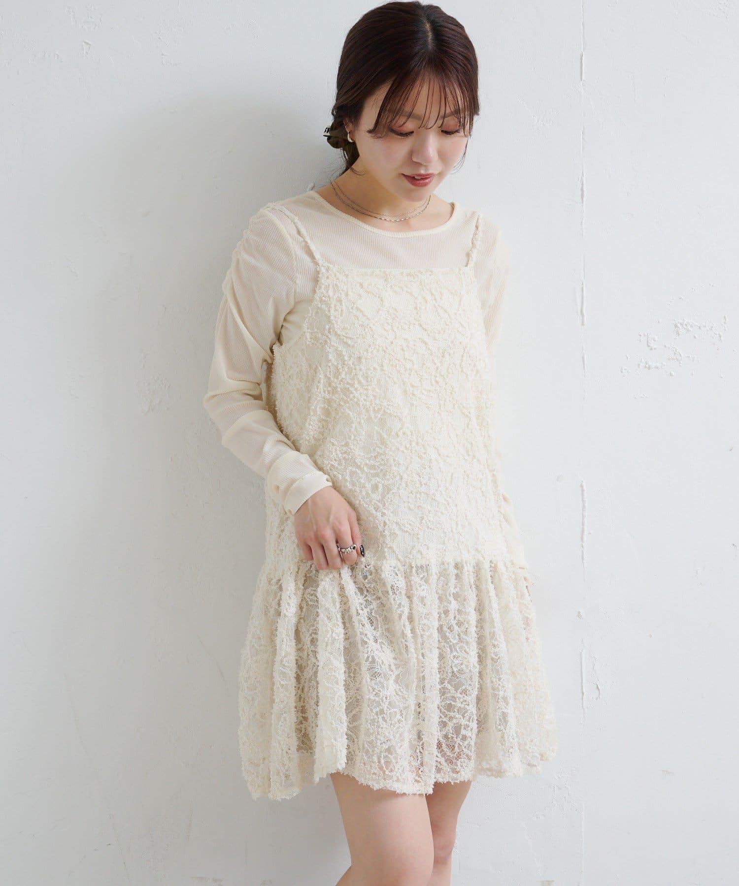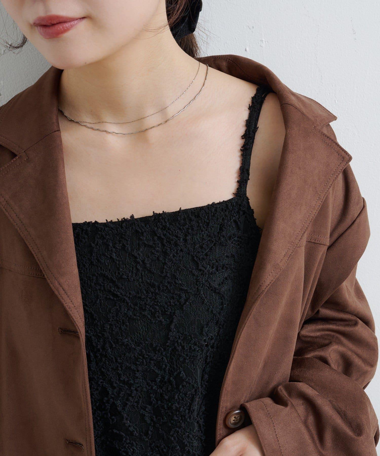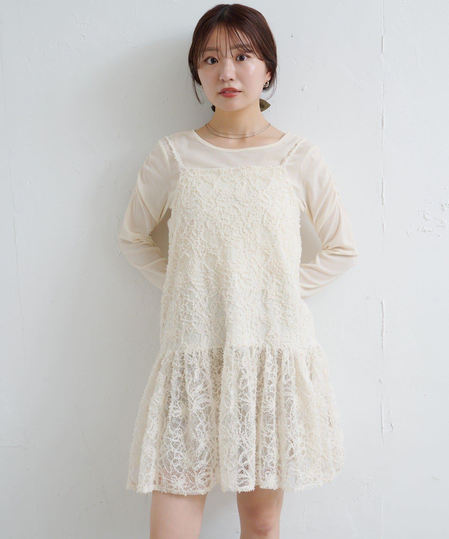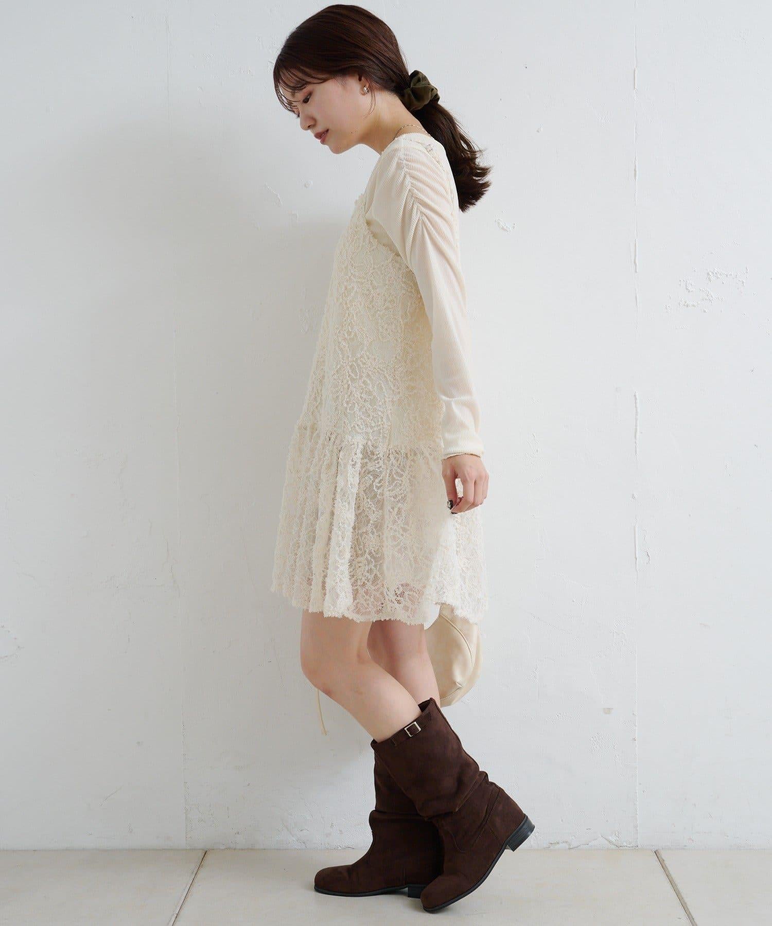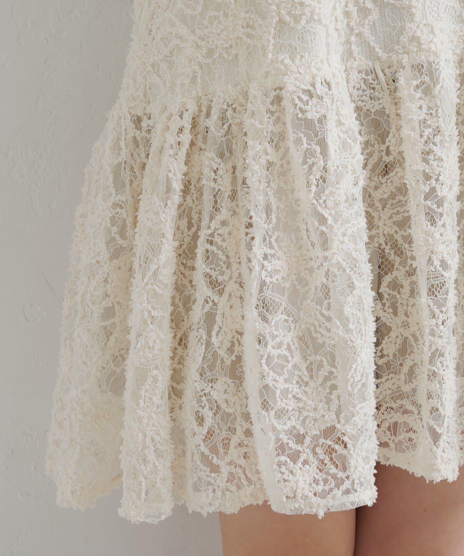 使用了精緻的蕾絲材料。如果與粗糙的表面摩擦,或被包、皮帶或尖銳物品夾住,蕾絲的縷線很容易浮起,可能會被割斷。請小心處理。
