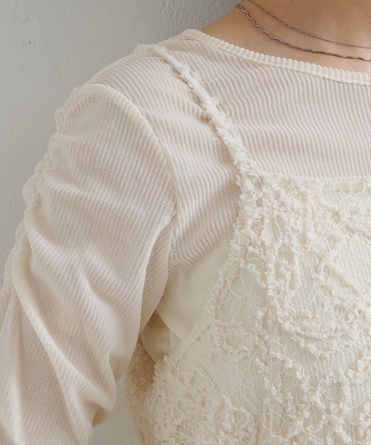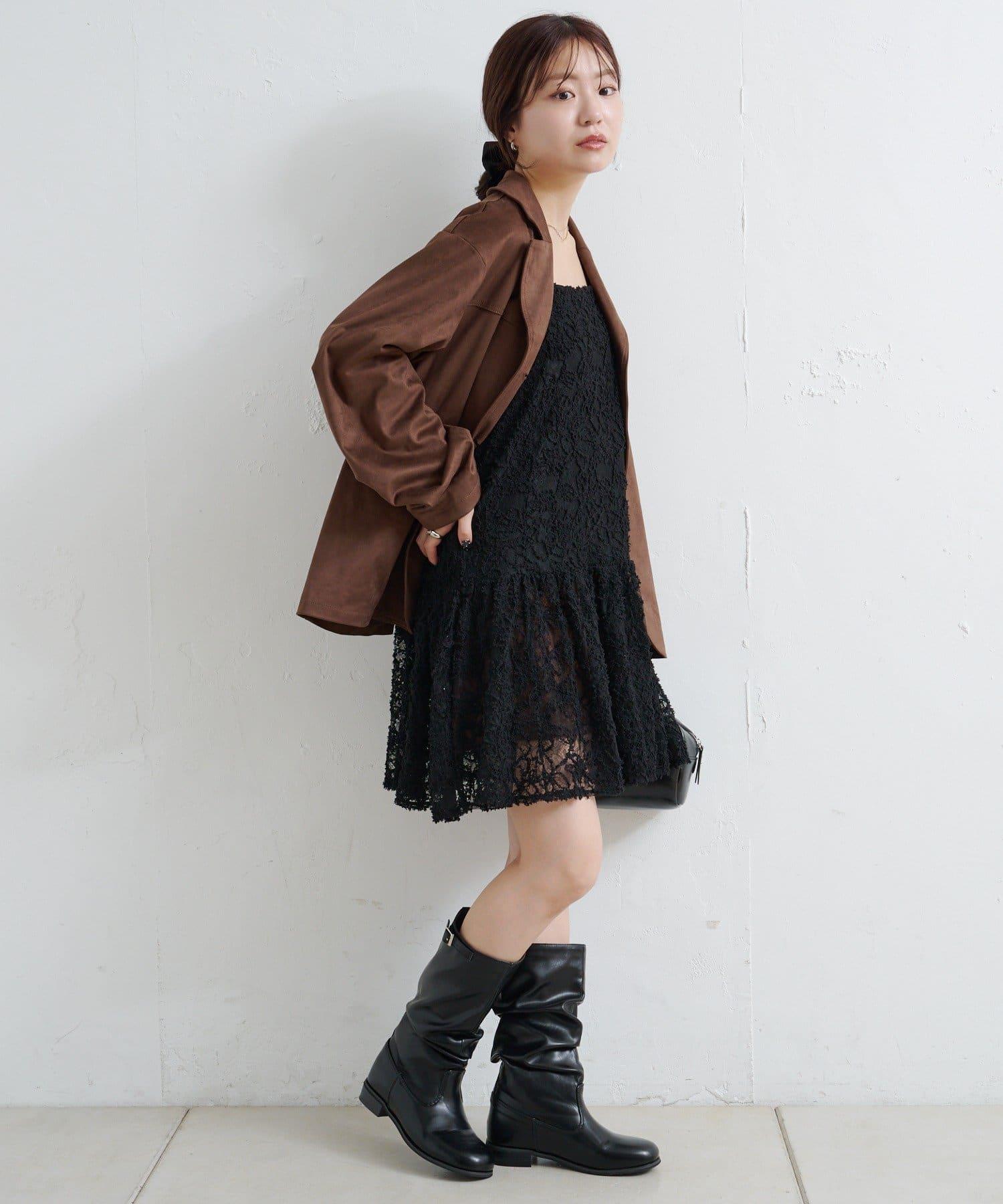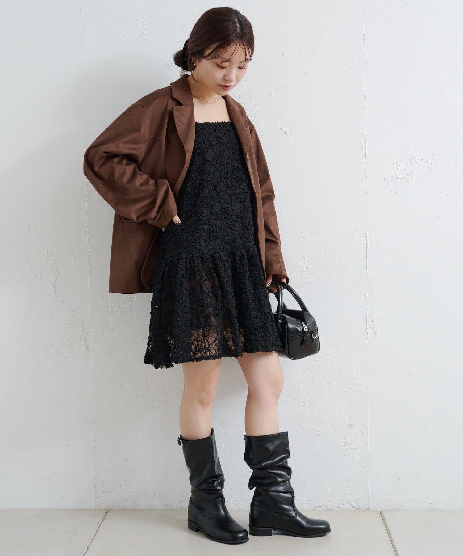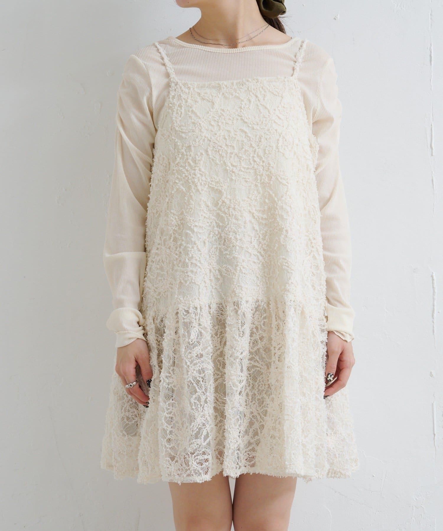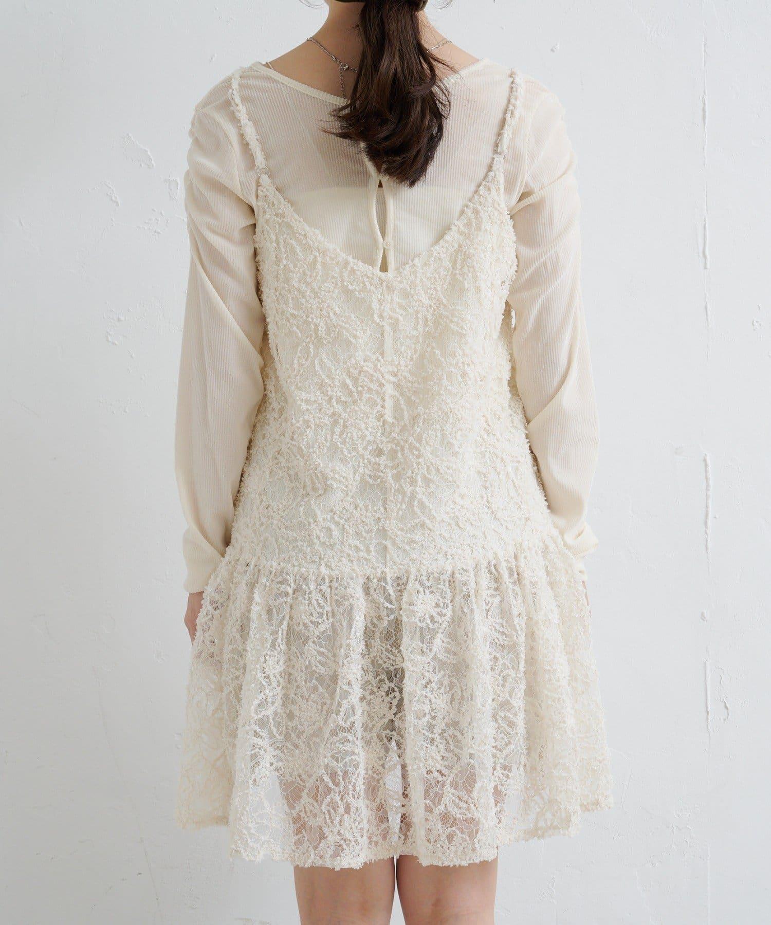 使用了精緻的蕾絲材料。如果與粗糙的表面摩擦,或被包、皮帶或尖銳物品夾住,蕾絲的縷線很容易浮起,可能會被割斷。請小心處理。