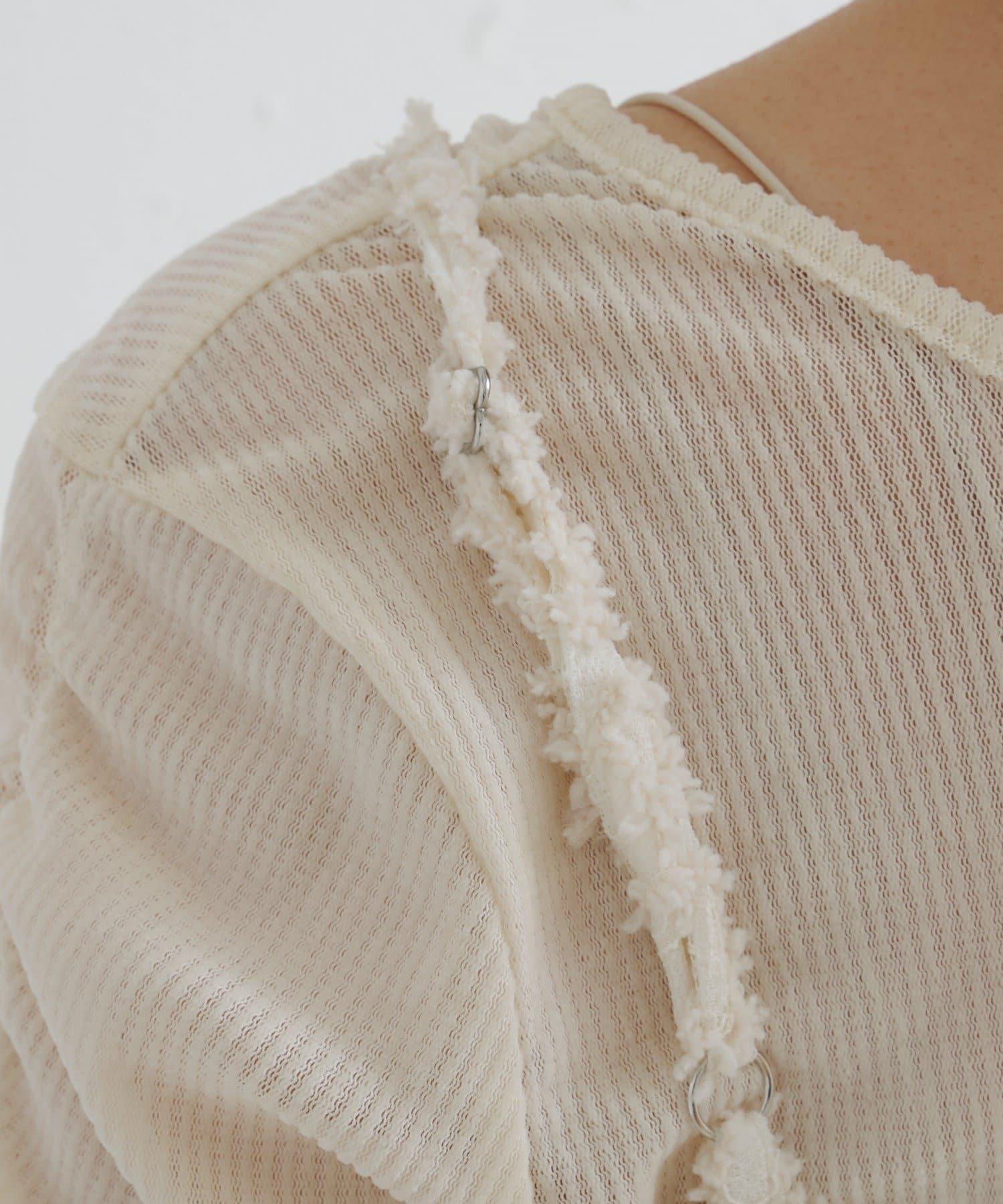 立體針織圖案優雅大方,面料具有輕盈透明的觸感。