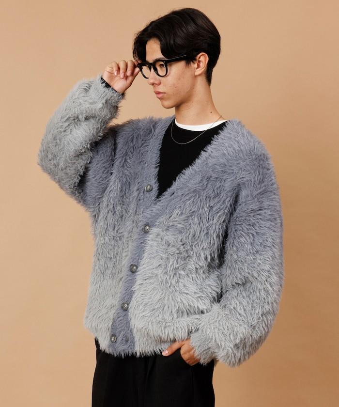 羽毛紗漸變色V領開衫 / 寬鬆版型