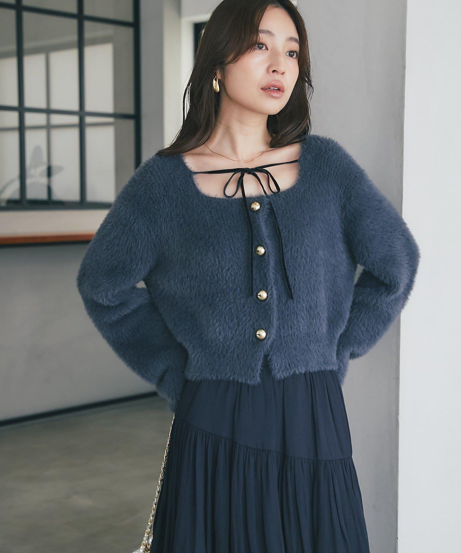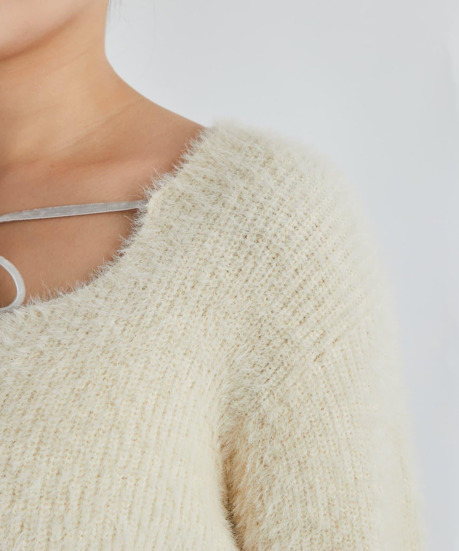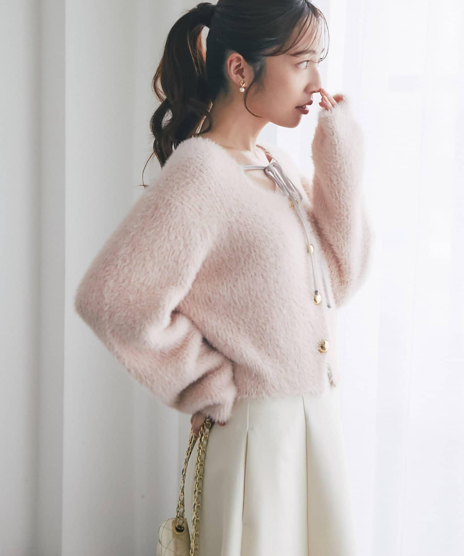 柔軟、厚實、成人化的可愛針織衫,配絲絨緞帶。