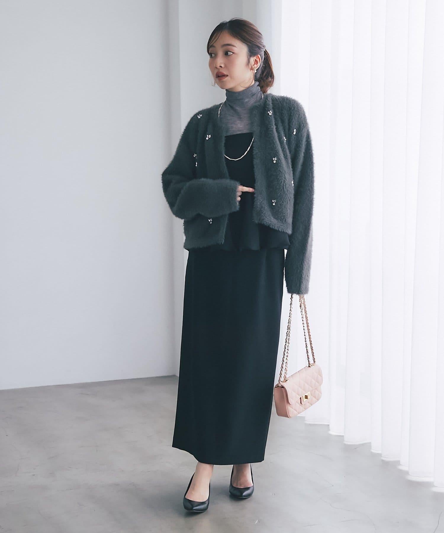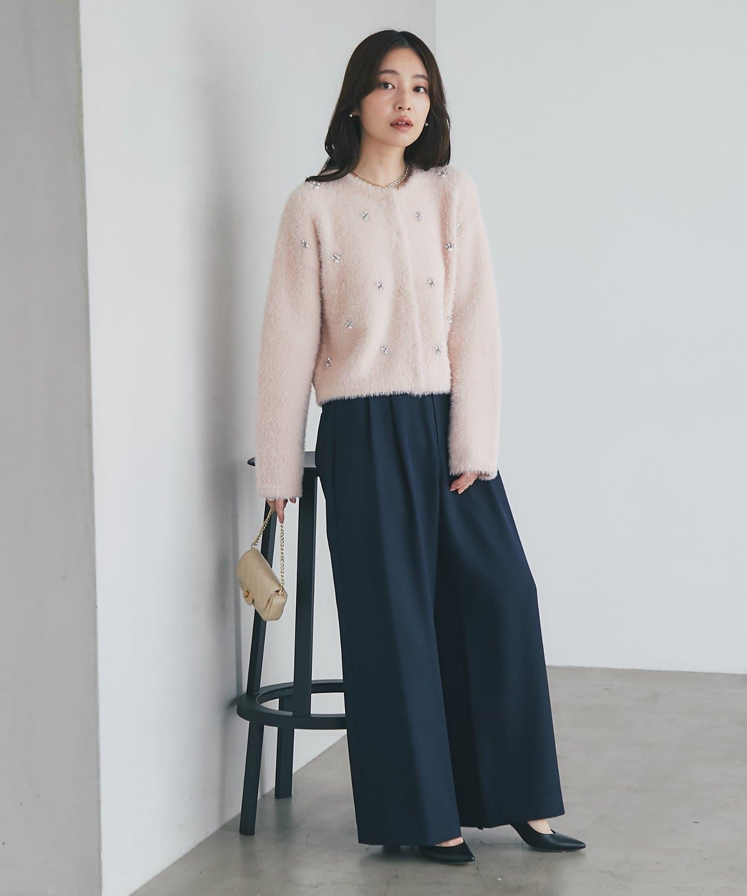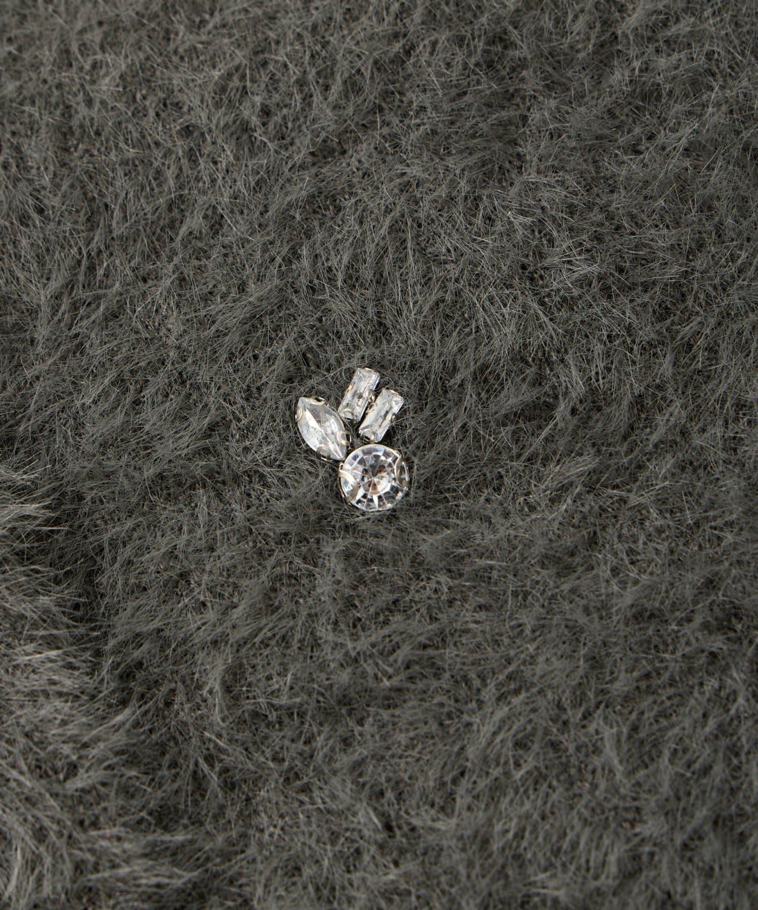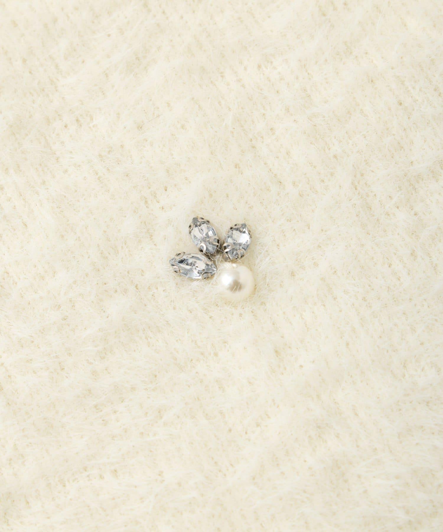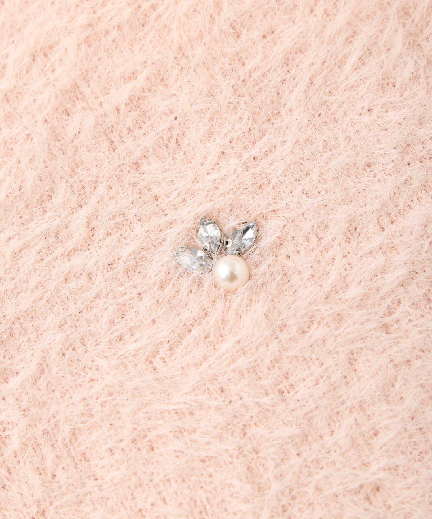 毛絨絨針織開衫,繡有寶石和珍珠。