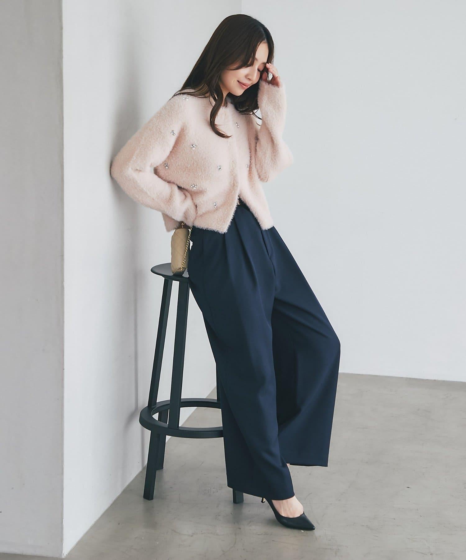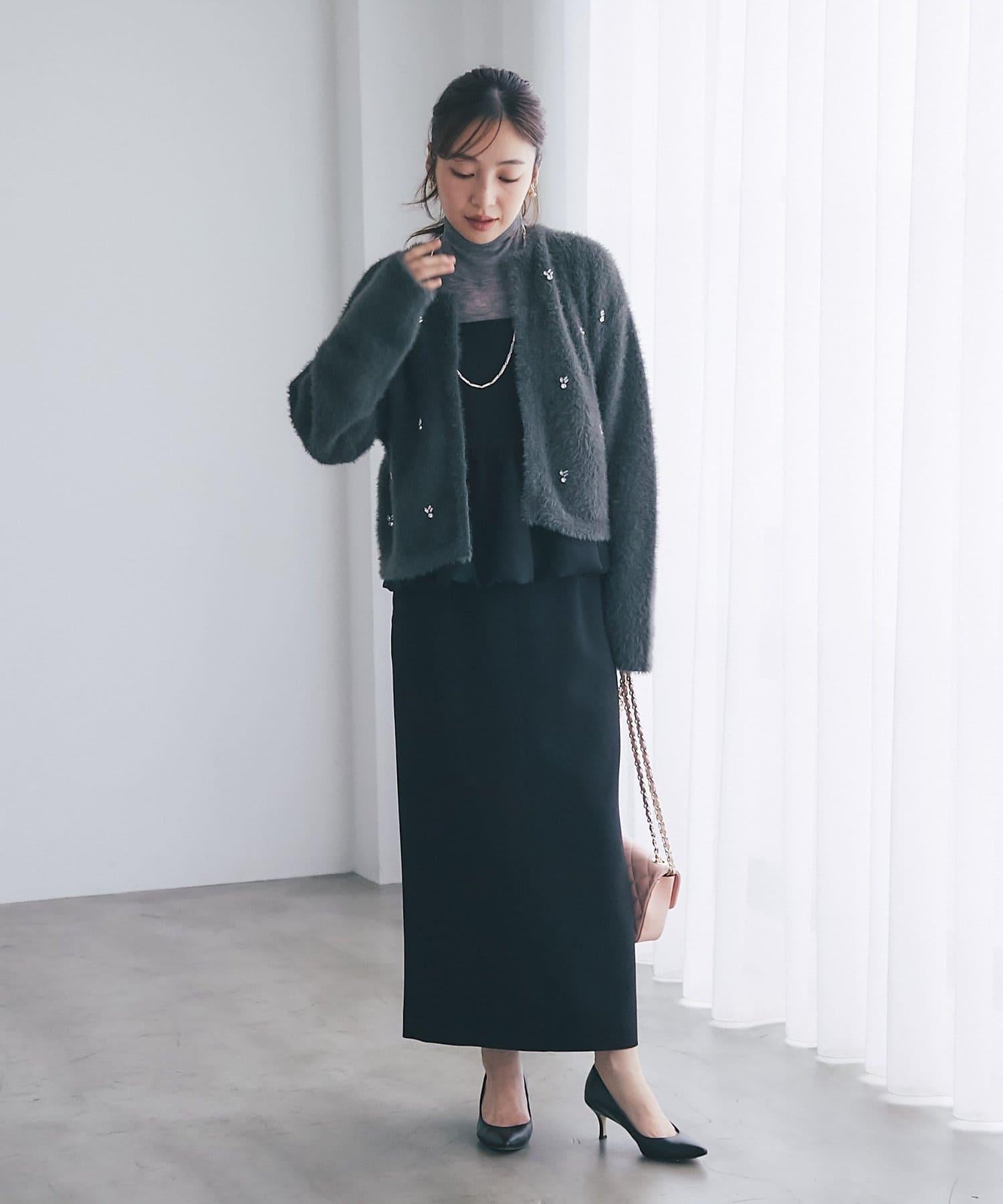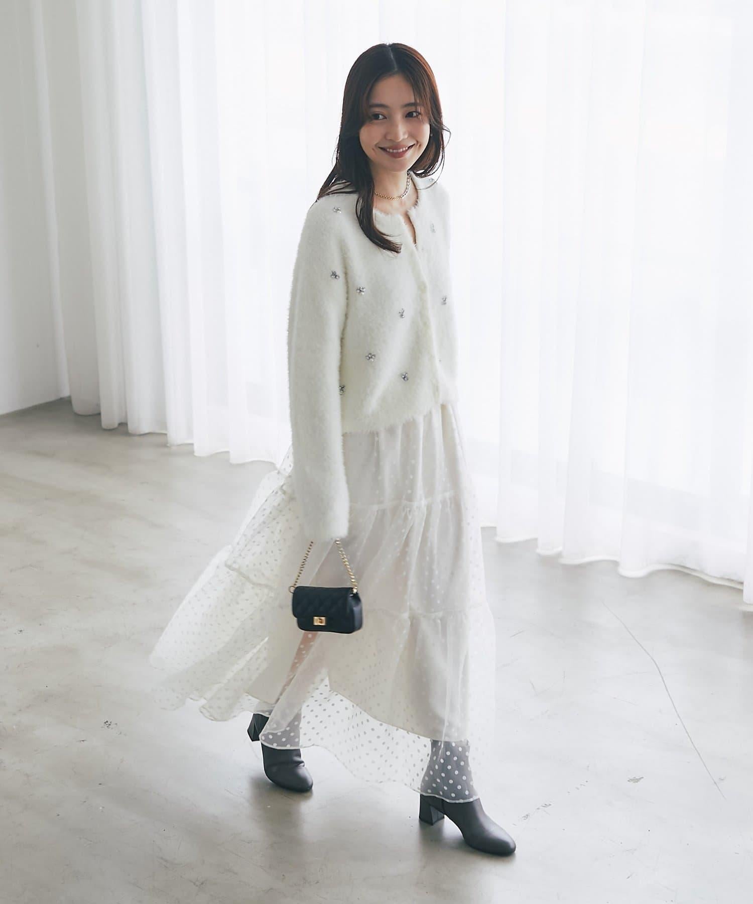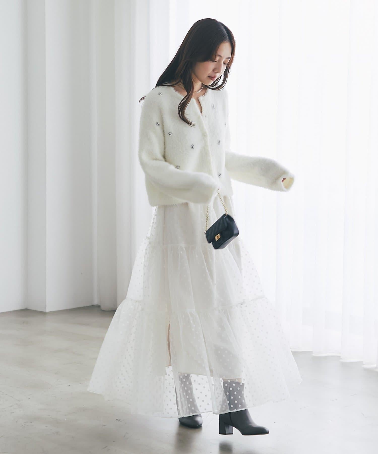 毛絨絨針織開衫,繡有寶石和珍珠。