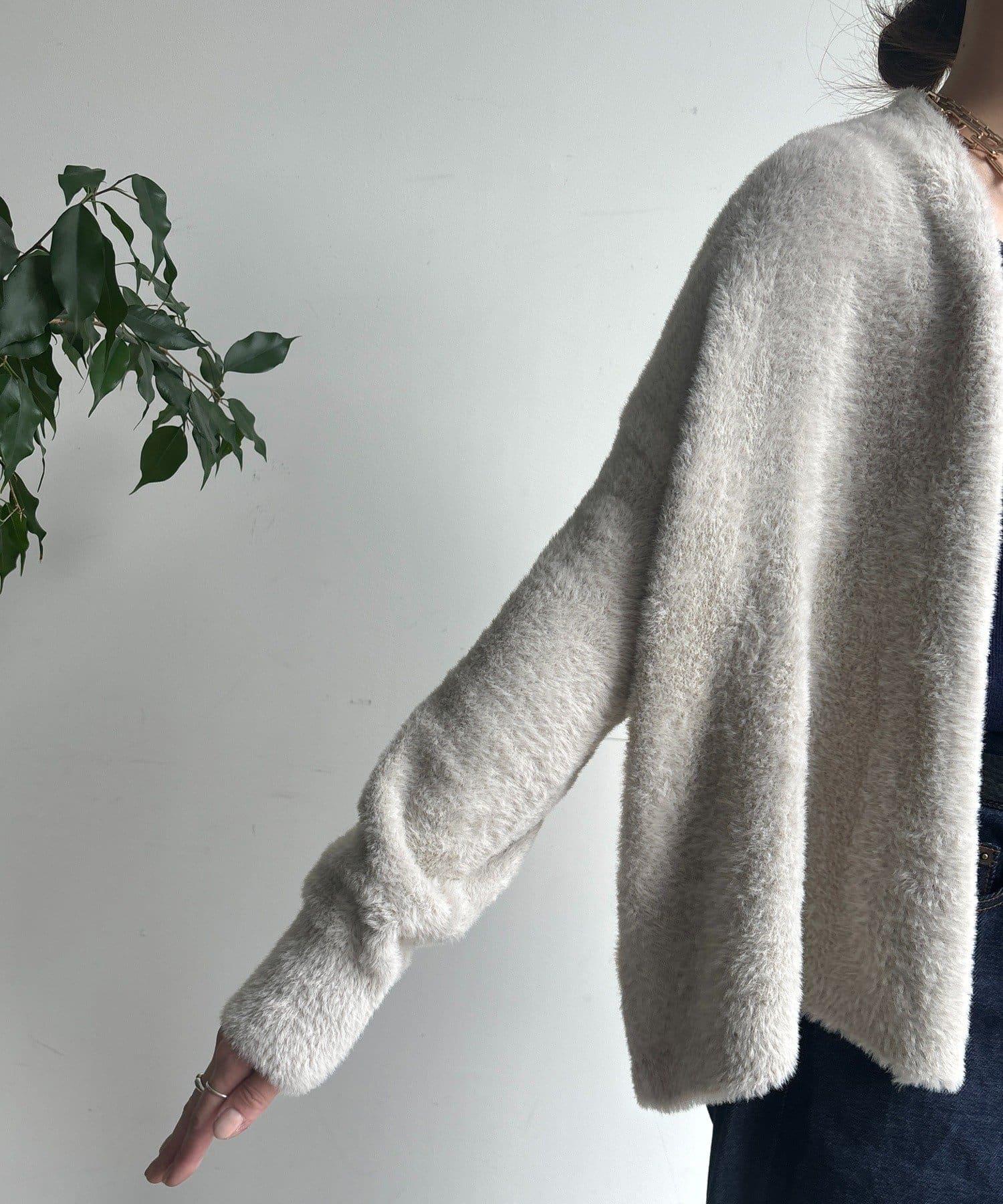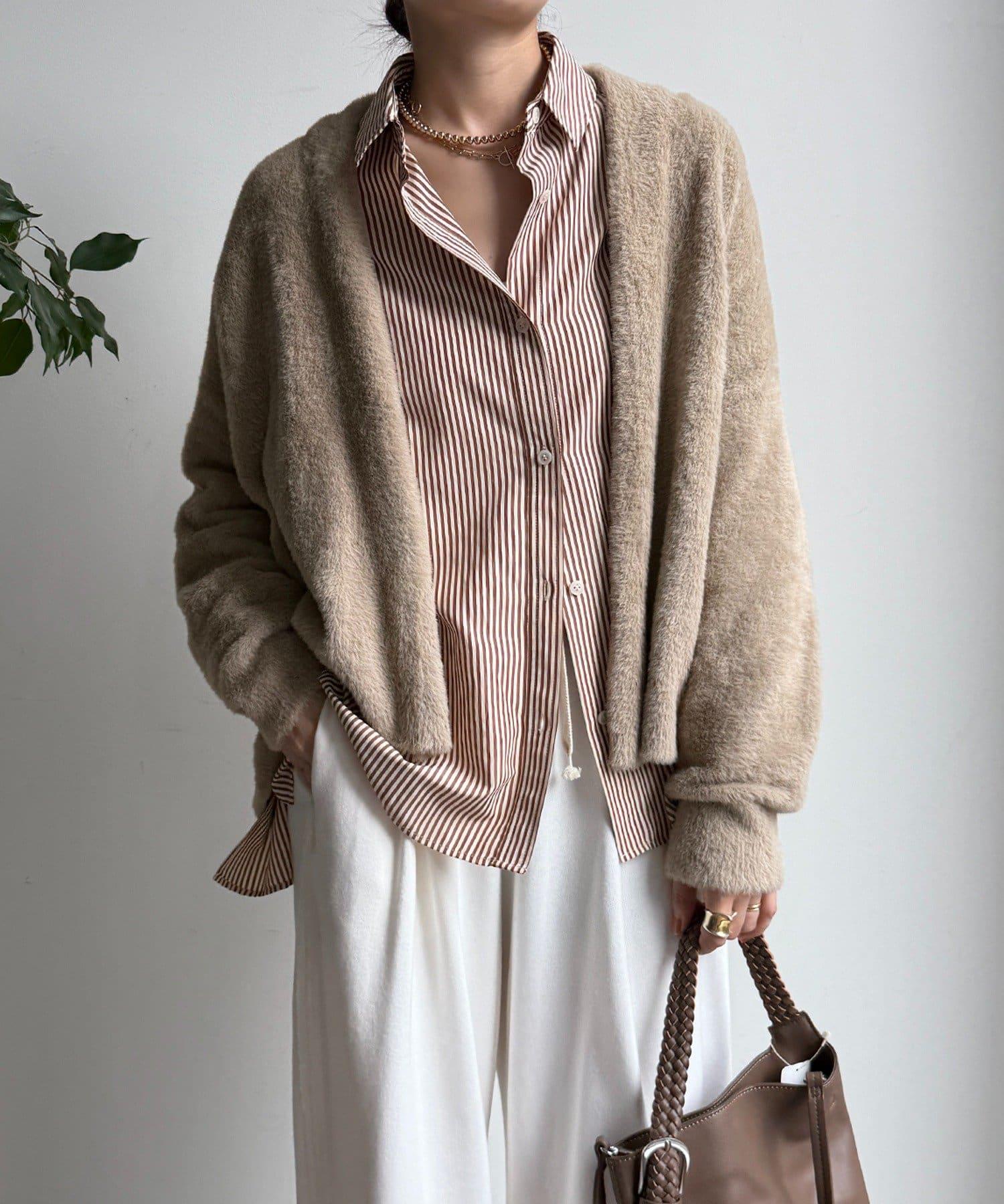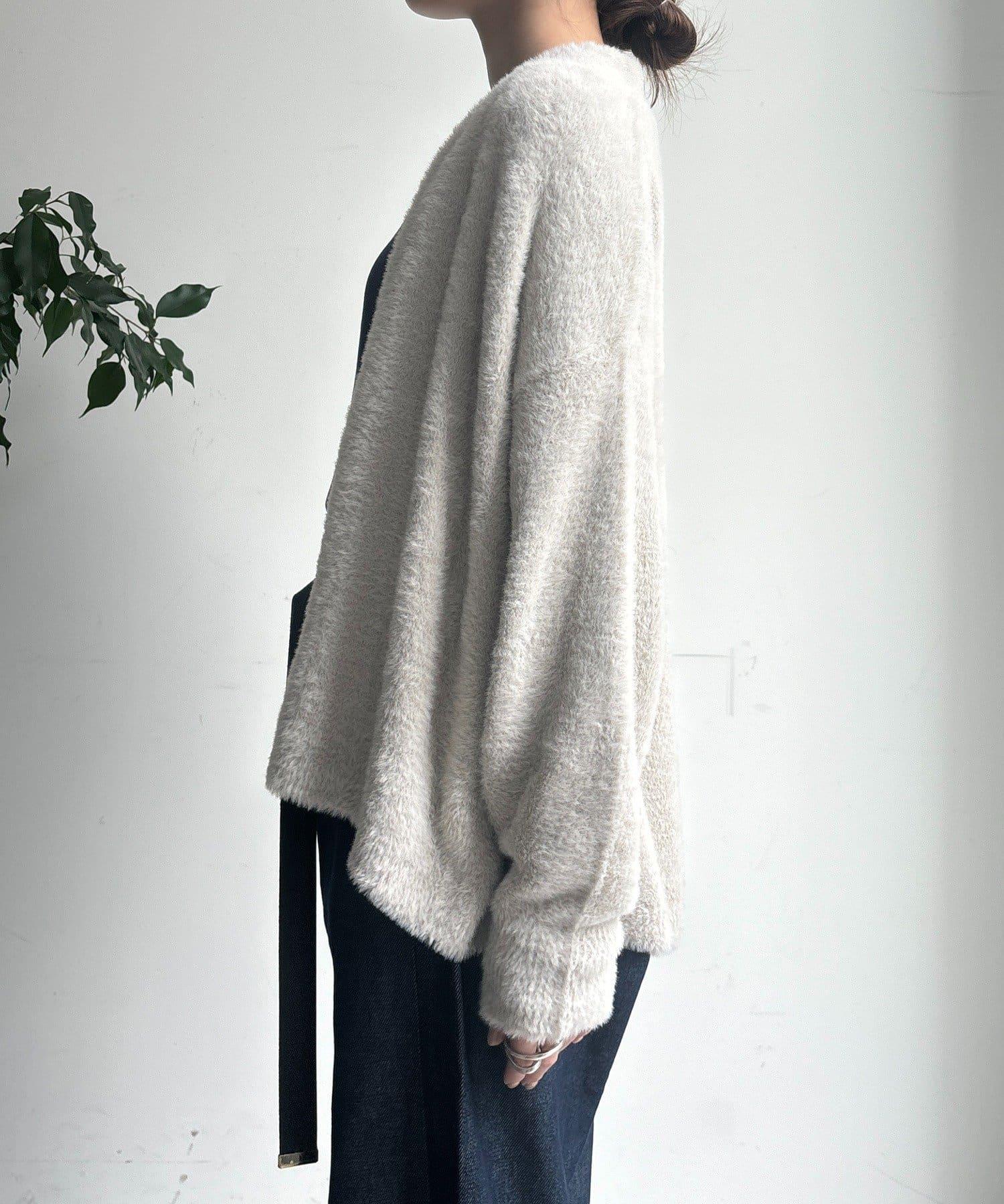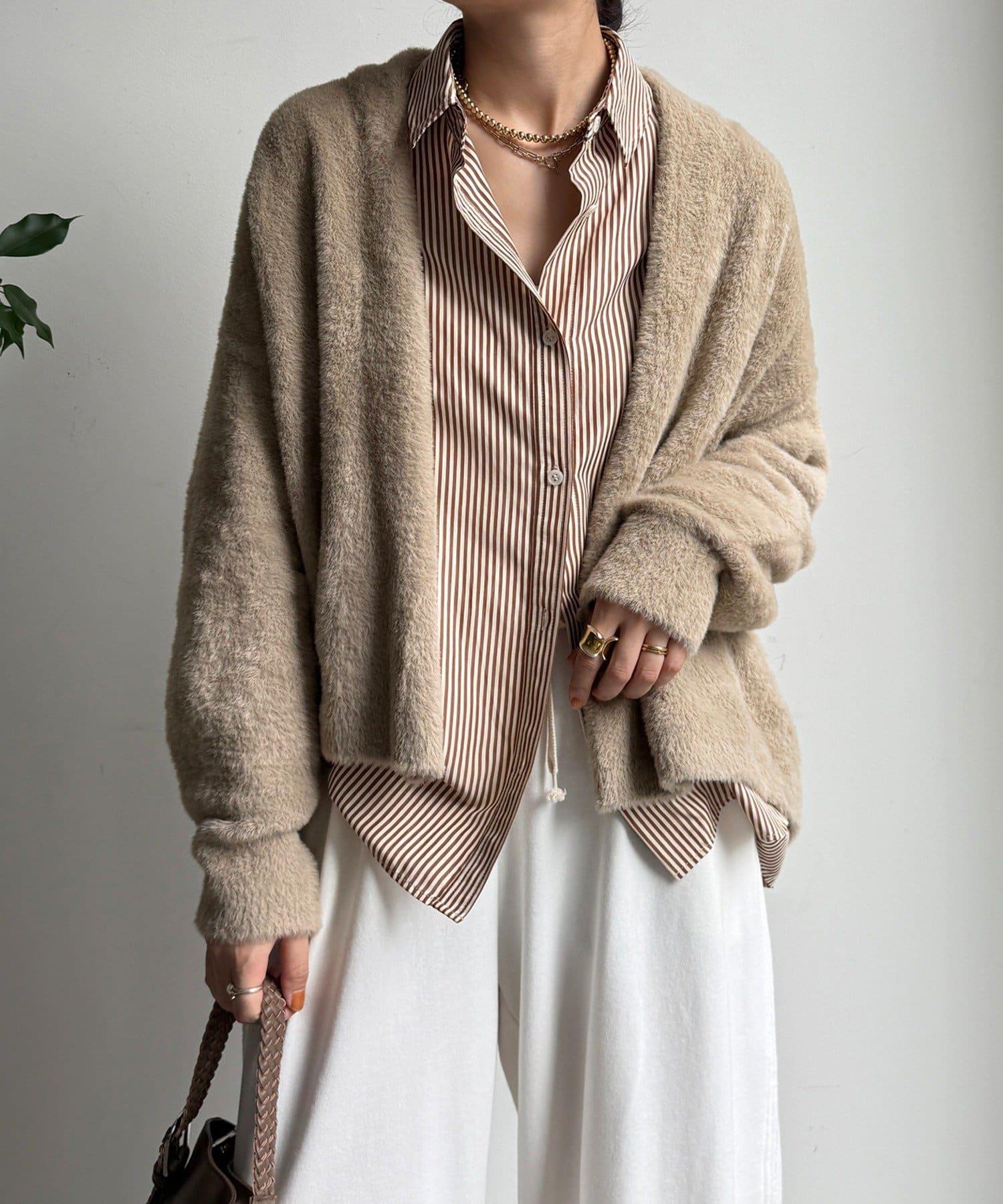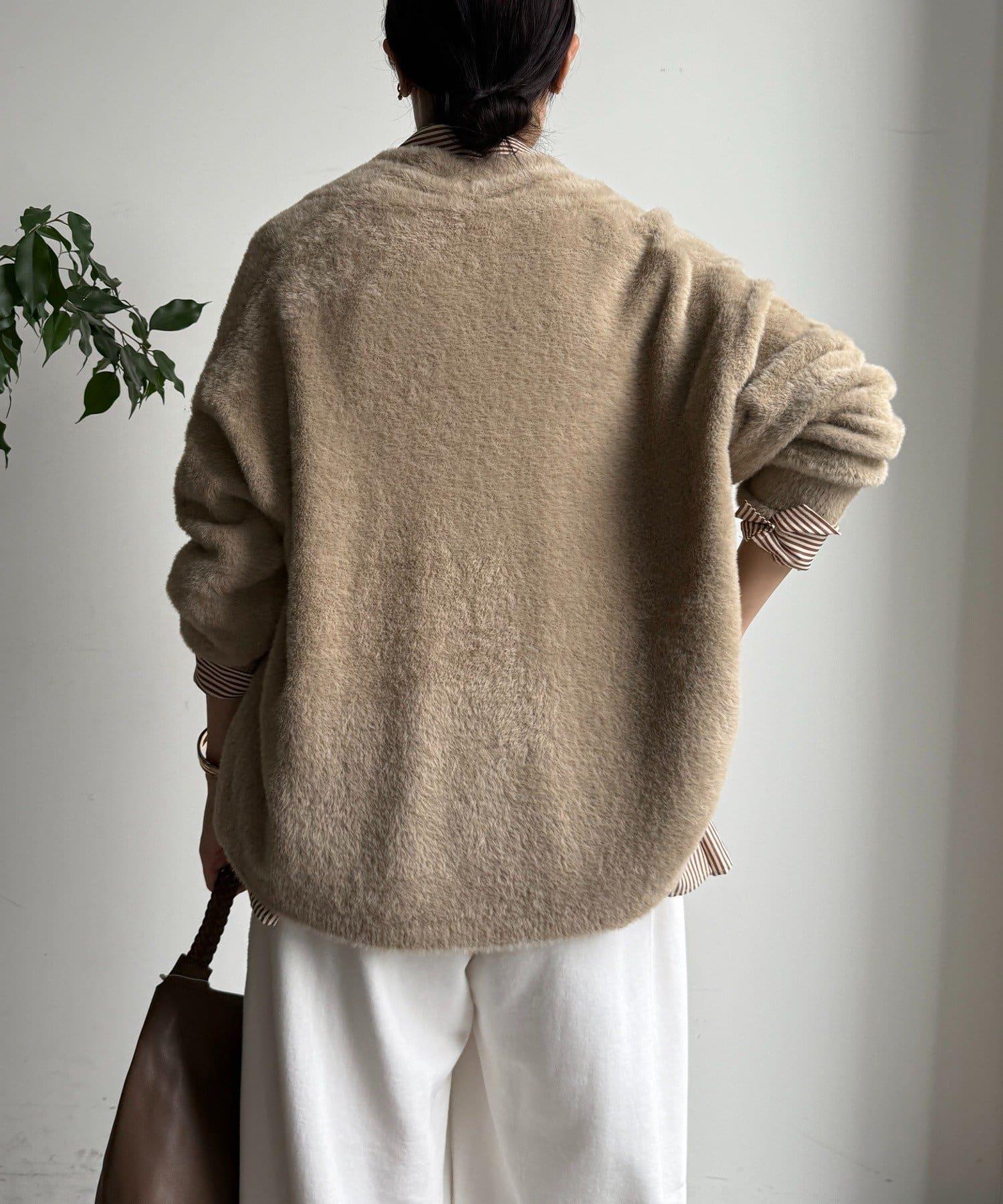 開衫採用秋冬季特有的蓬鬆羊毛面料製成。