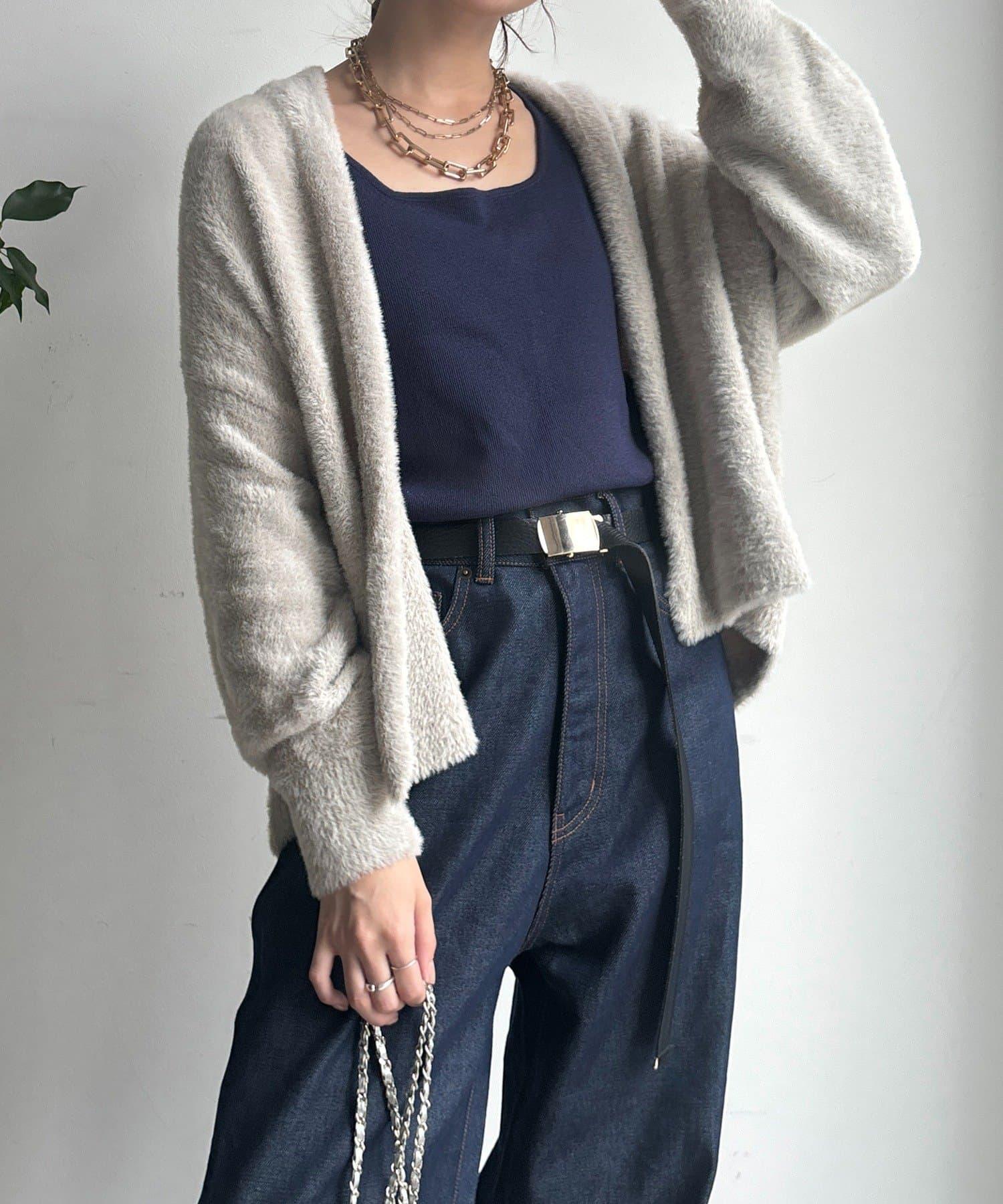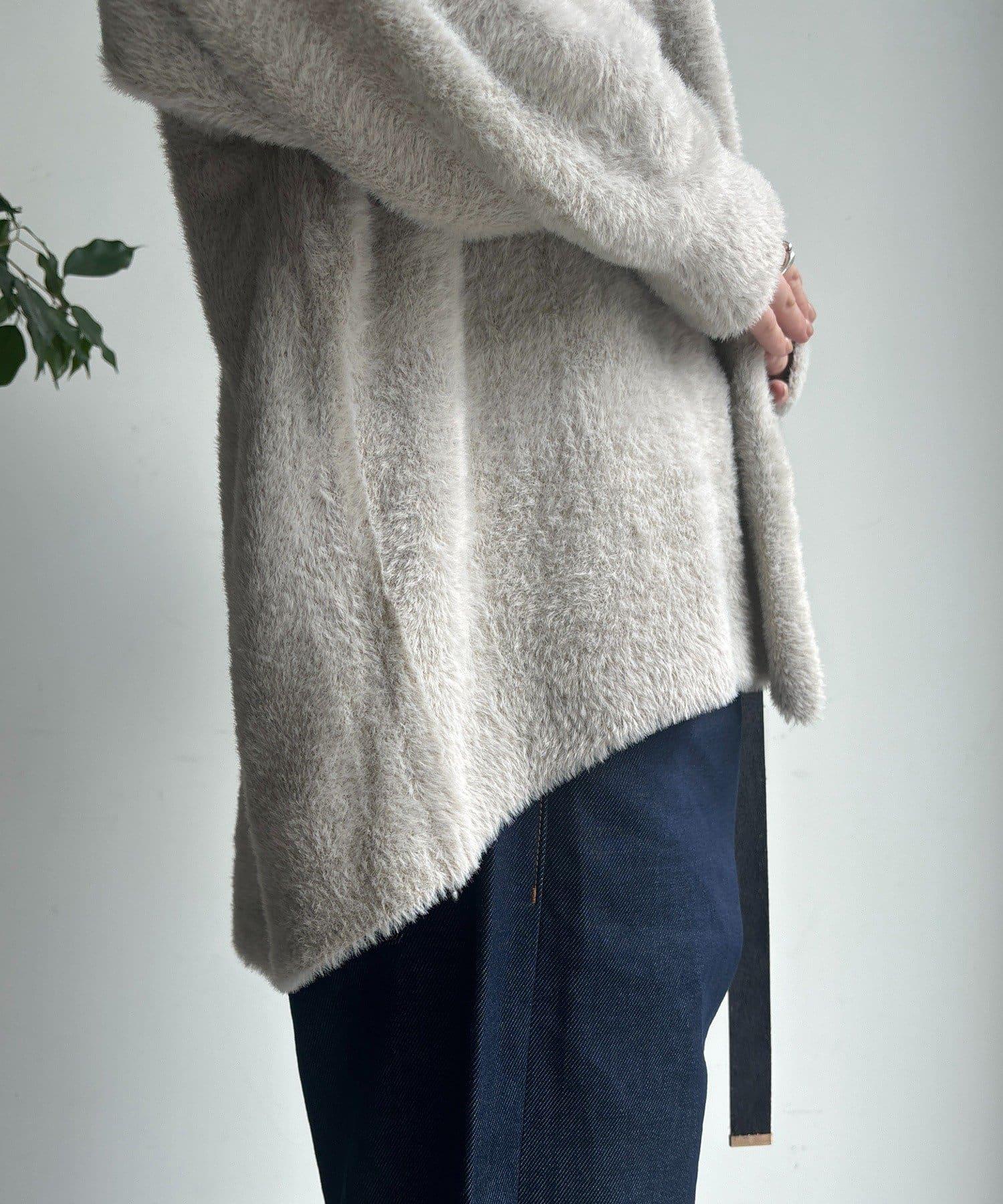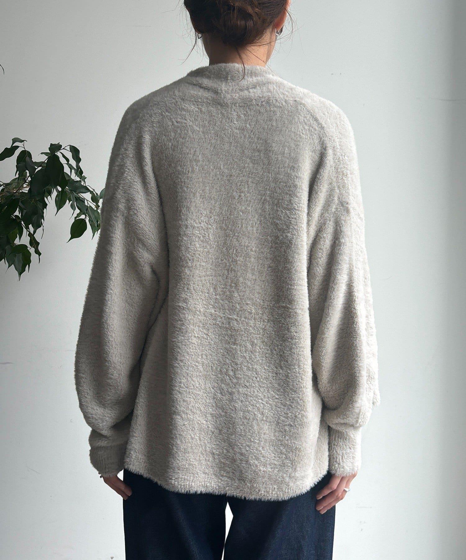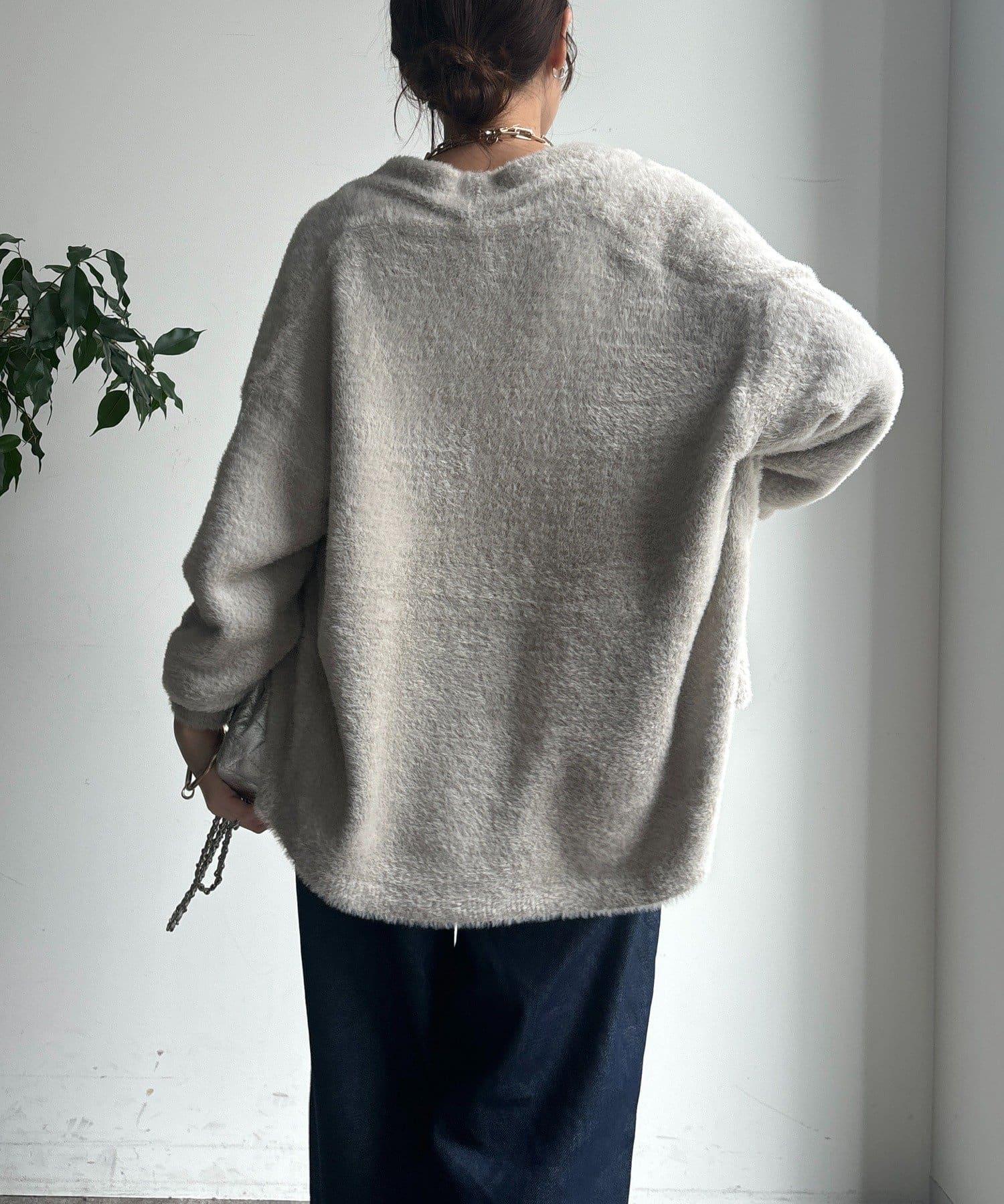 開衫採用秋冬季特有的蓬鬆羊毛面料製成。
