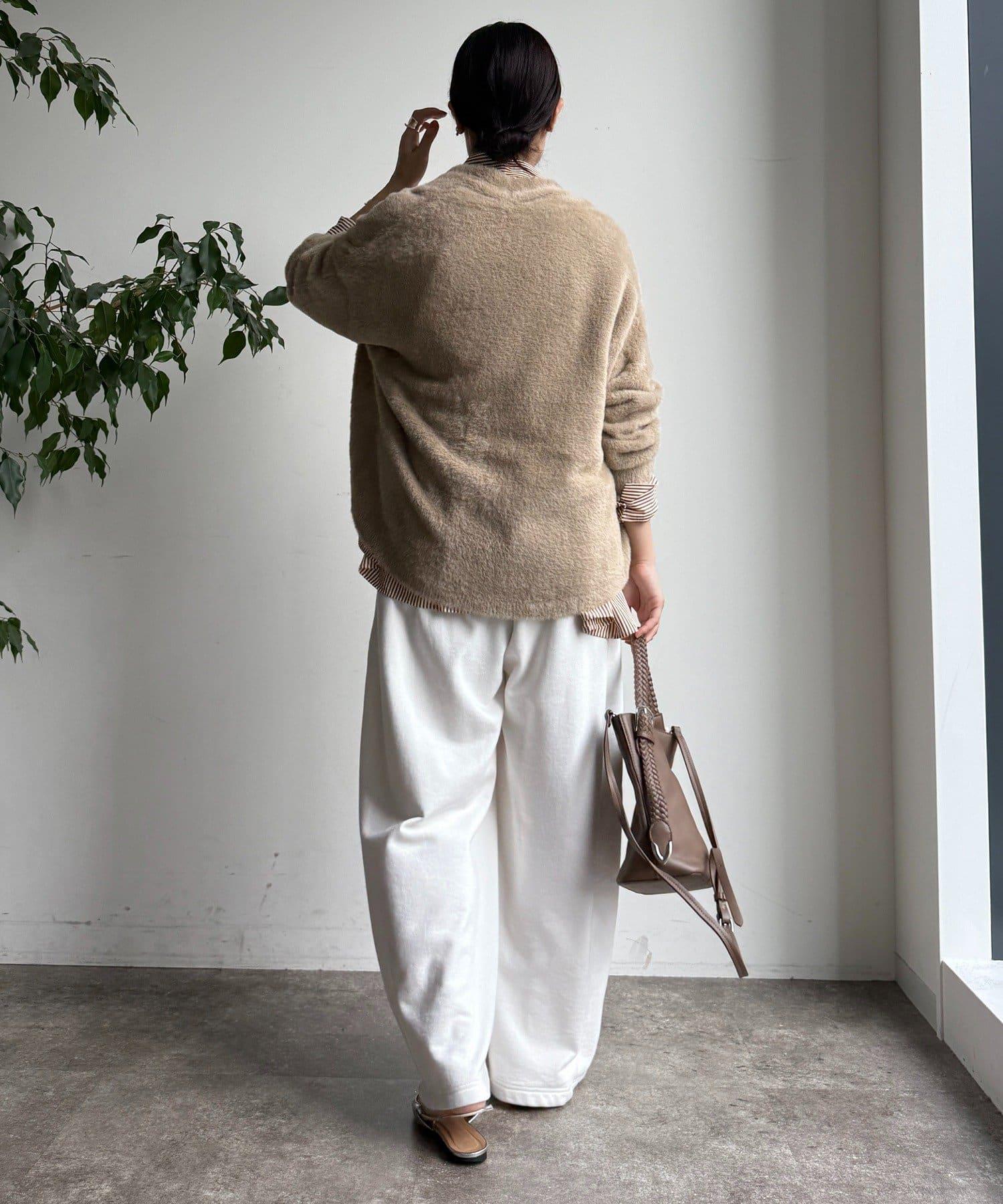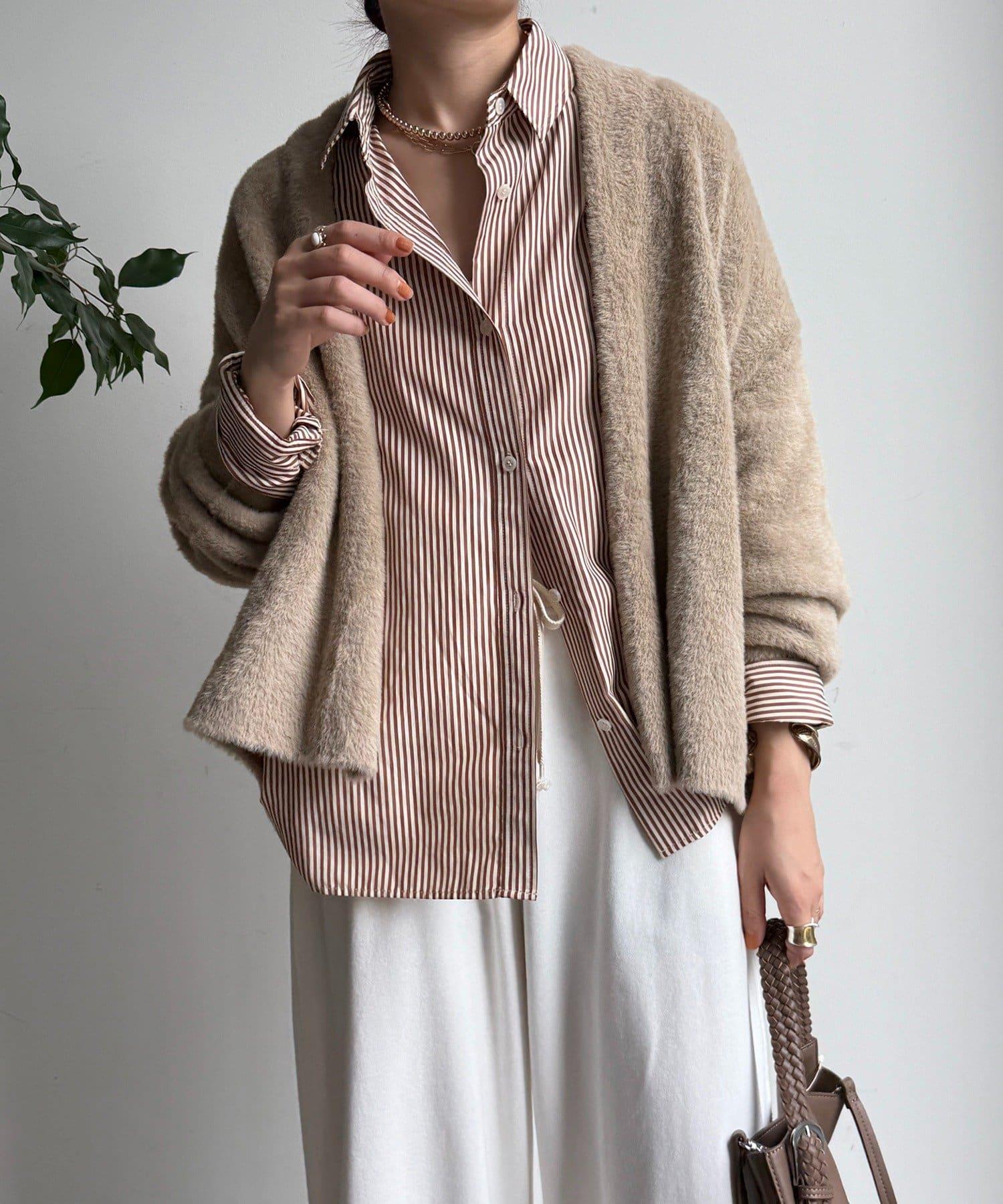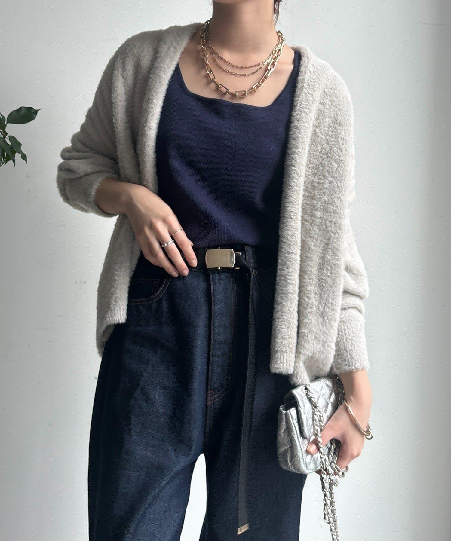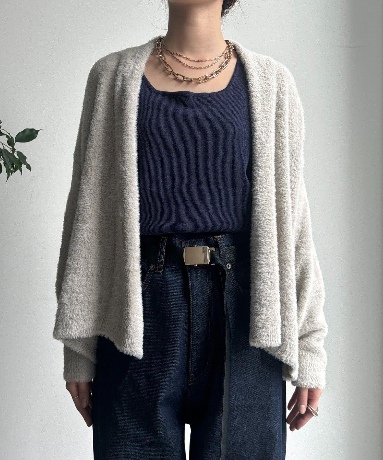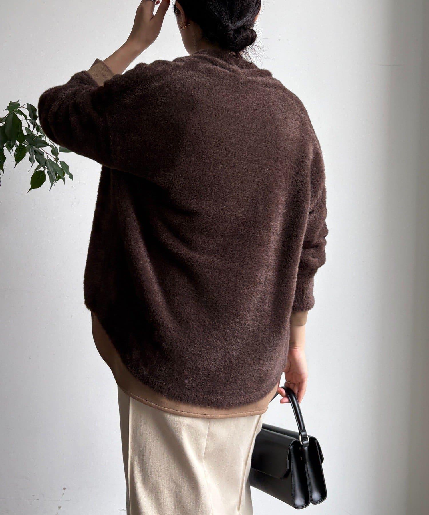 開衫採用秋冬季特有的蓬鬆羊毛面料製成。