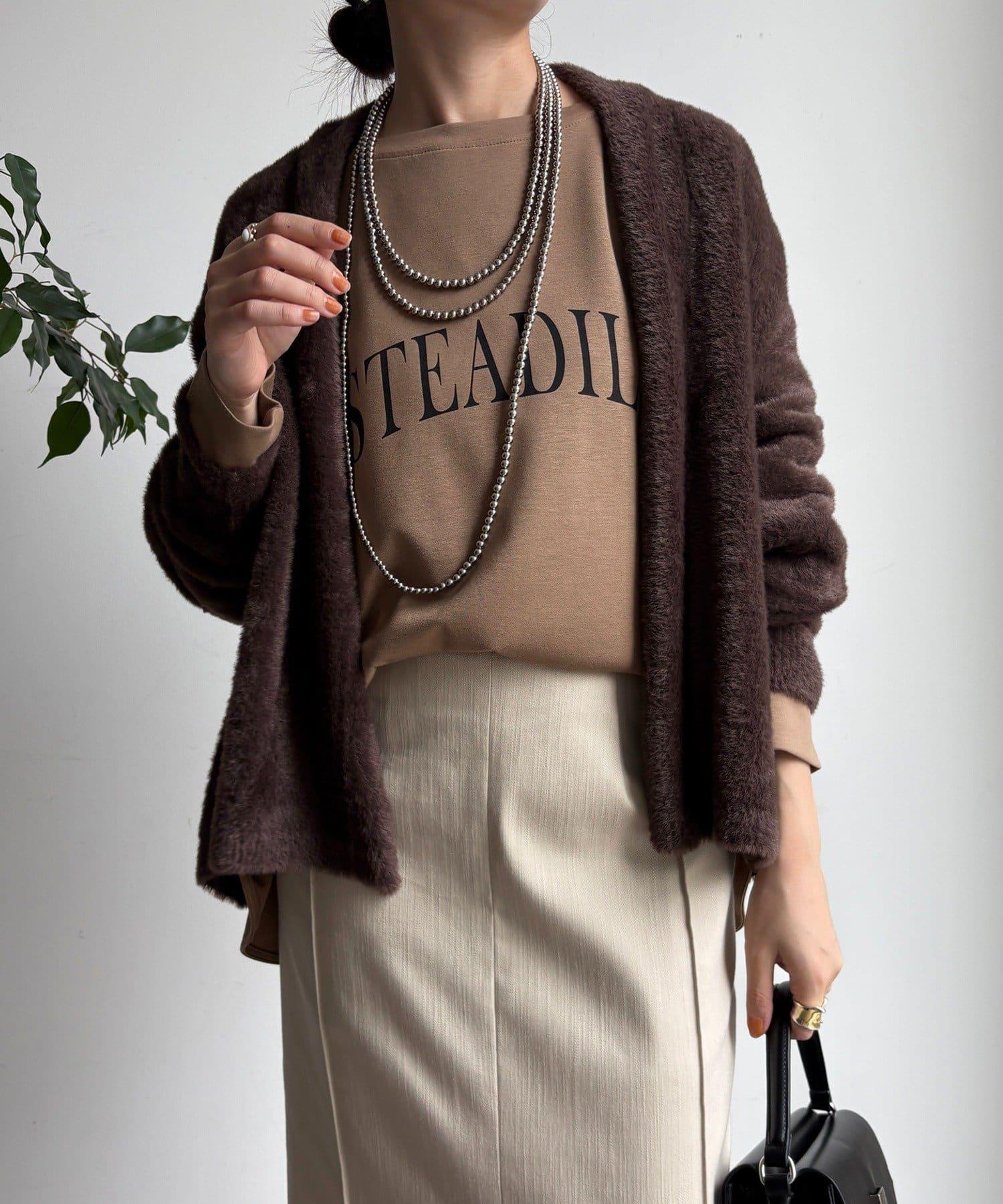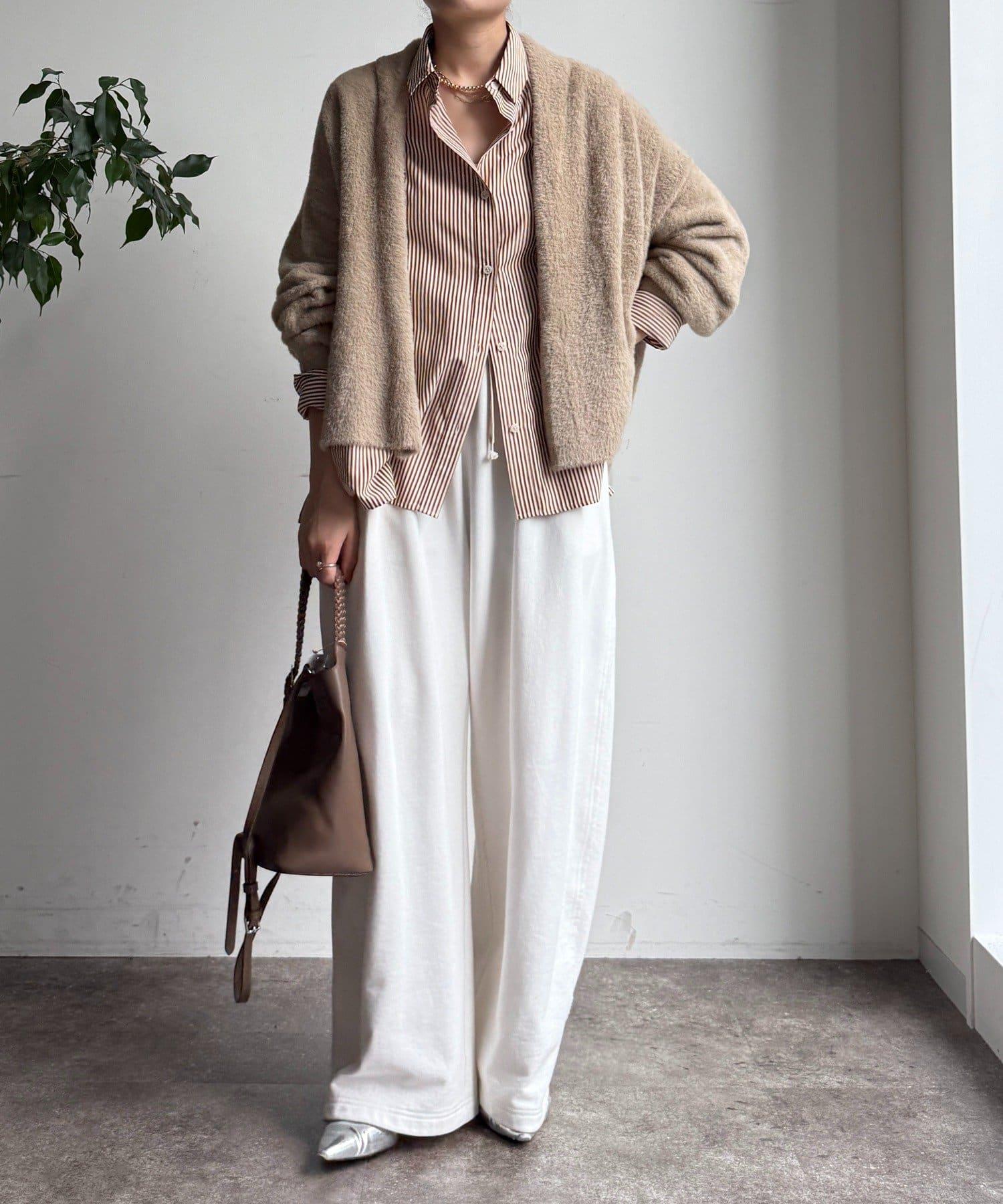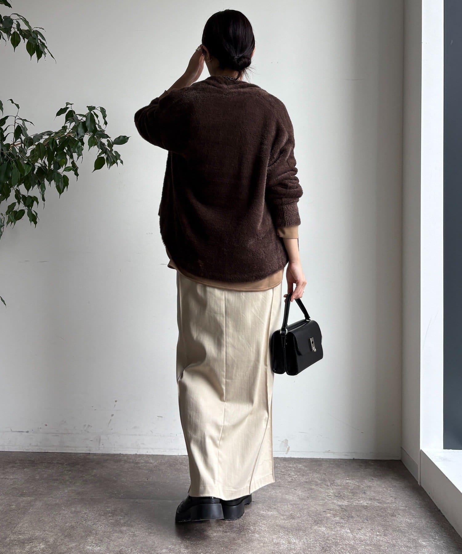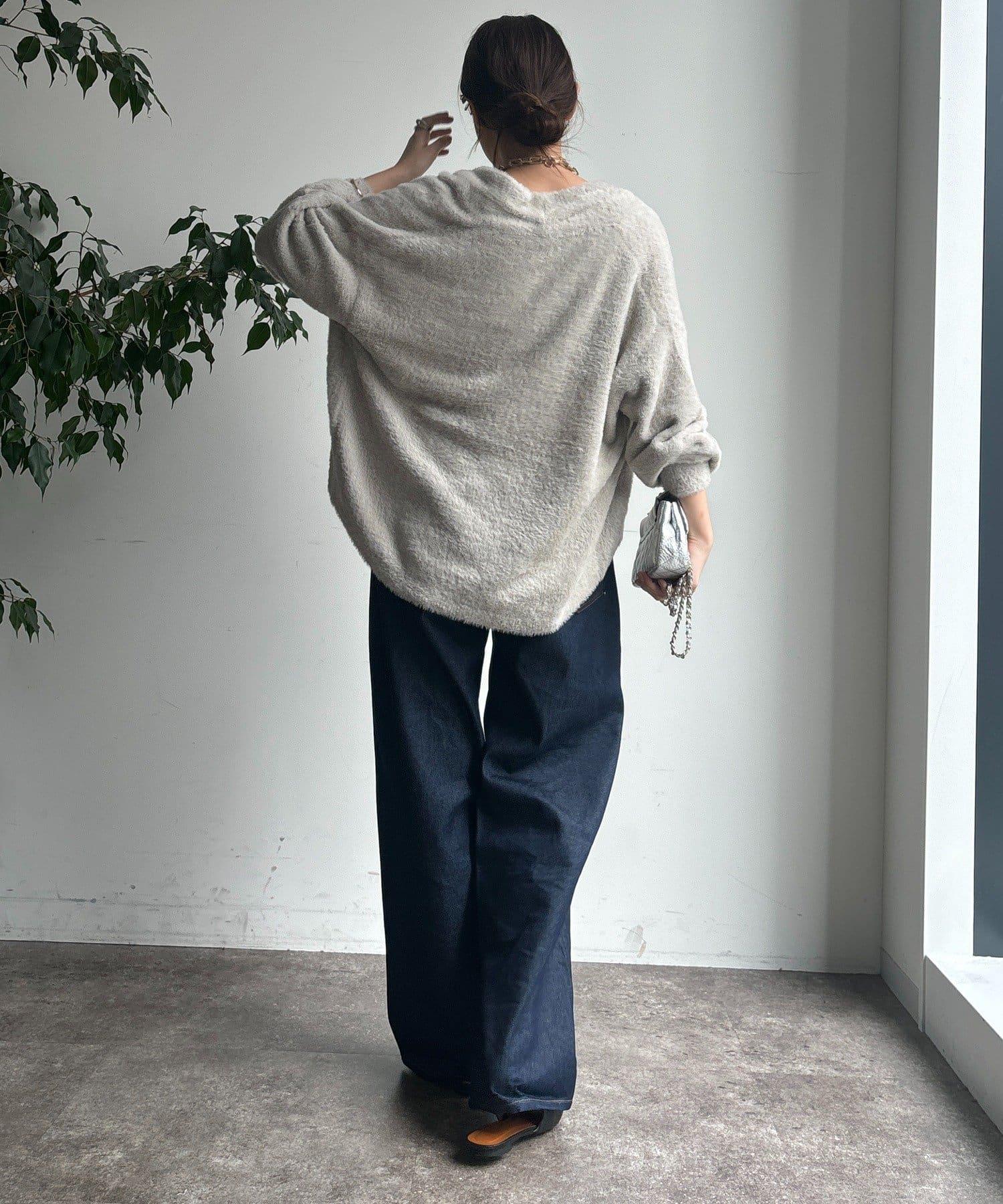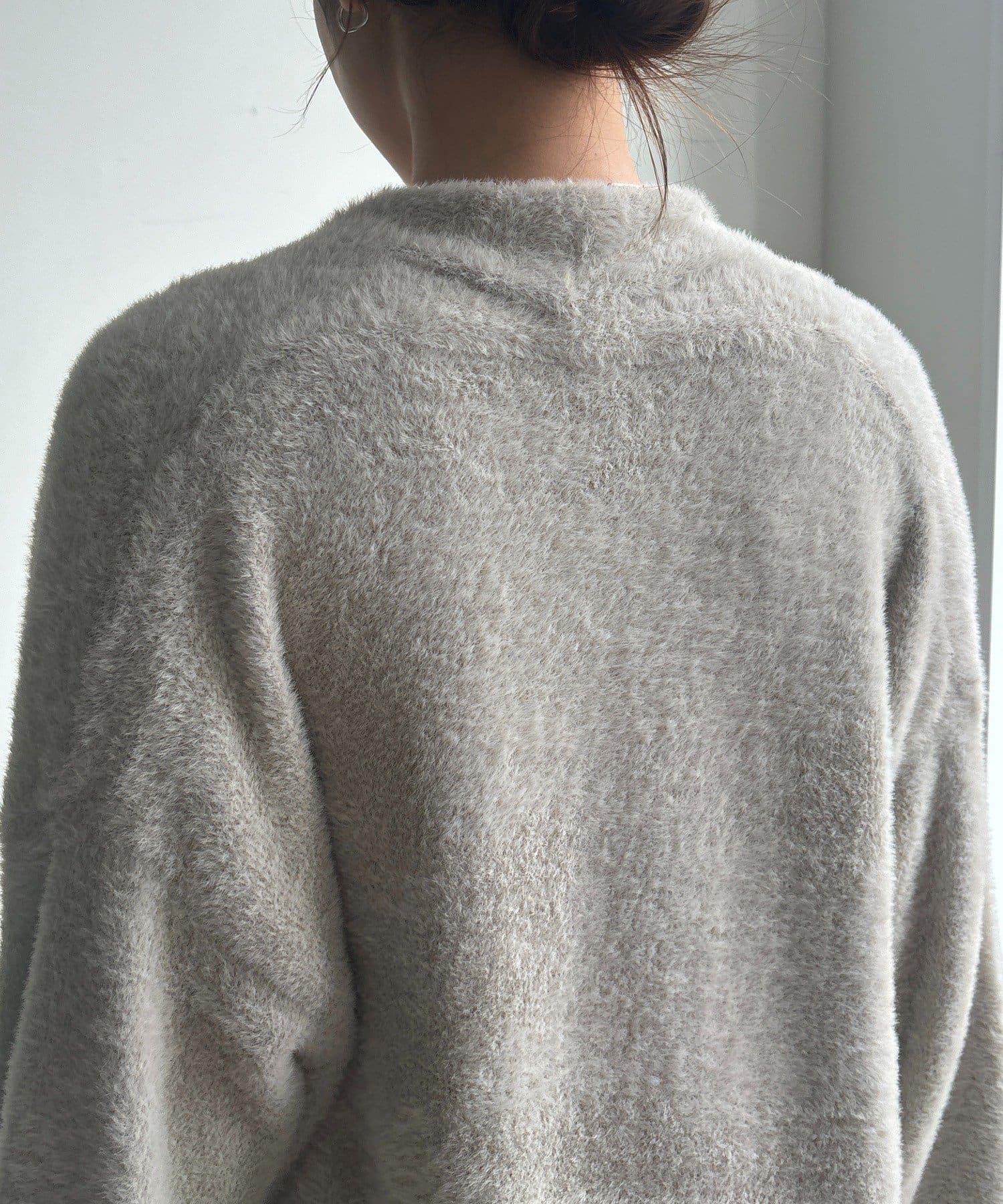 開衫採用秋冬季特有的蓬鬆羊毛面料製成。