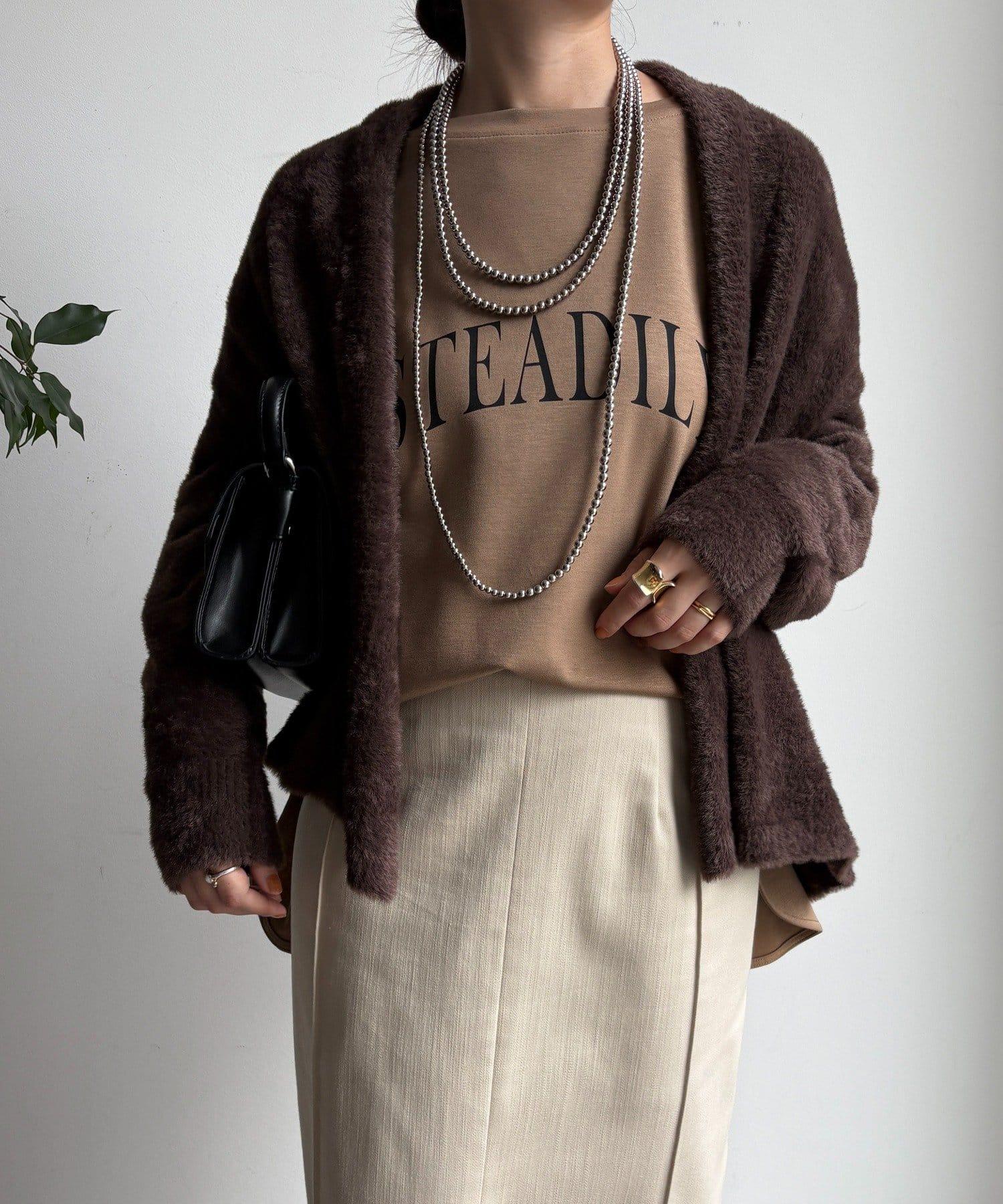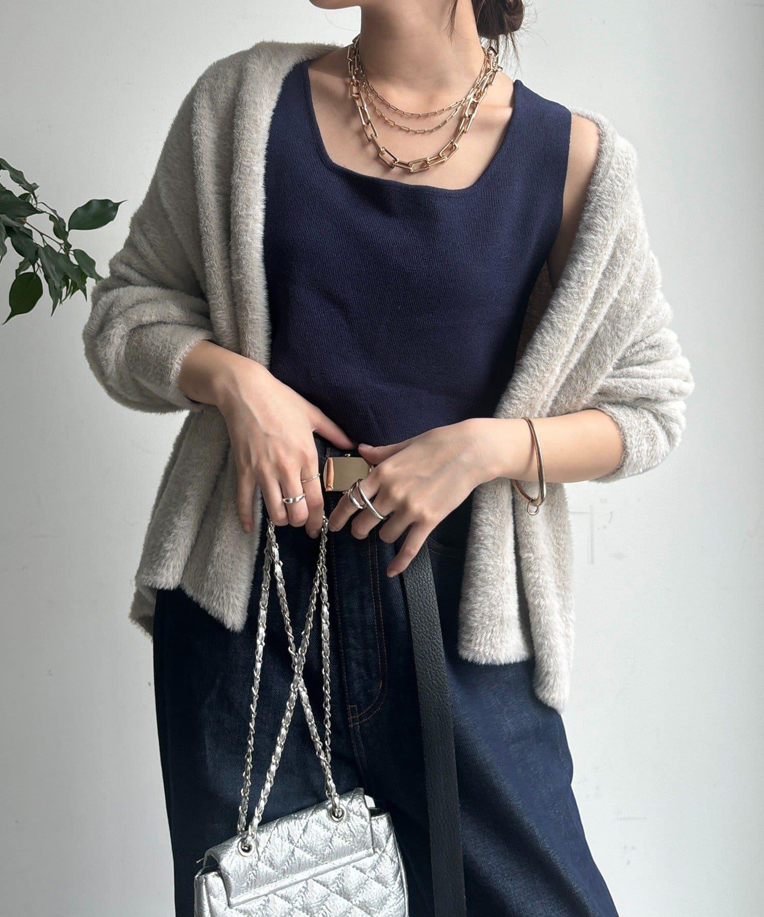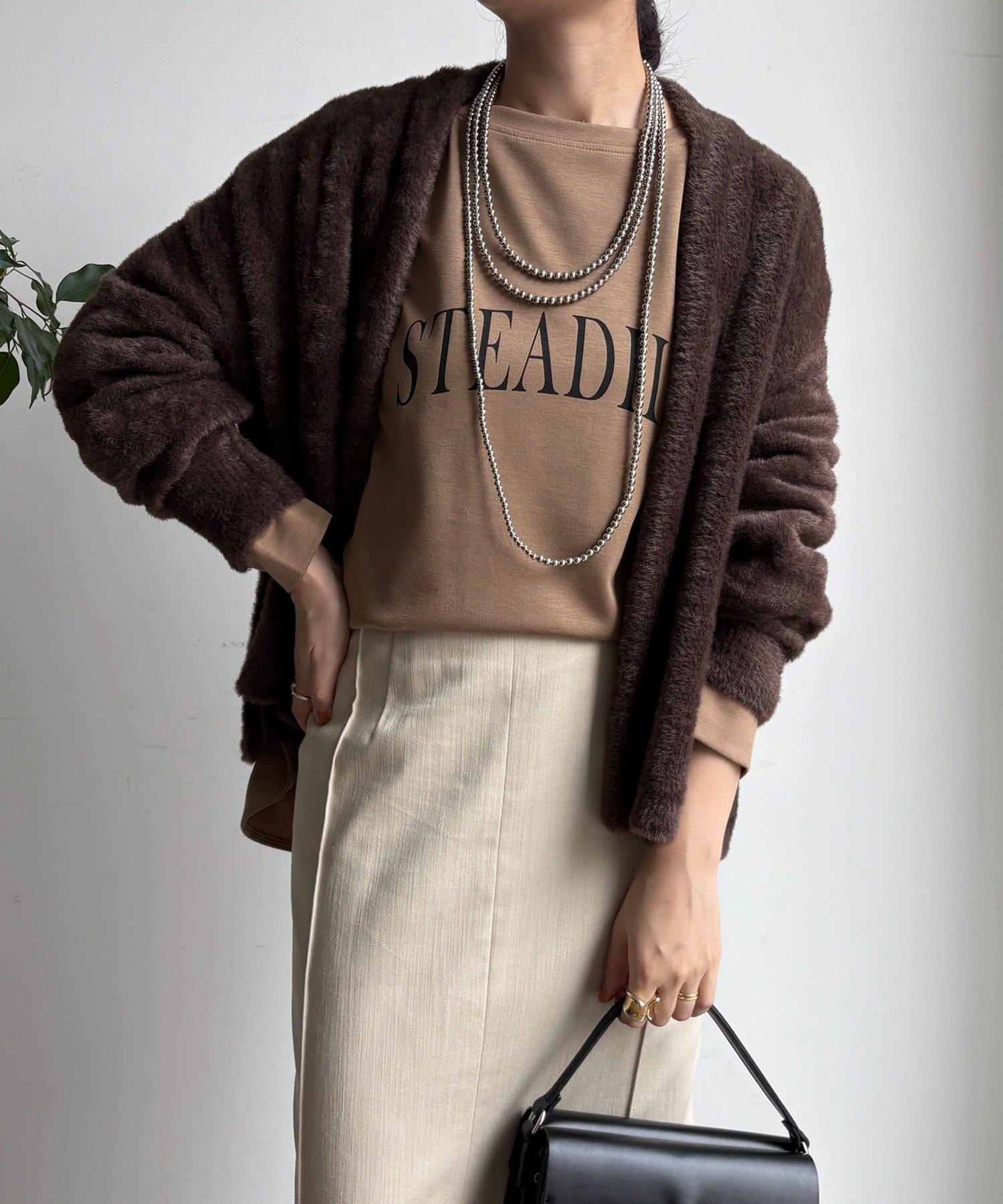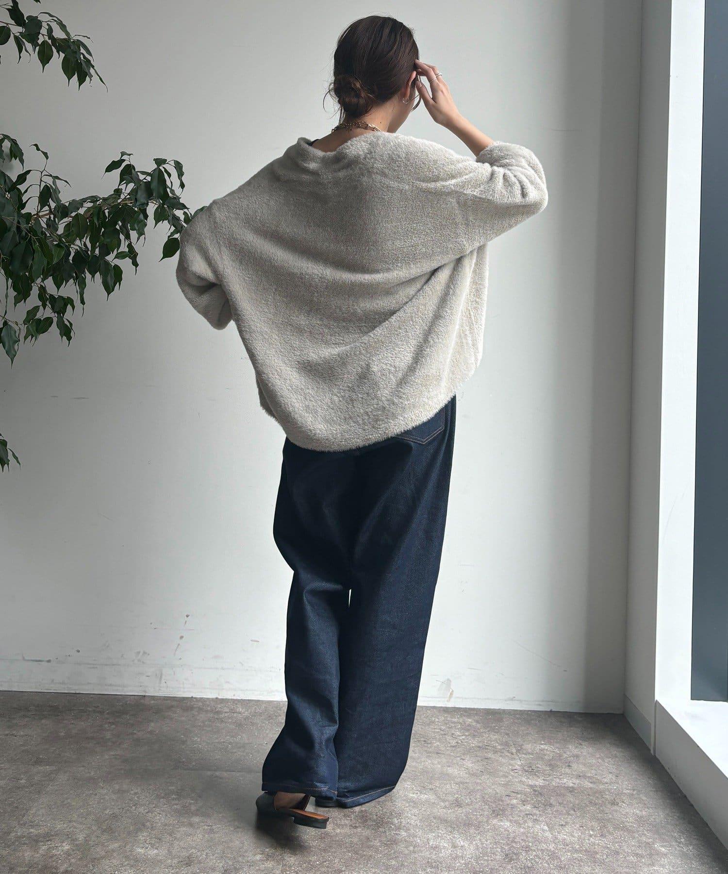開衫採用秋冬季特有的蓬鬆羊毛面料製成。