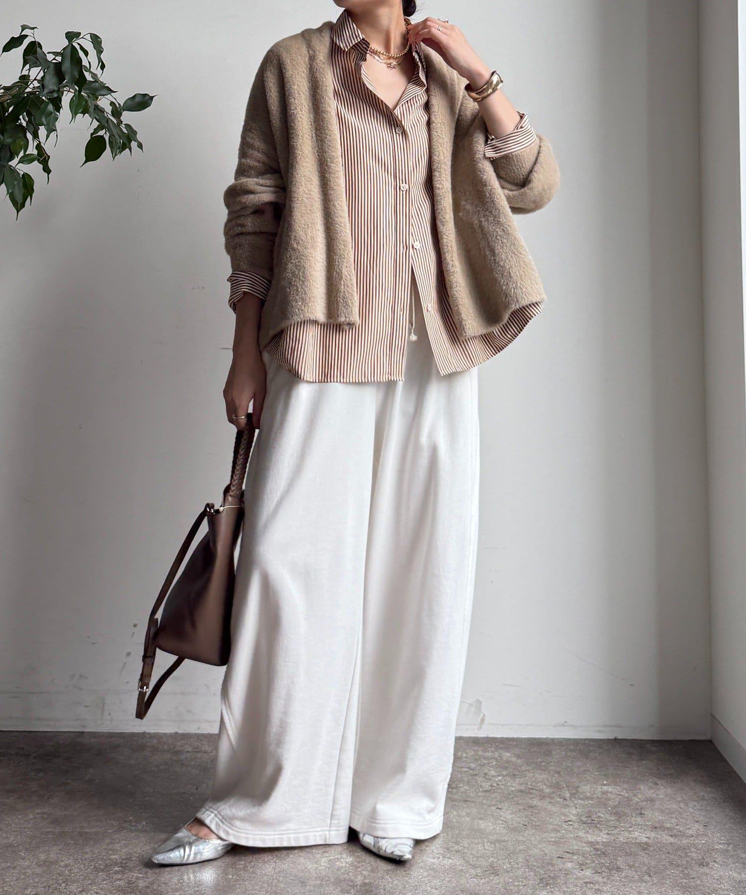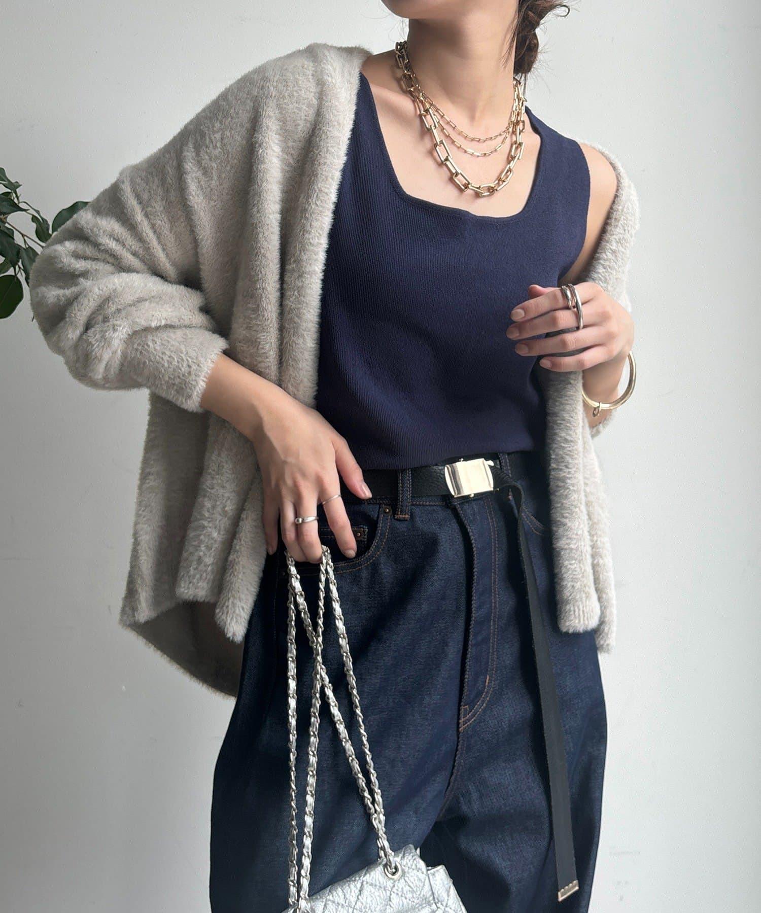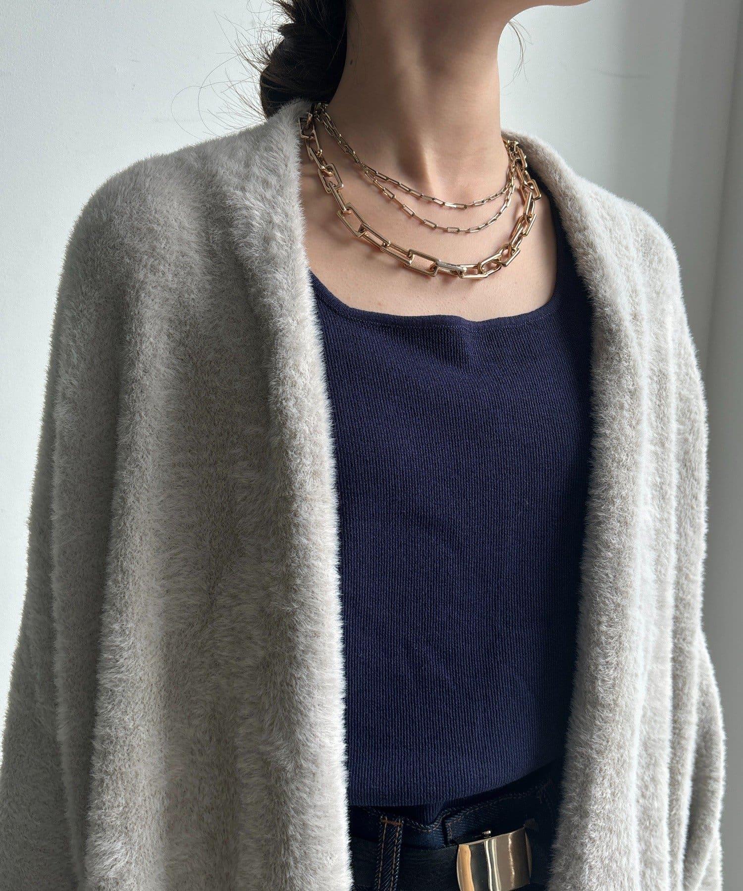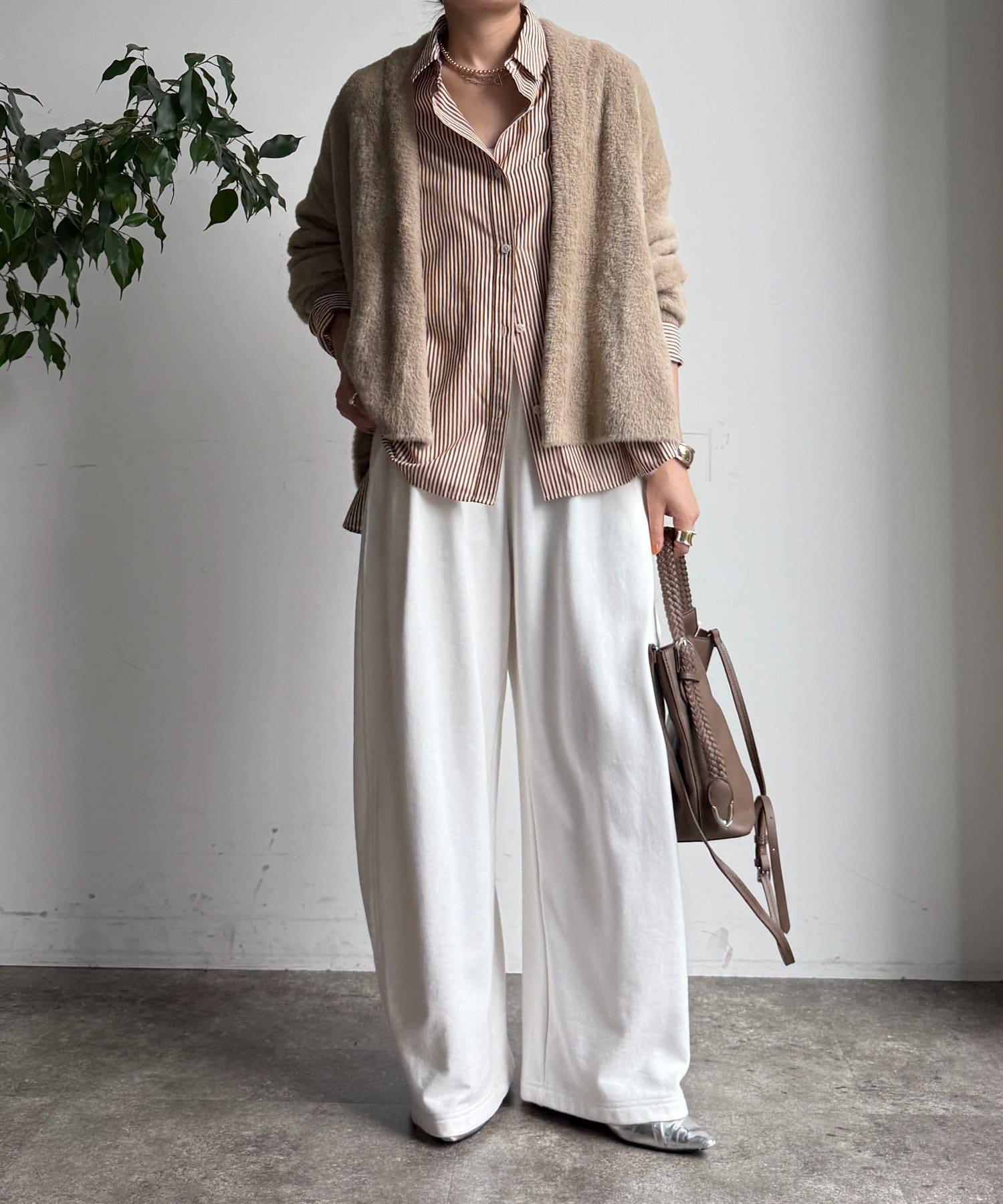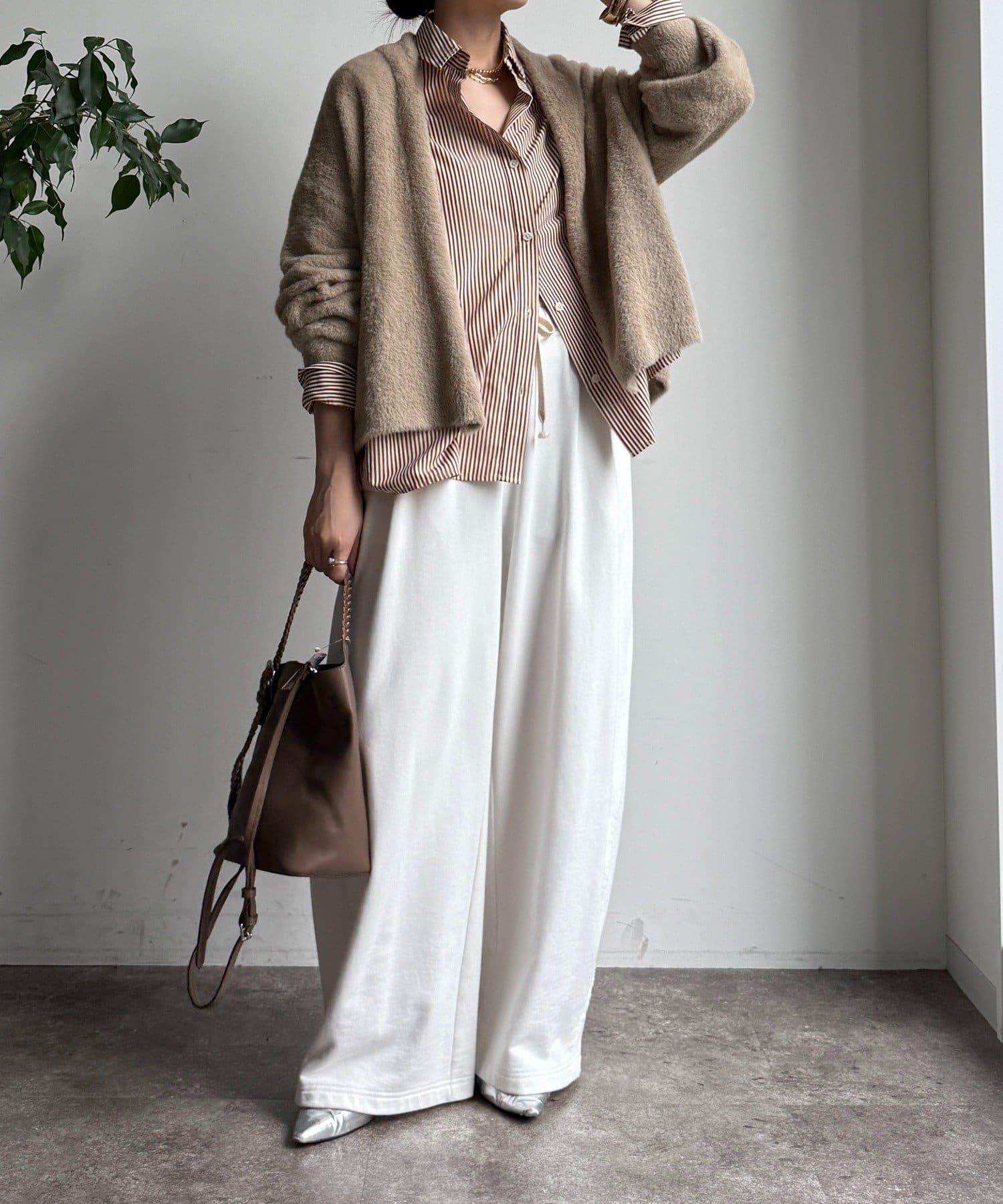 開衫採用秋冬季特有的蓬鬆羊毛面料製成。