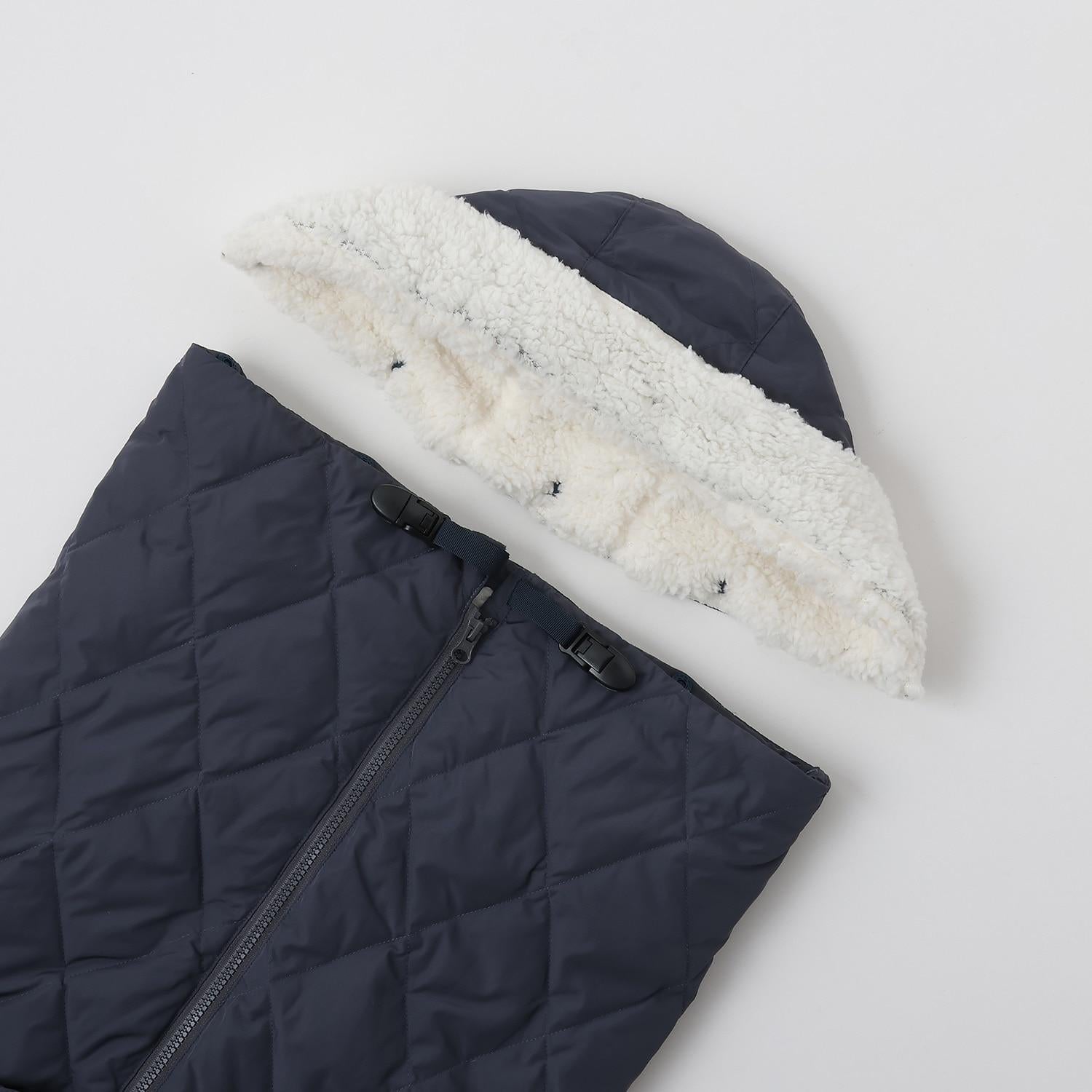 它可以套在嬰兒揹帶套或嬰兒車上,也可以打開下襬做成被子。