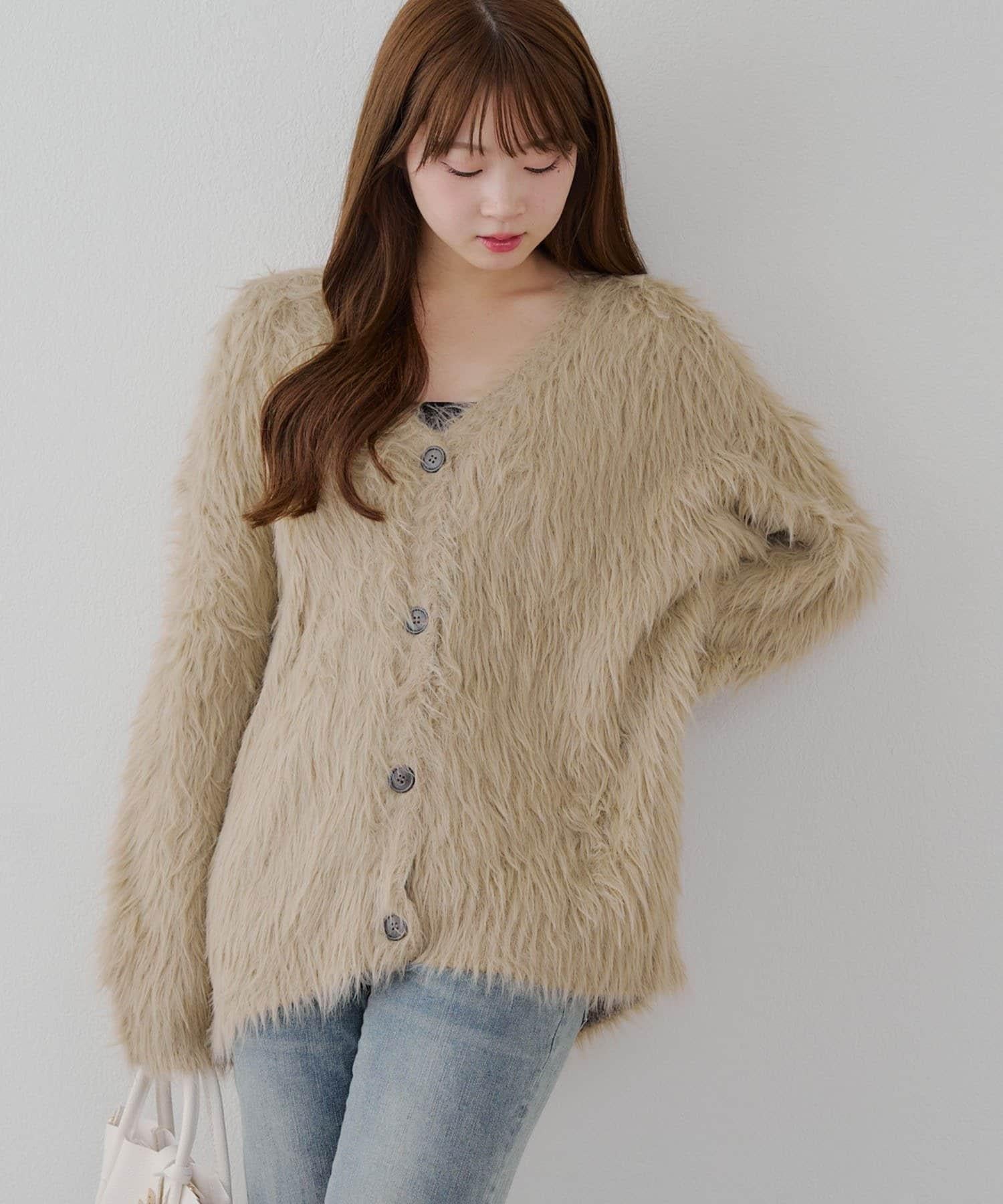 蓬鬆舒適♪羽毛針織開衫