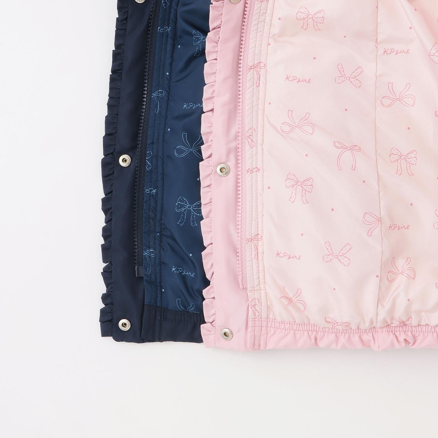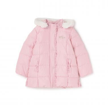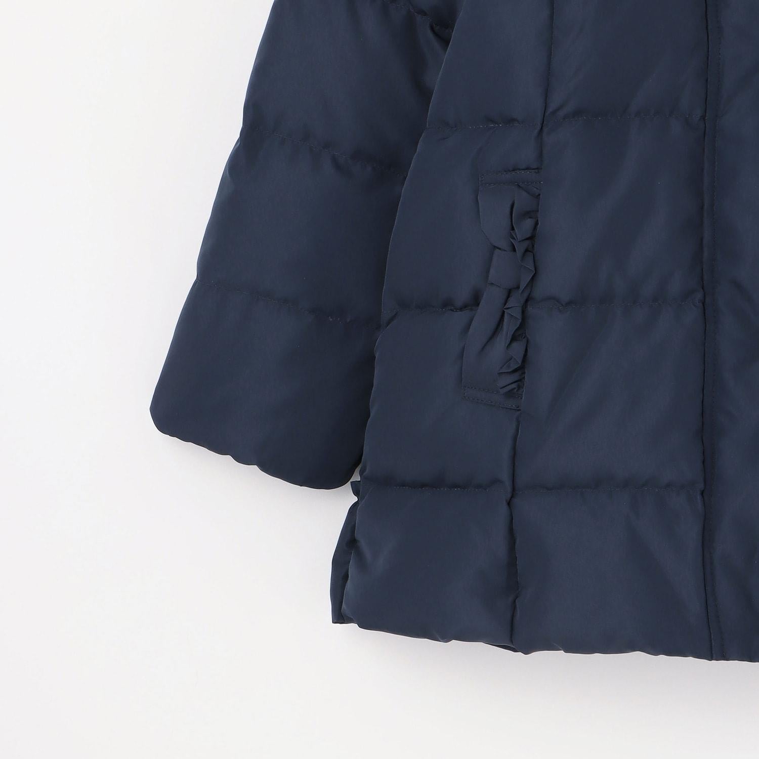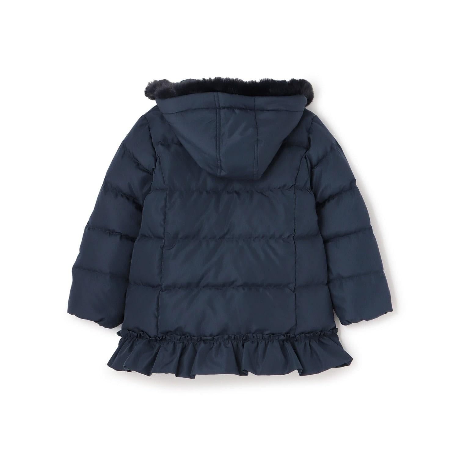 這是一款休閒可愛的羽絨服,後襬上有荷葉邊設計。