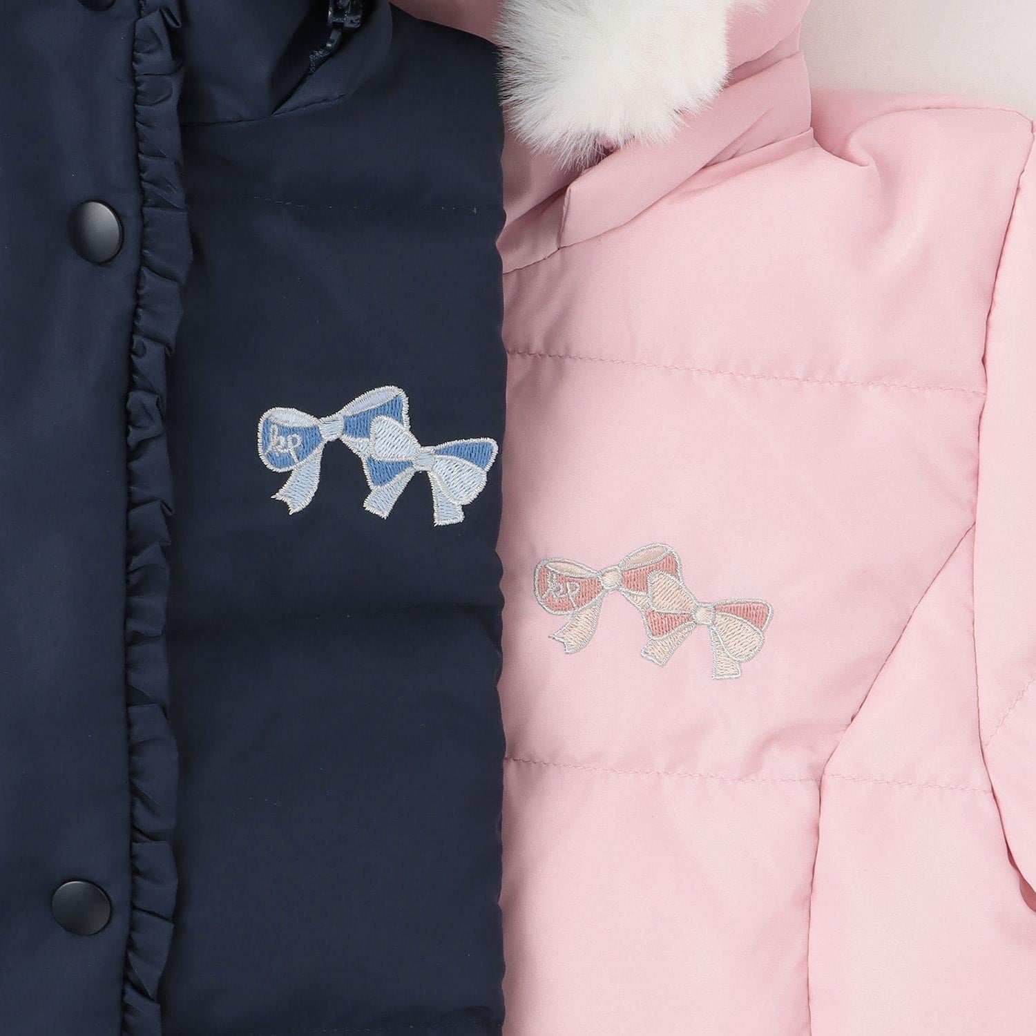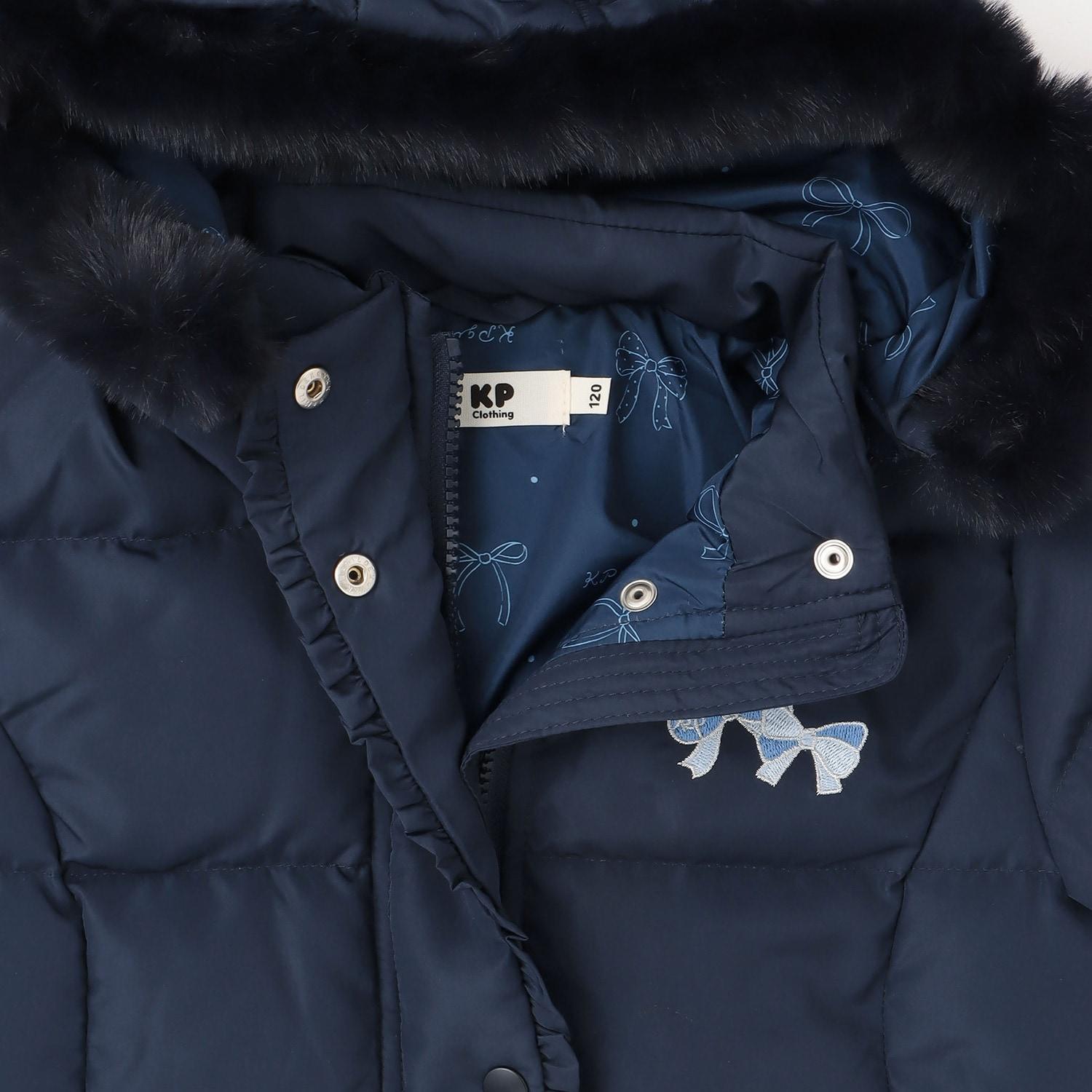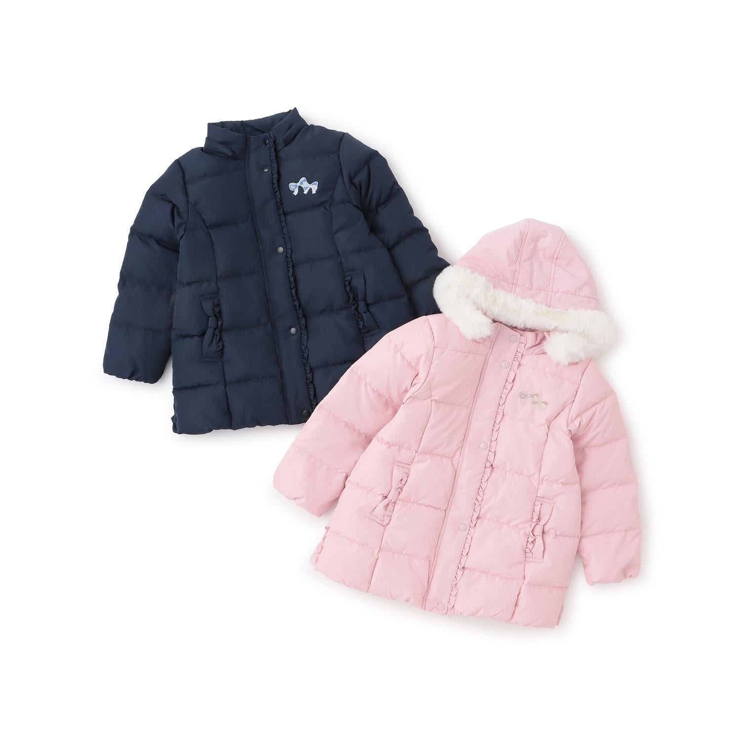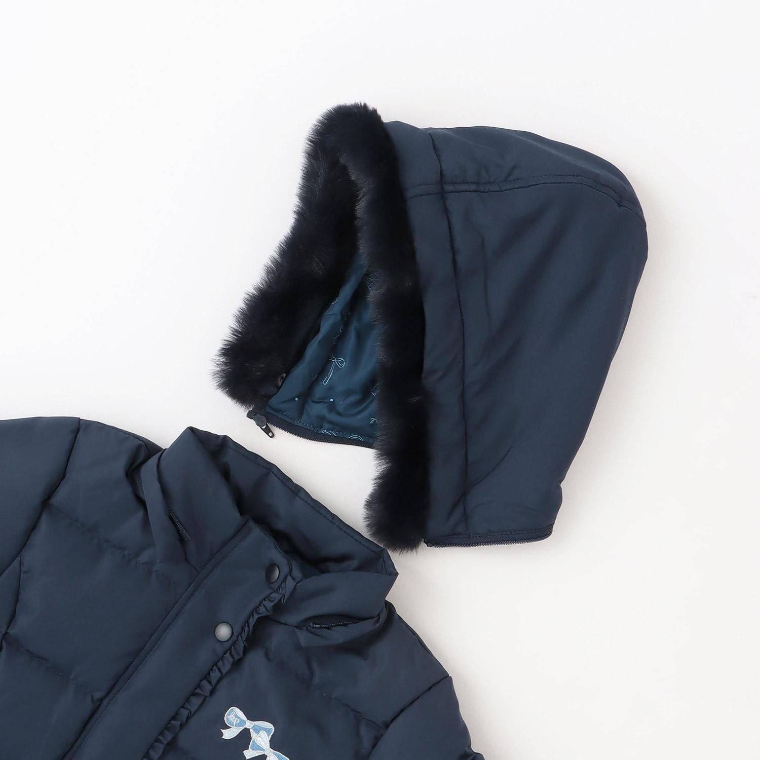 這是一款休閒可愛的羽絨服,後襬上有荷葉邊設計。