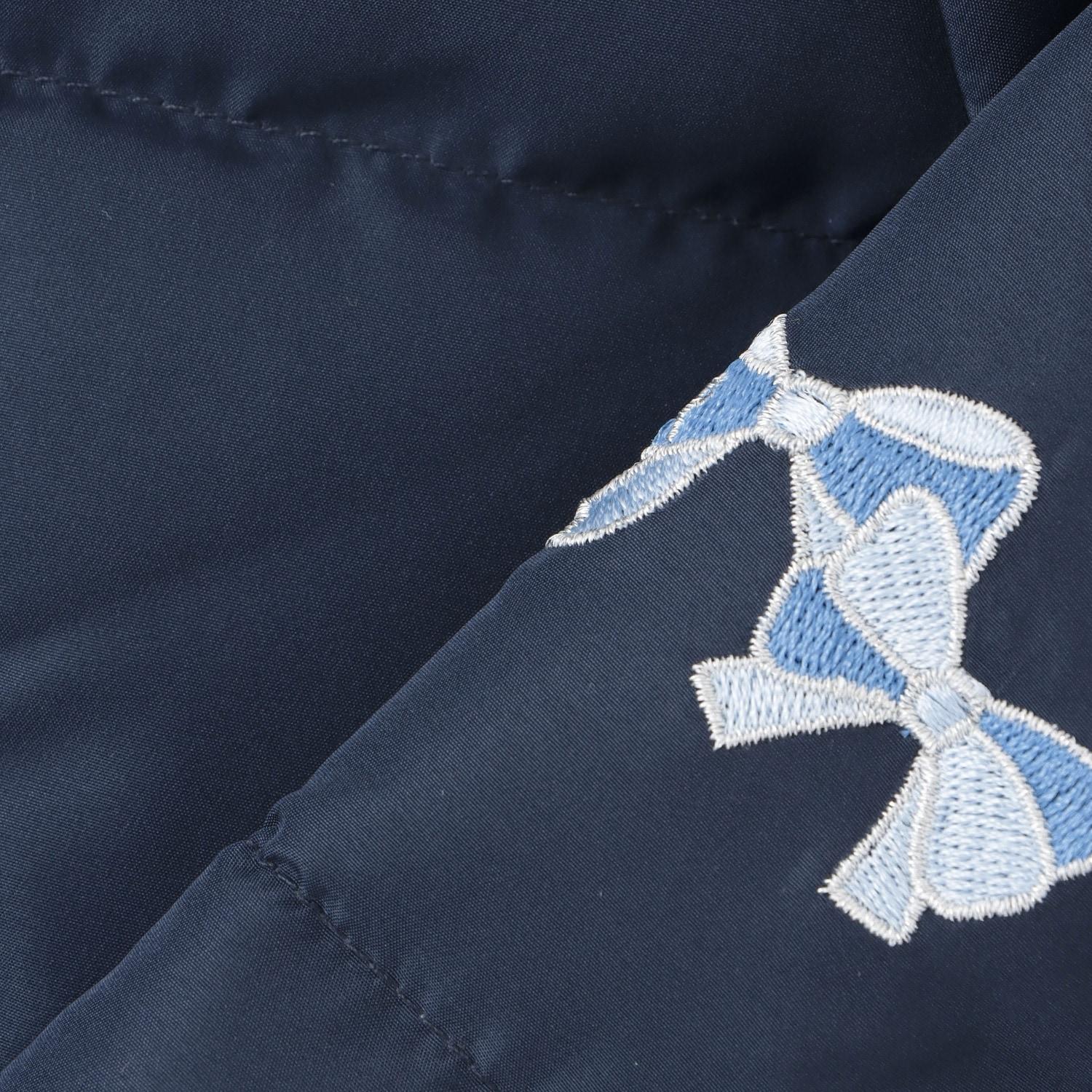 前口袋開口也設計成絲帶狀,塔夫綢襯裡也印有絲帶圖案。