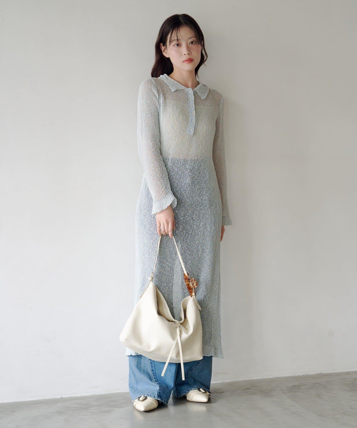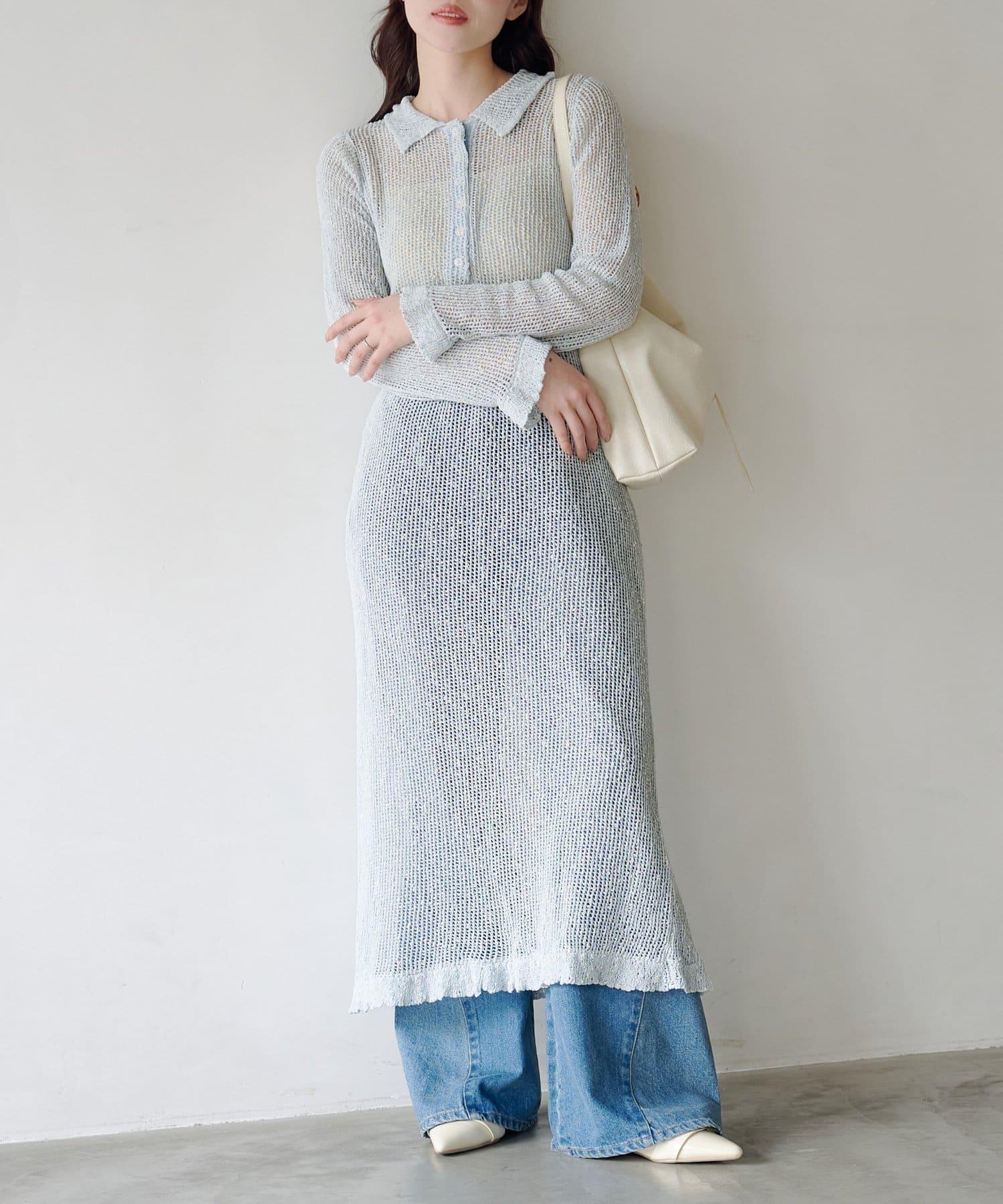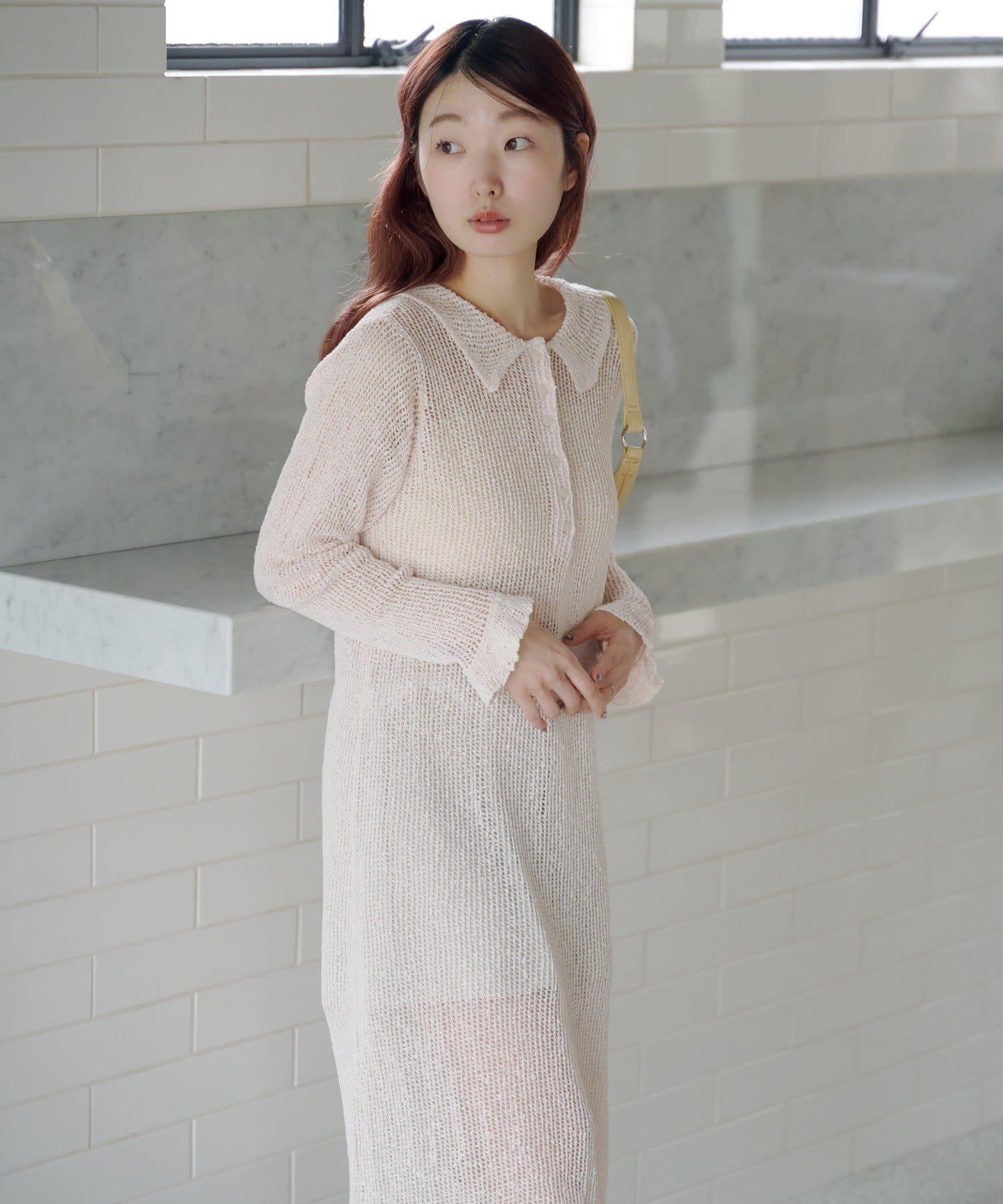 翻領網眼連衣裙