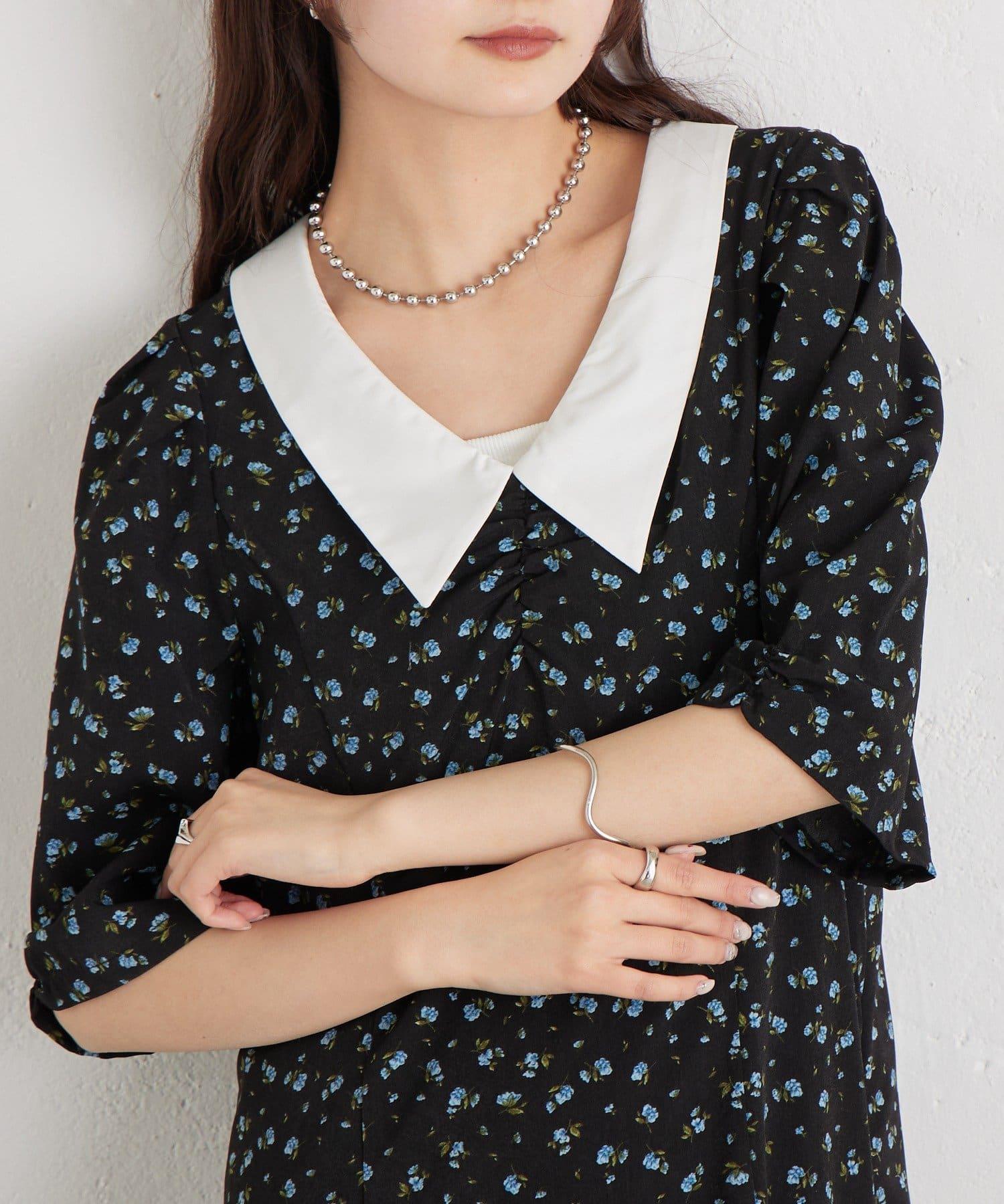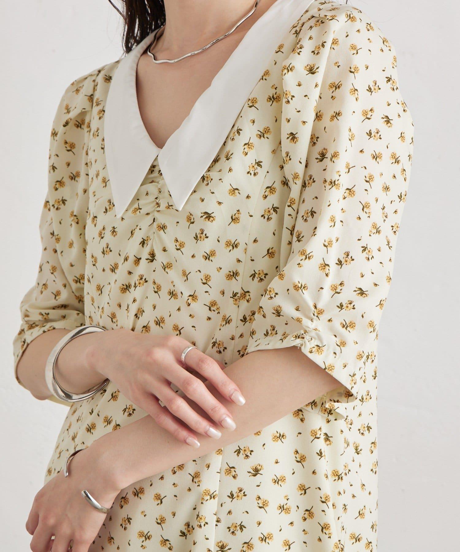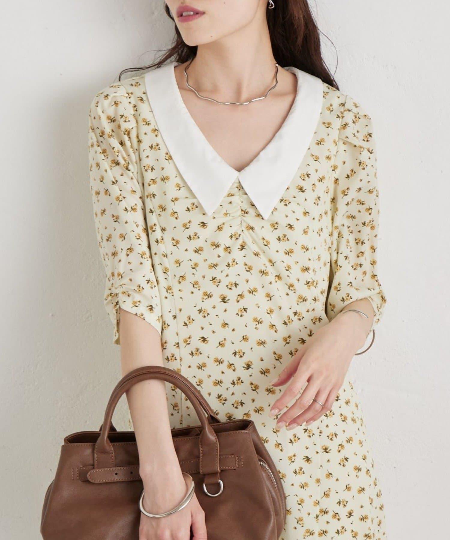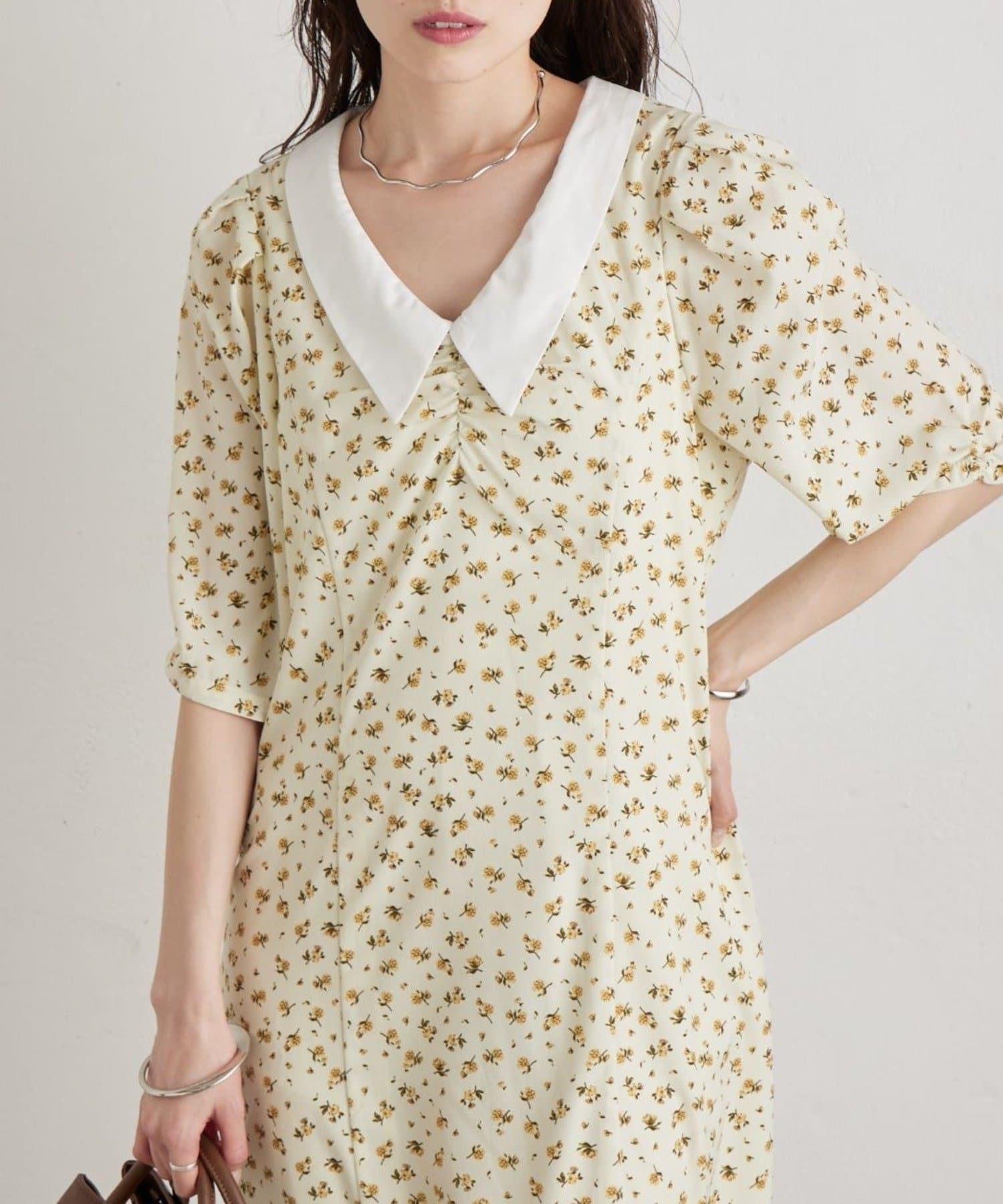 翻領花卉連衣裙
