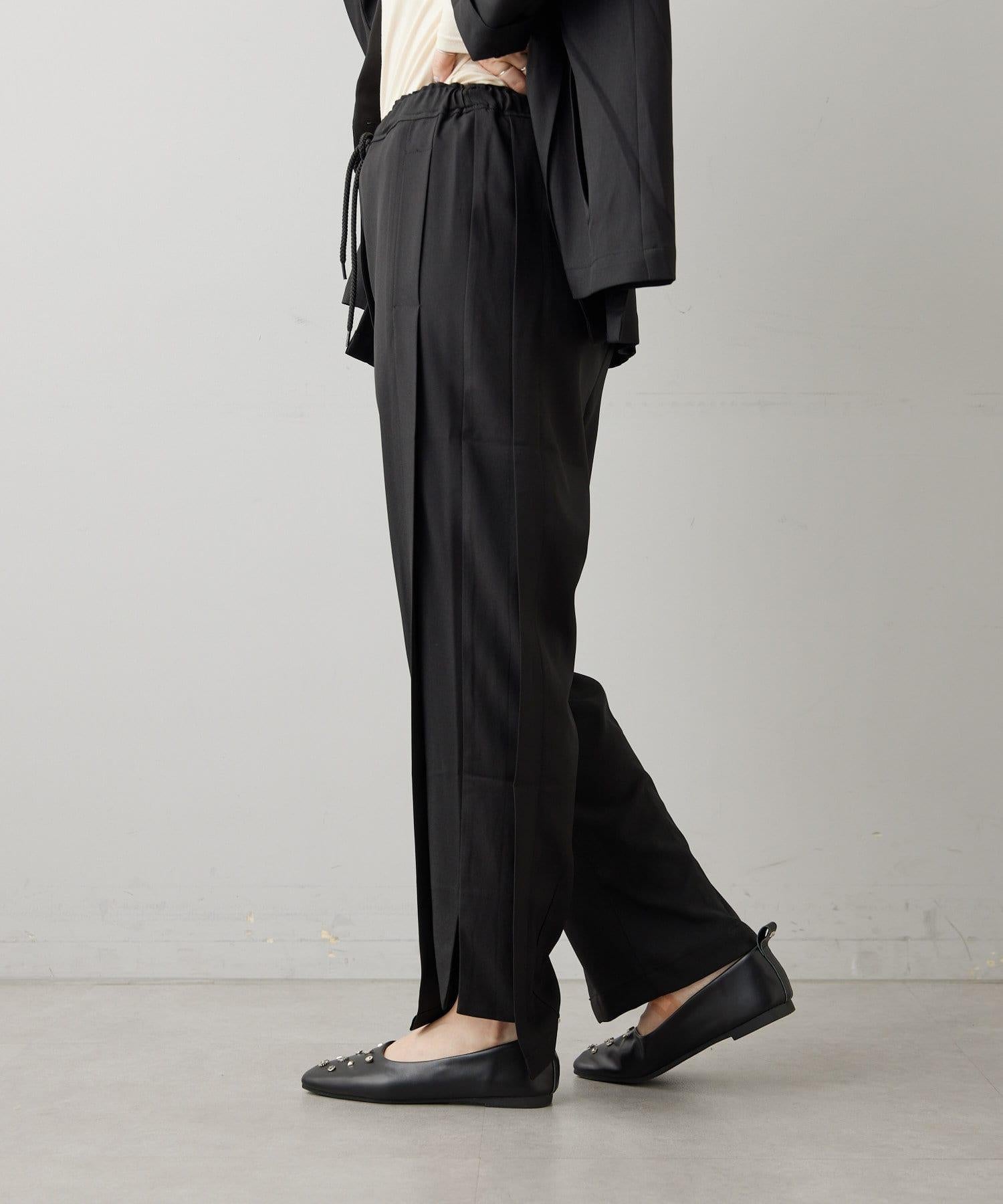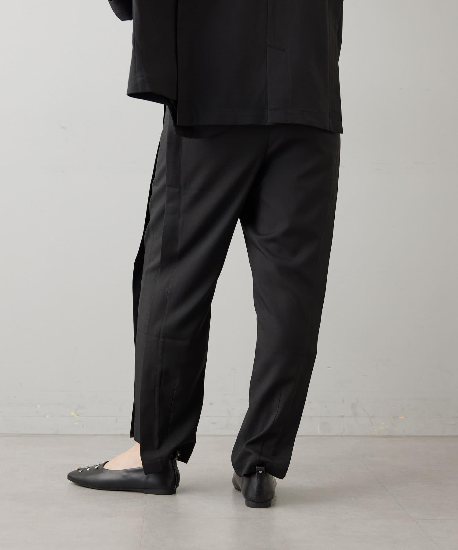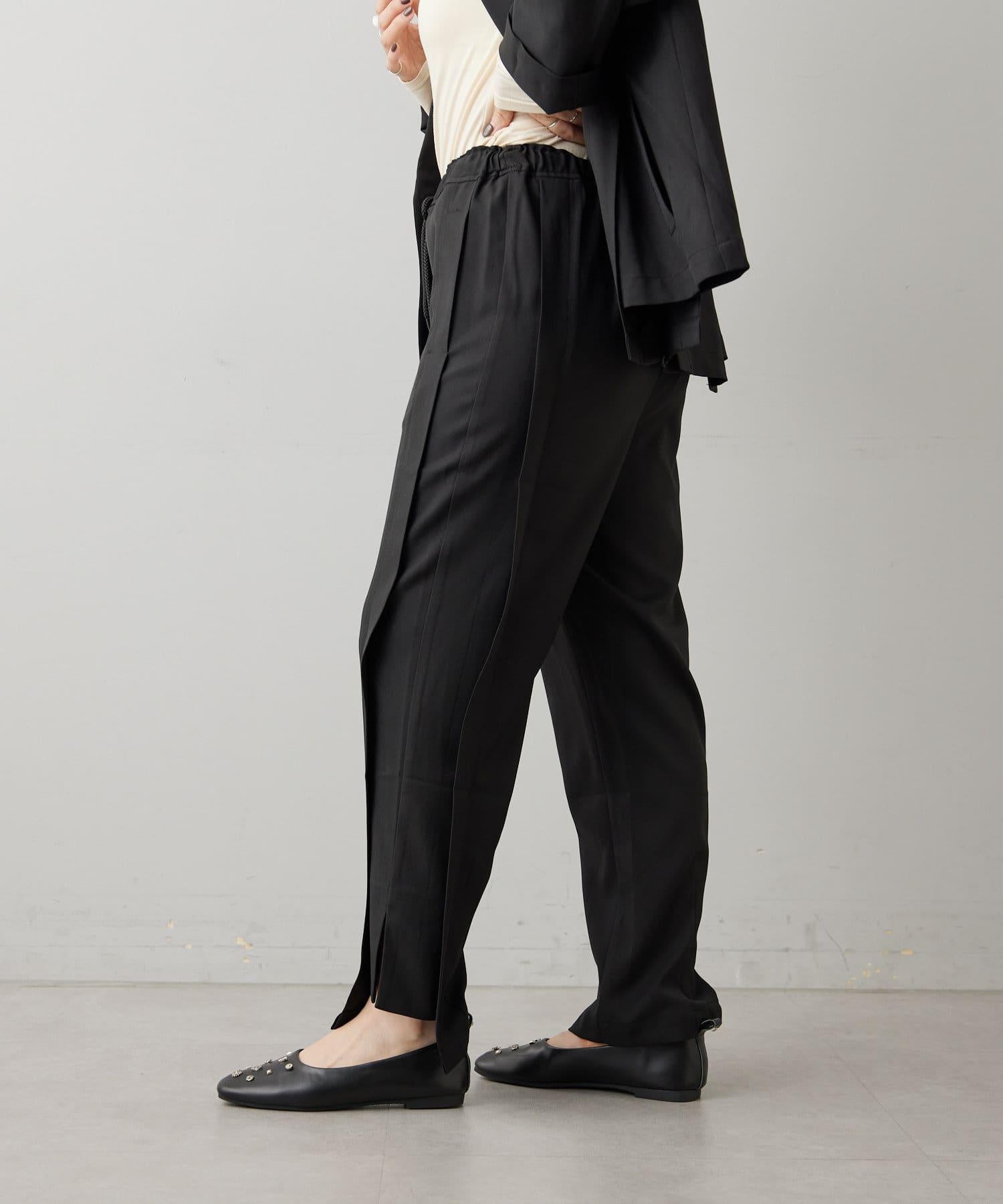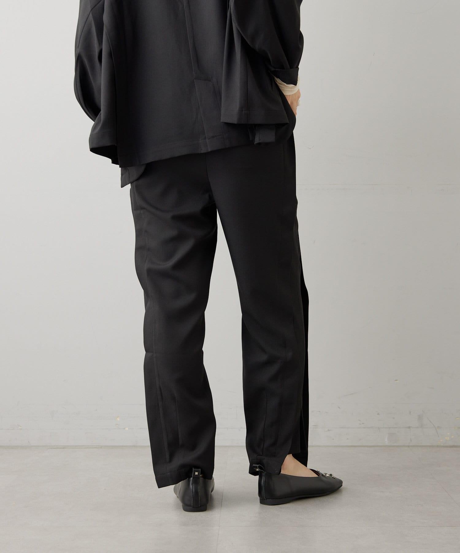 剪裁強調垂直線條,具有拉長腿部線條的效果。
