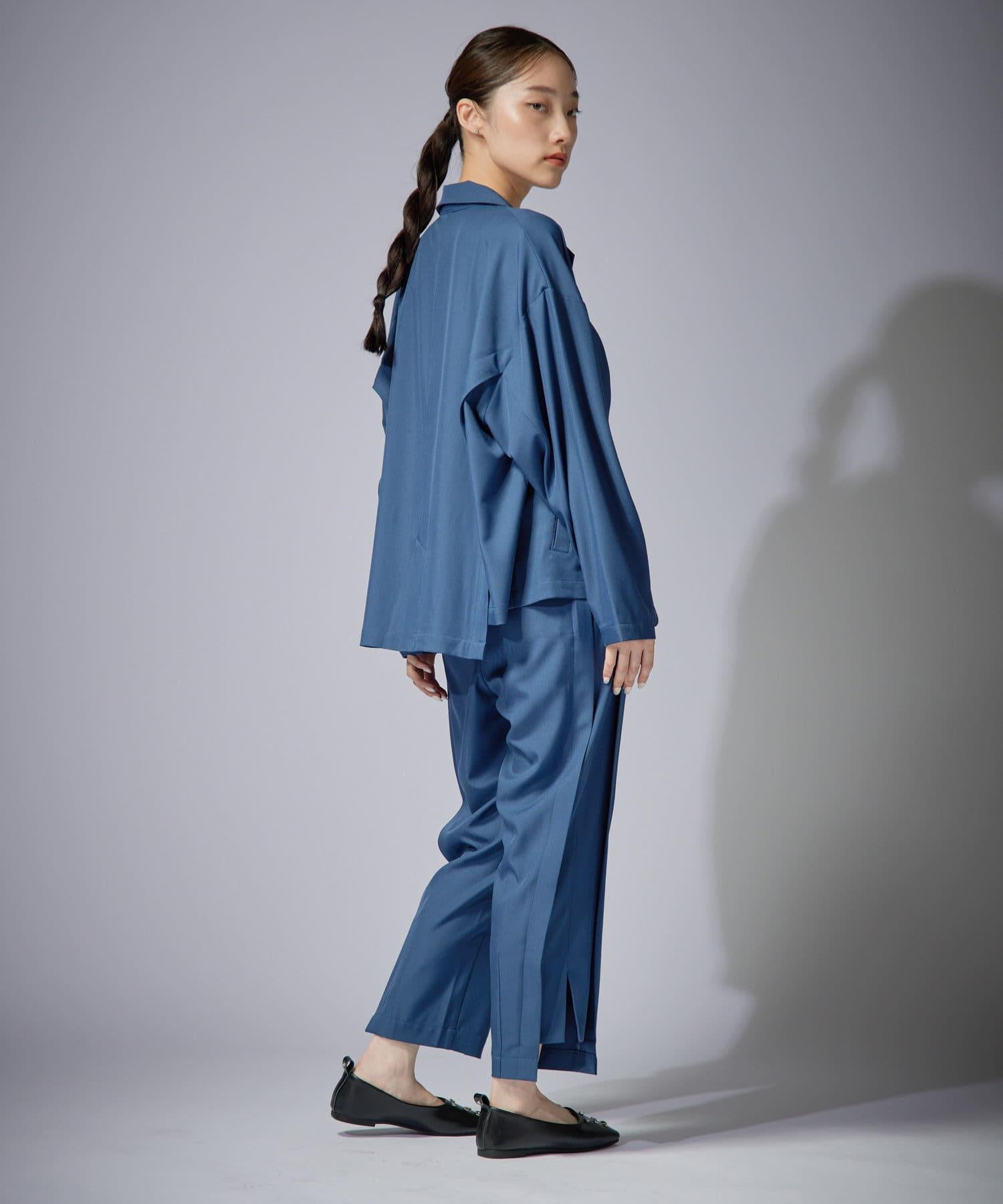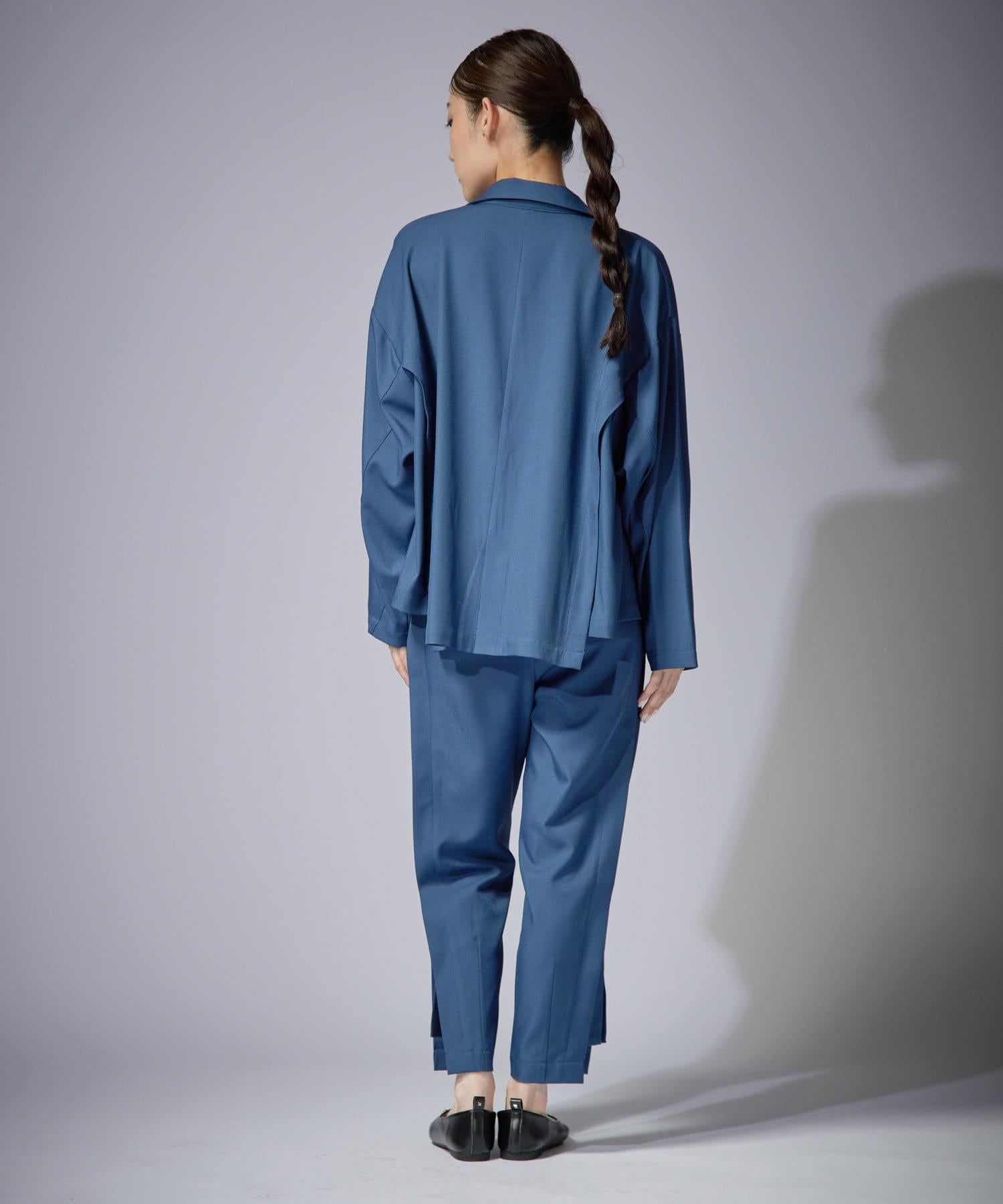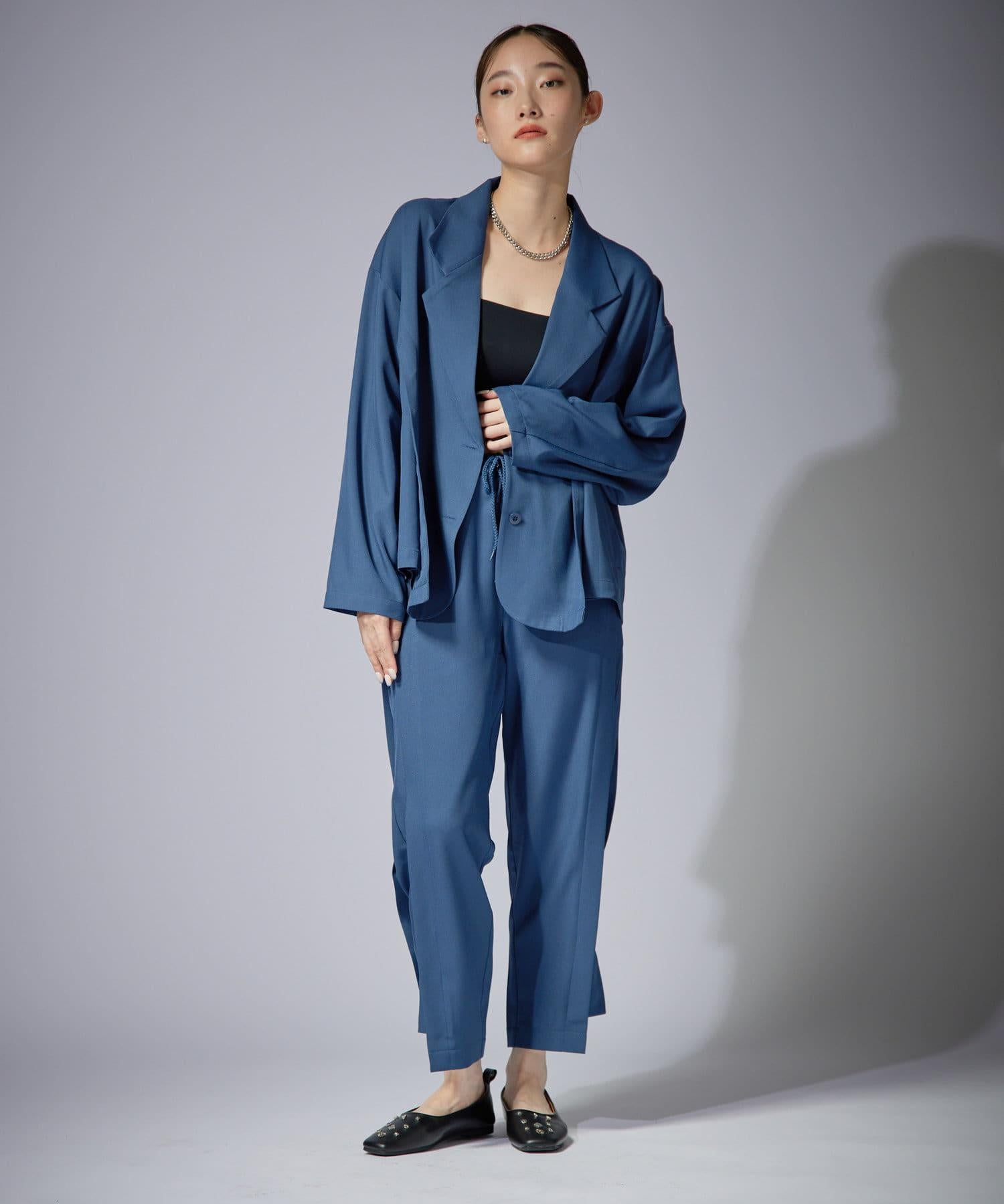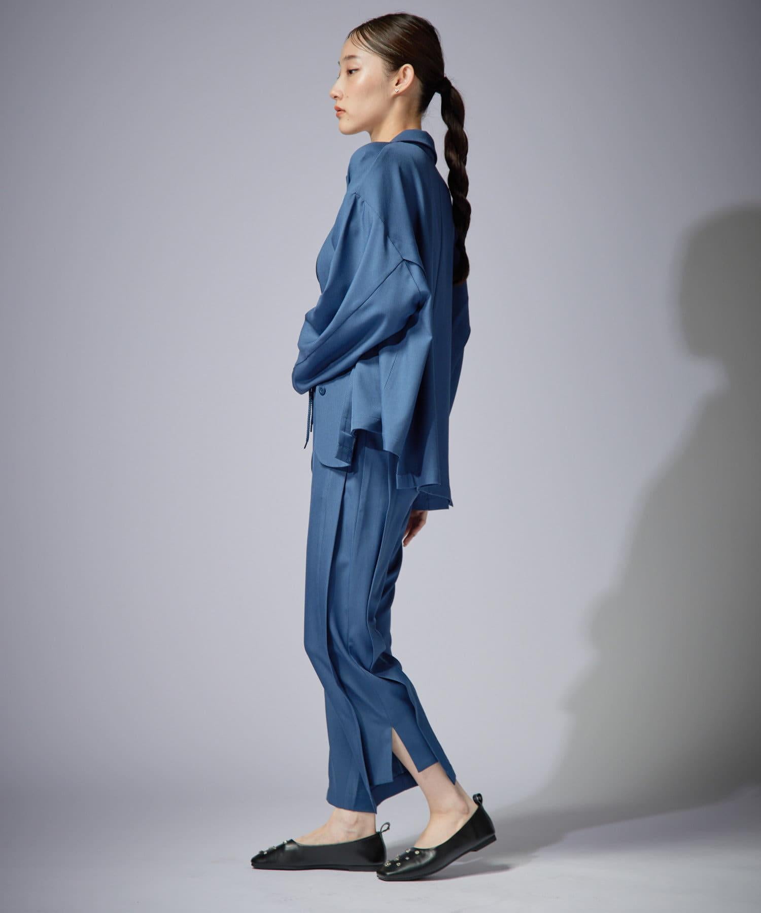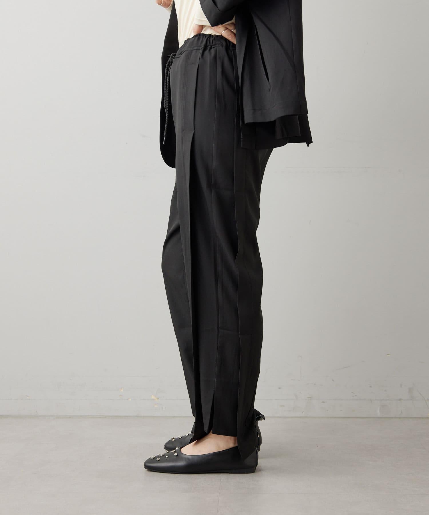 剪裁強調垂直線條,具有拉長腿部線條的效果。