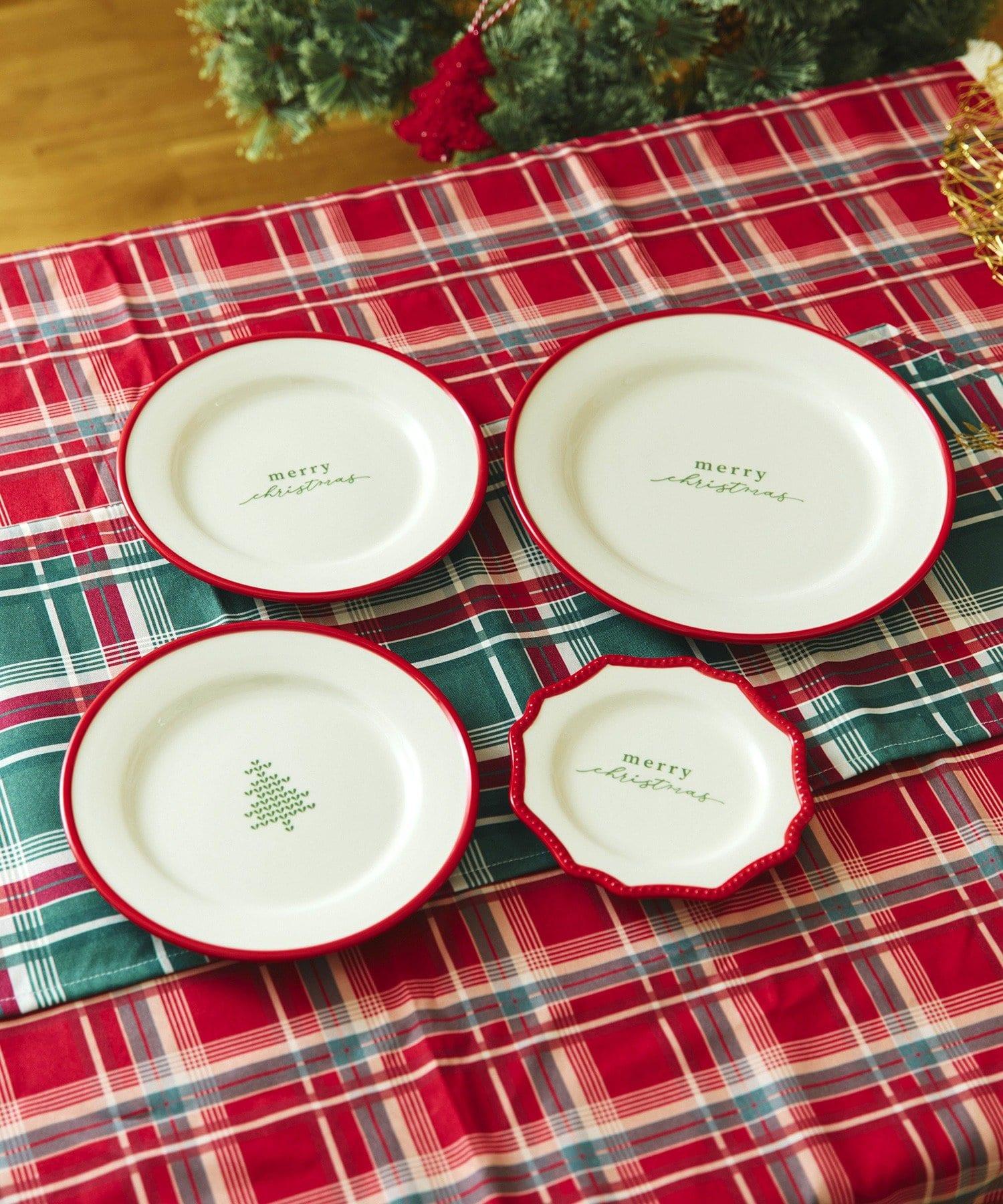 盤子中央裝飾有 "聖誕快樂 "字樣,為餐桌營造出濃濃的節日氣氛。
