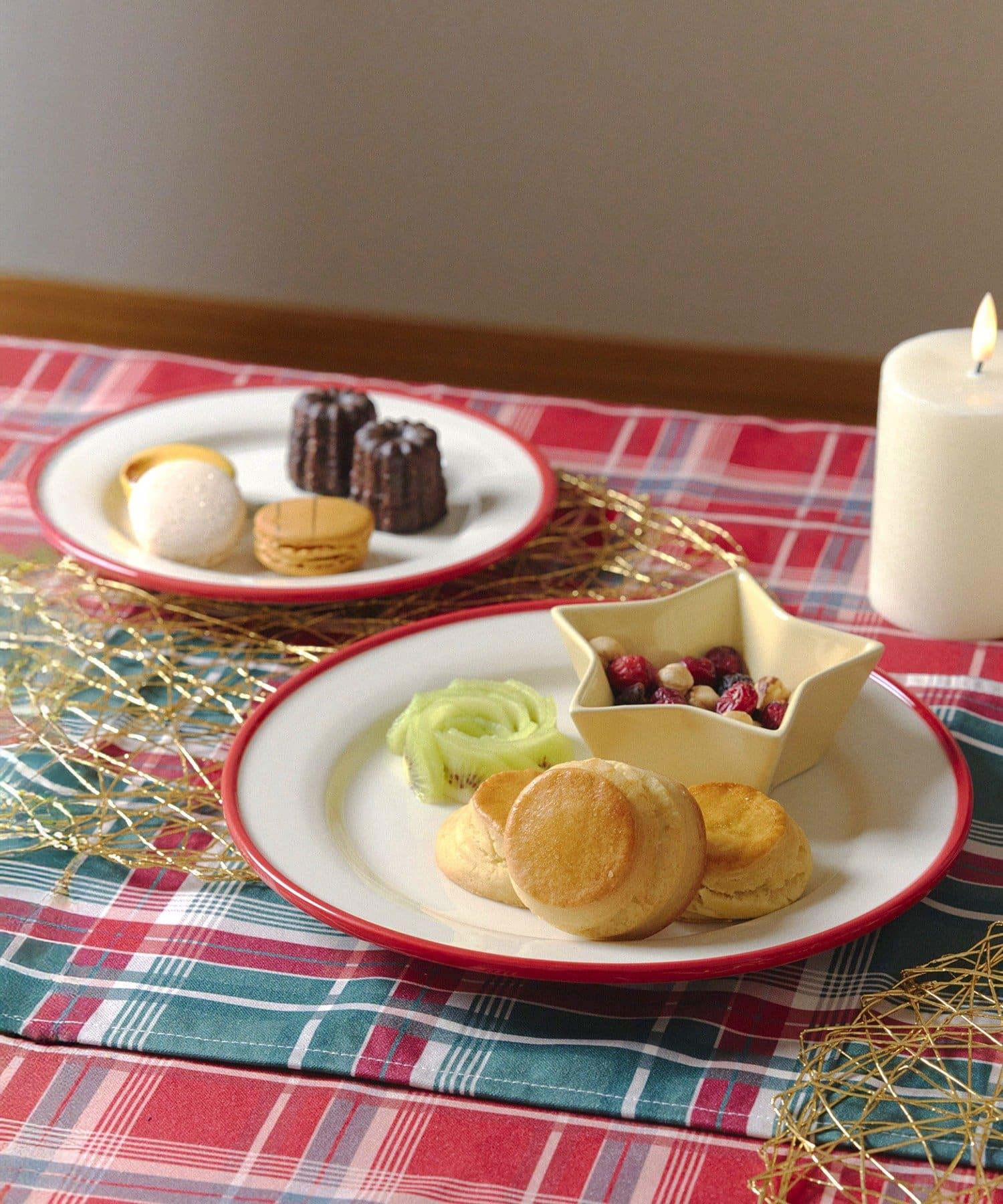 盤子以白色為底,配以紅色線條,充滿了聖誕氣氛。