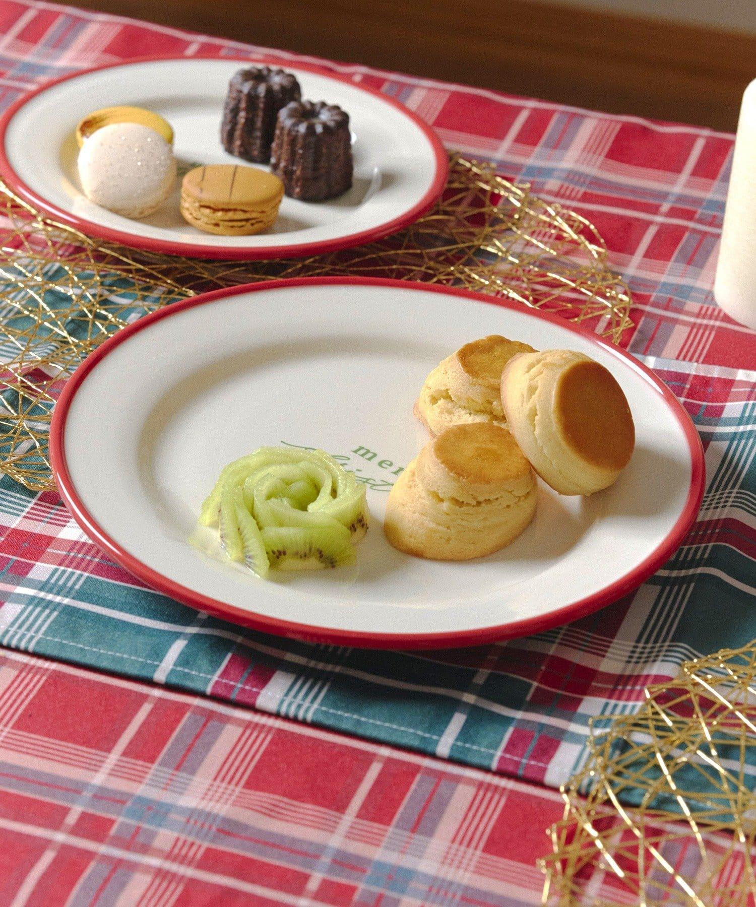 盤子以白色為底,配以紅色線條,充滿了聖誕氣氛。