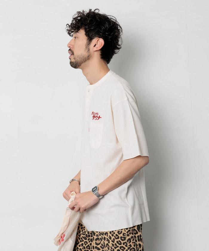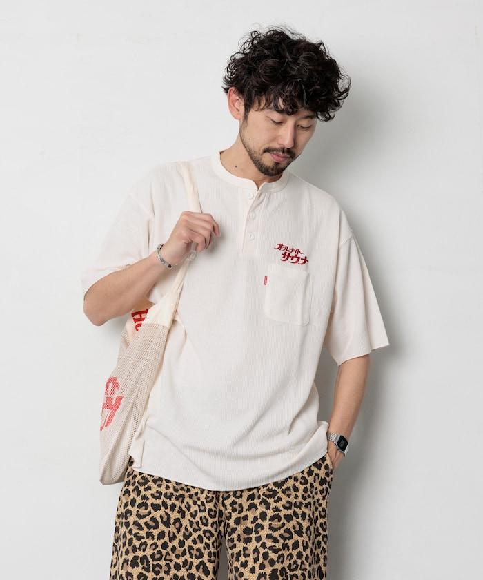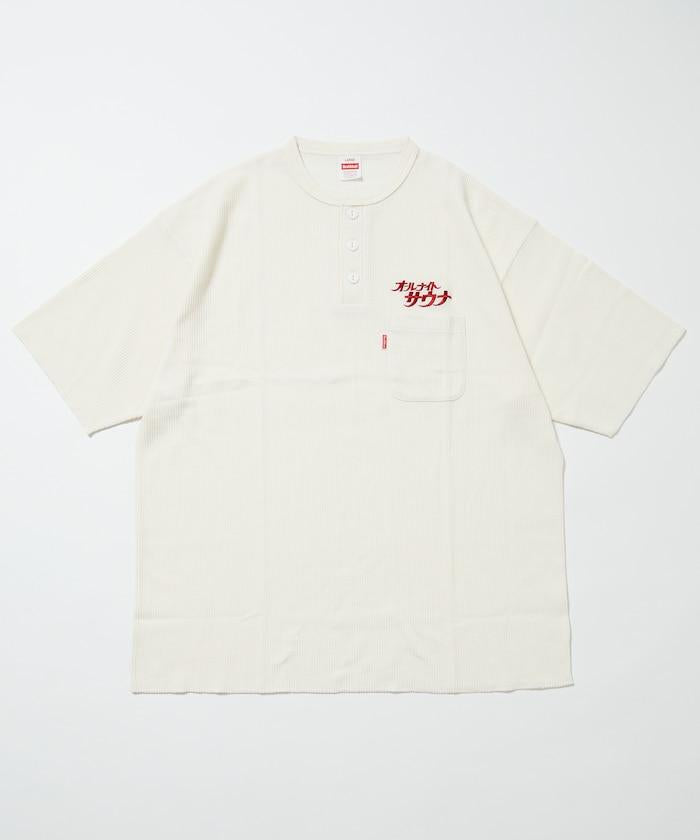 這款套裝的靈感來自膠囊酒店和超級公共浴室中常見的 "kannai gi",上面繡有 SAUVENIR 標誌性的 "All Night Sauna "標識。