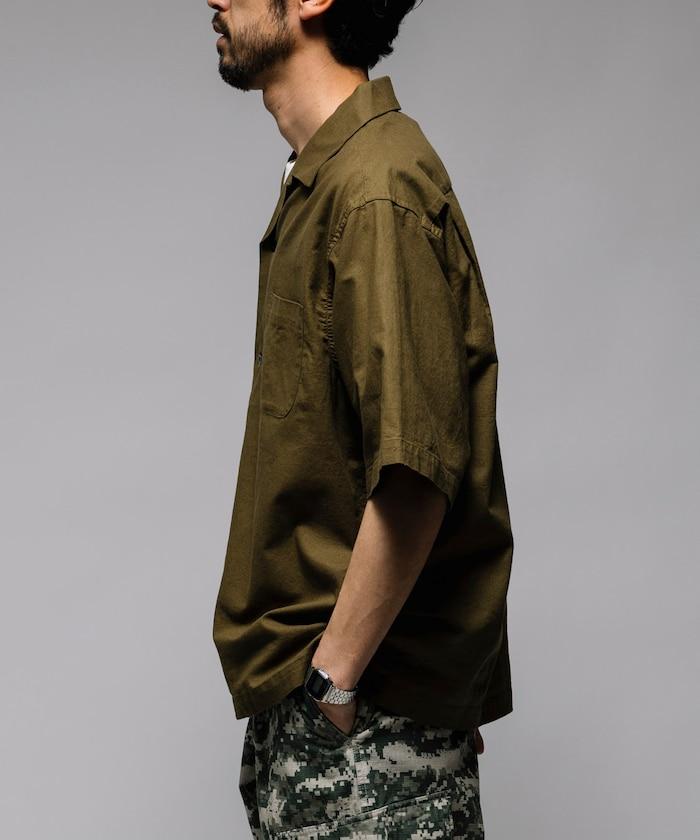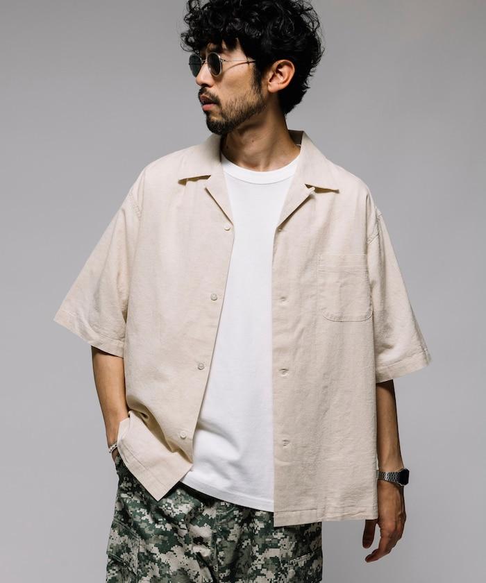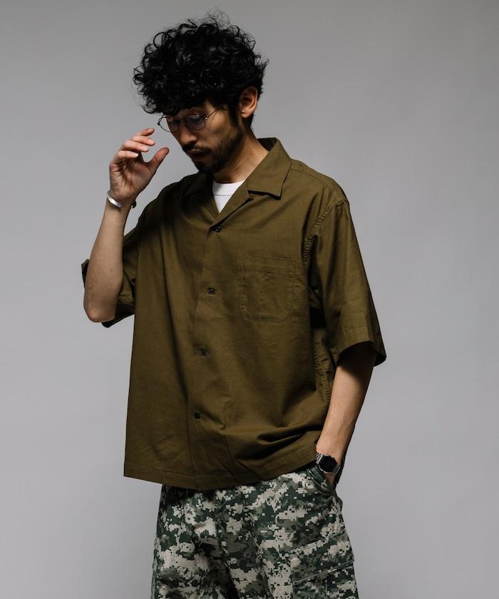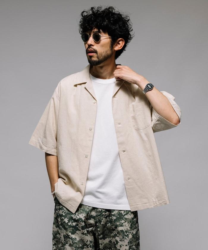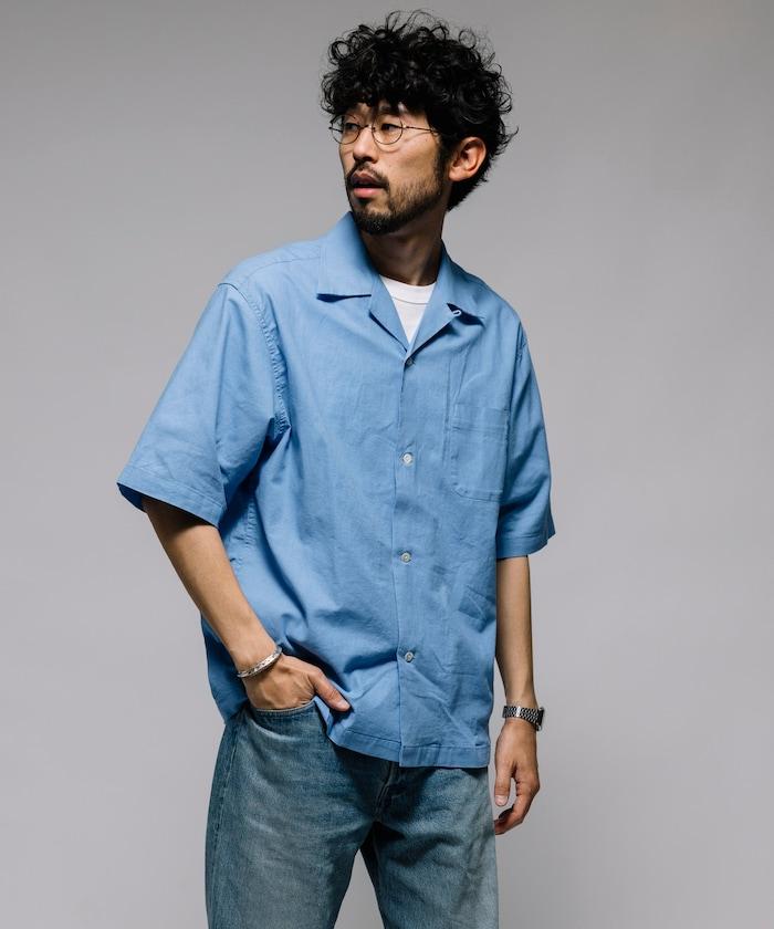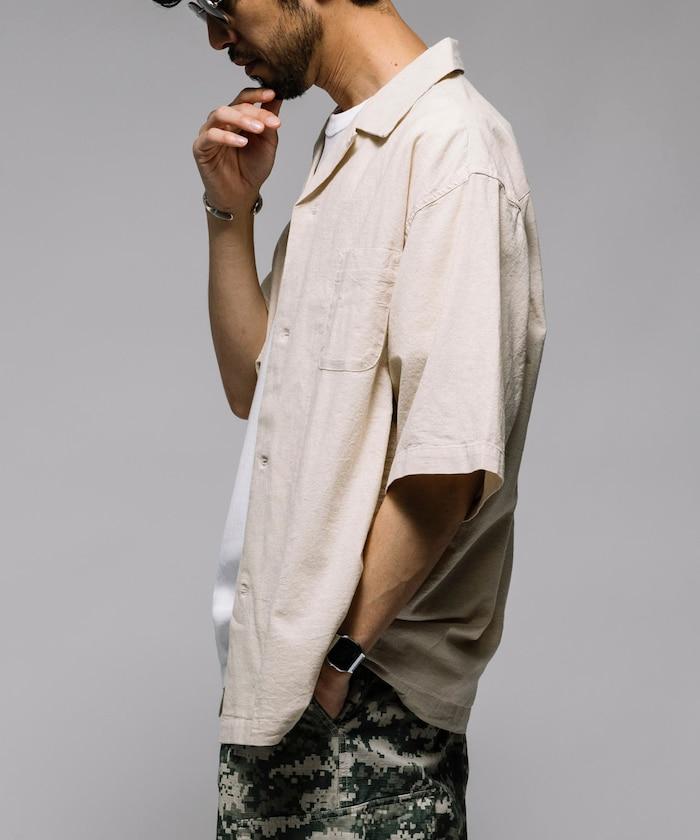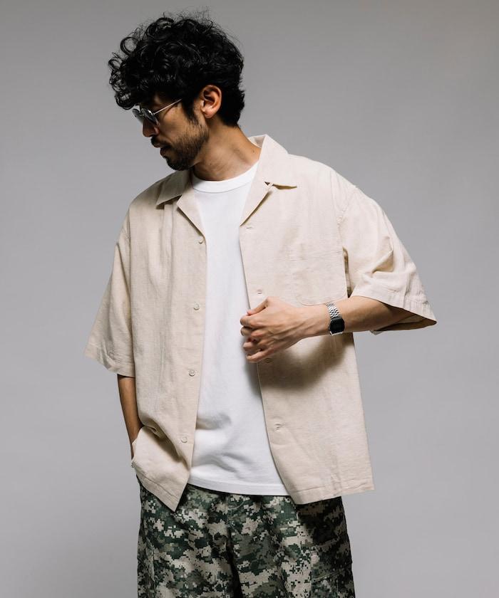 短袖開領襯衫由棉麻面料製成,手感涼爽乾爽。