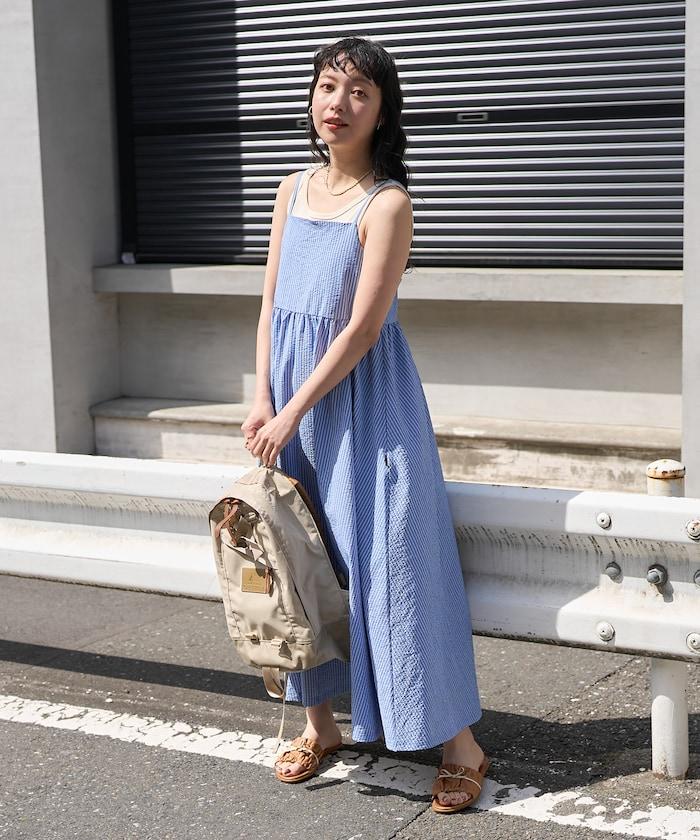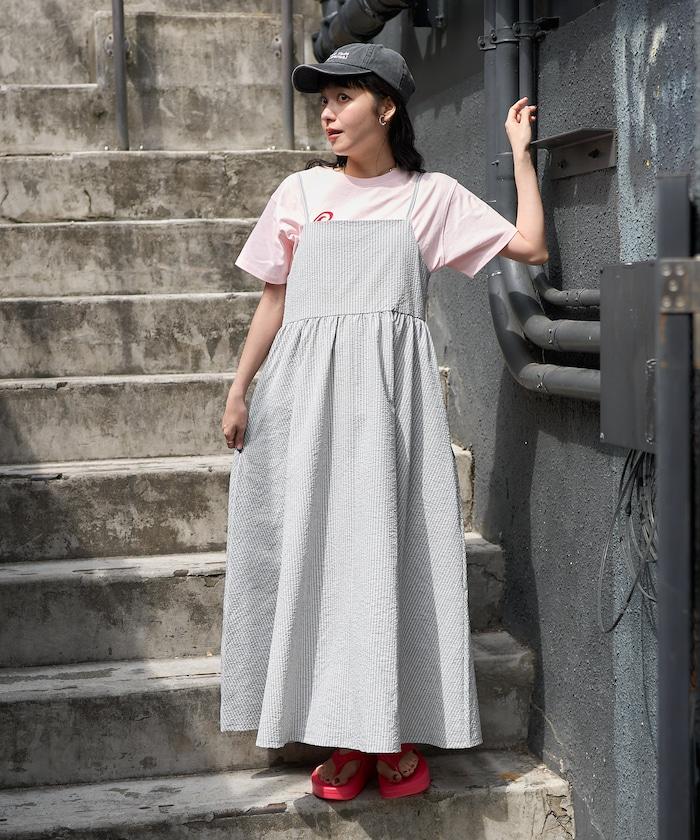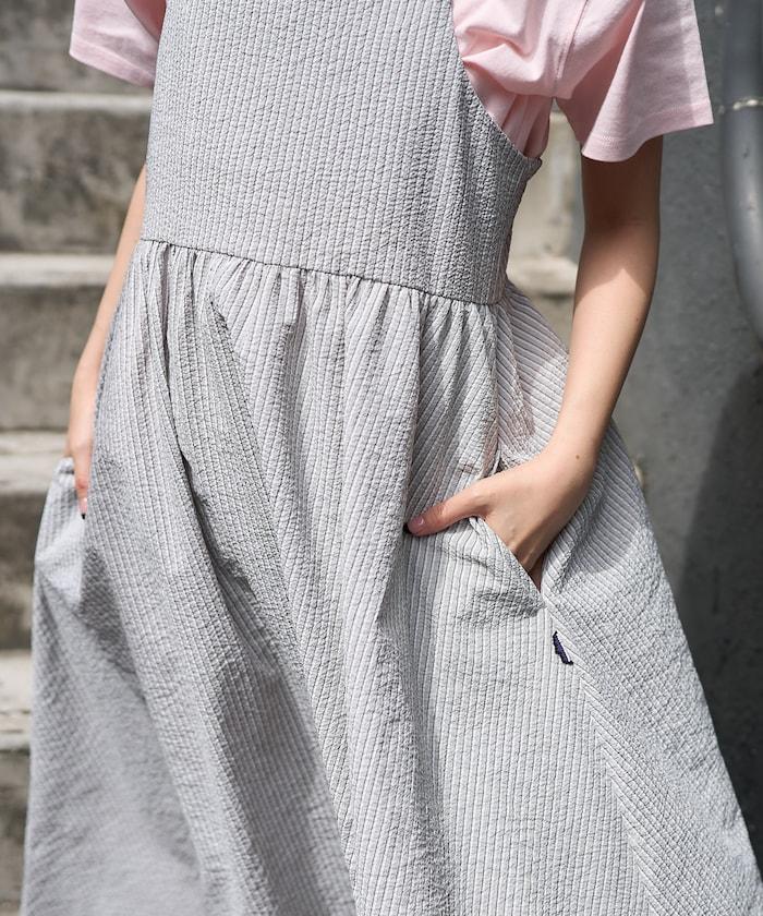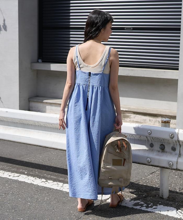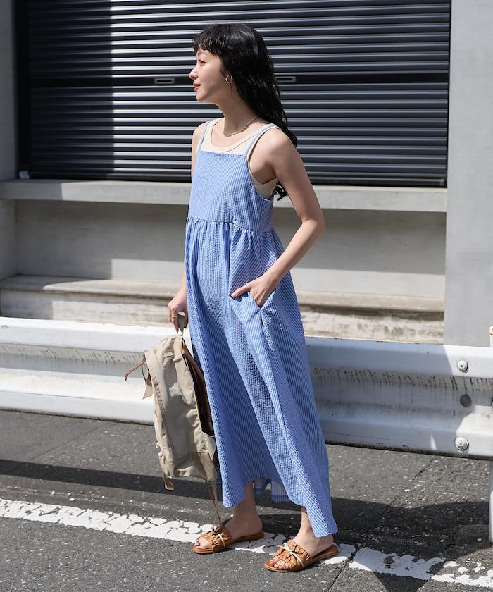 採用清涼的海魂衫面料的吊帶連衣裙。