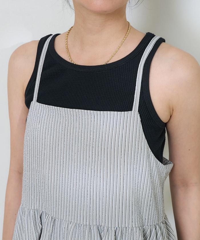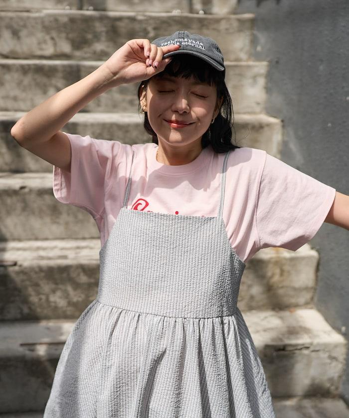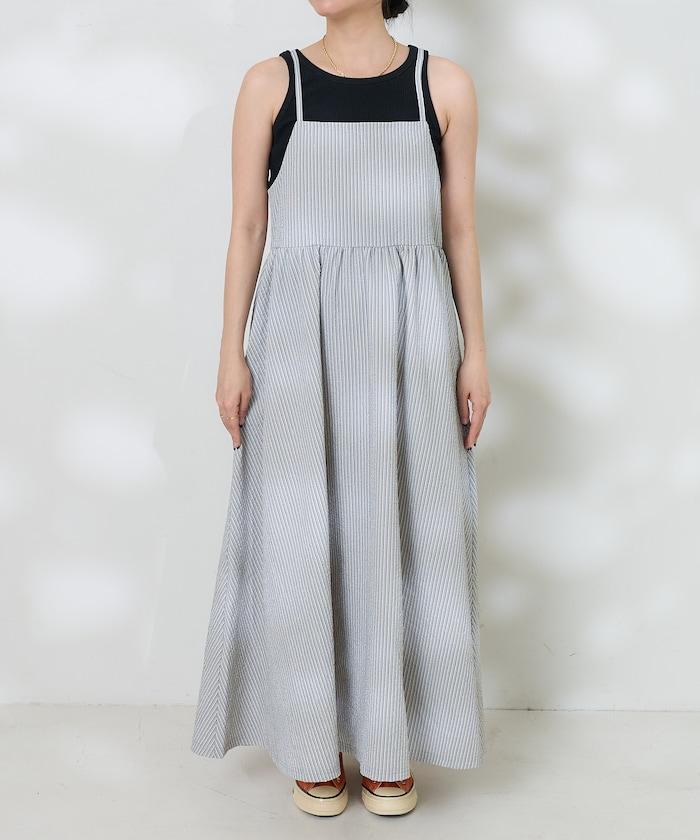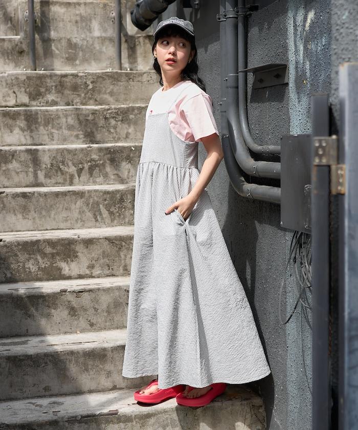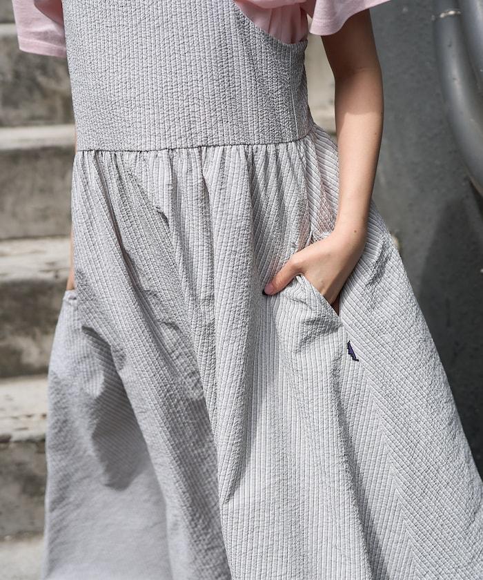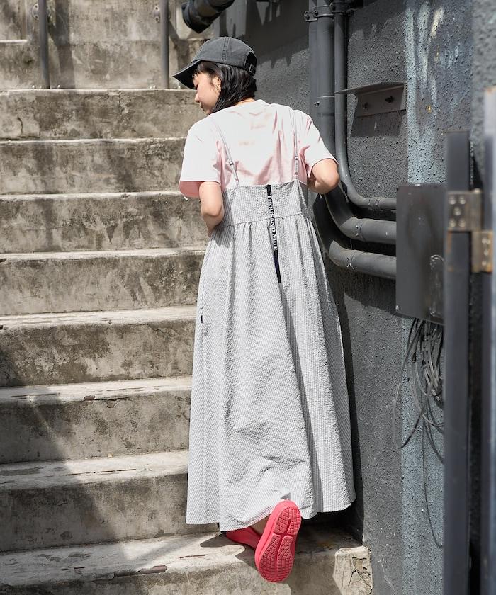 採用清涼的海魂衫面料的吊帶連衣裙。