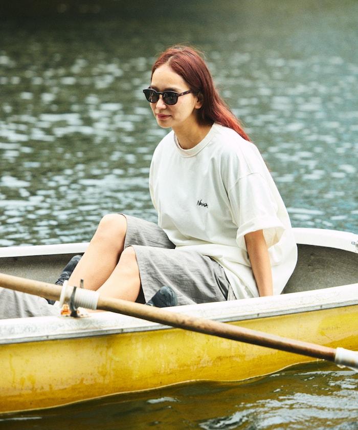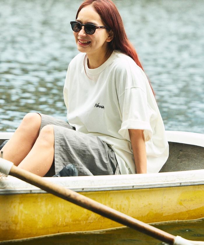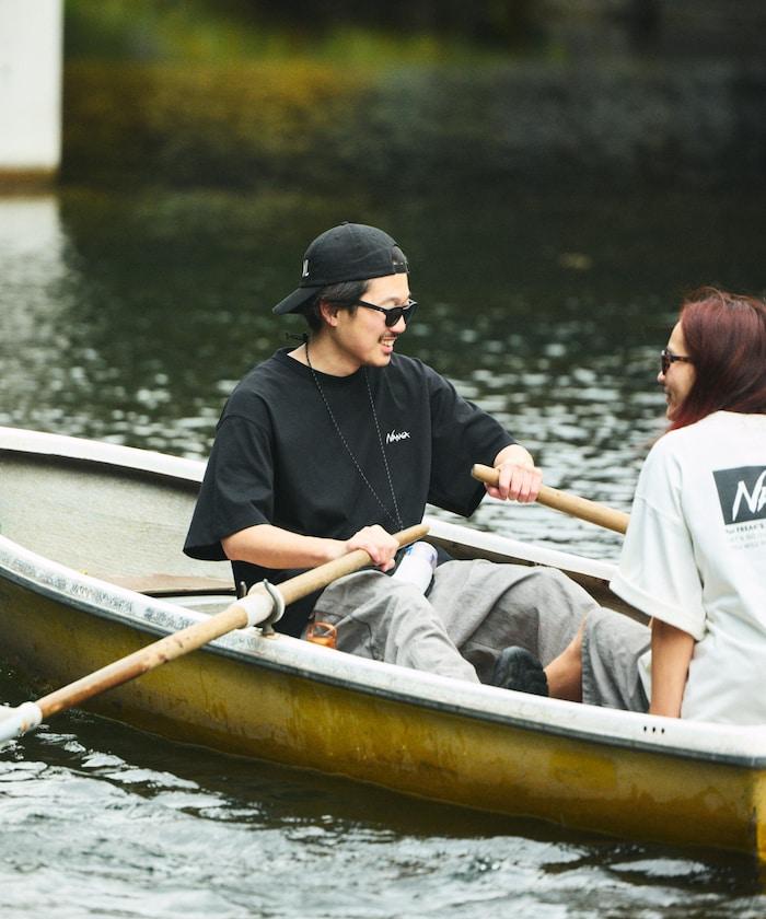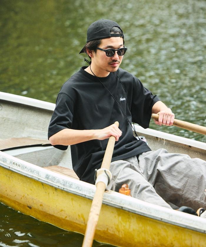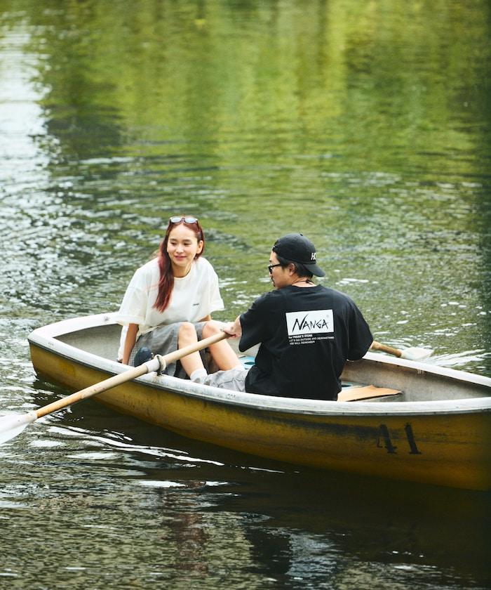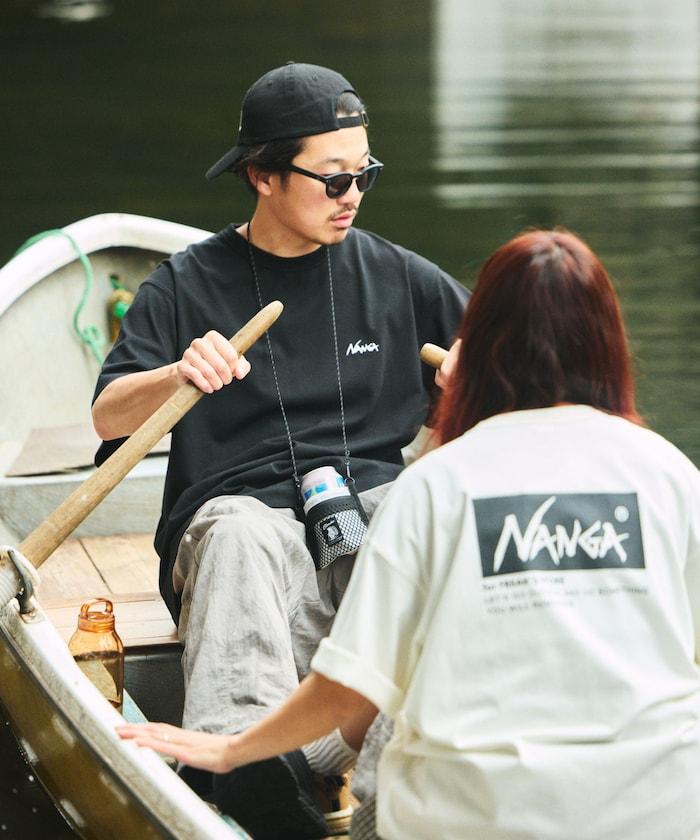 特別定製刺繡 T 恤,正面刺繡熟悉的 Nanga 徽標設計,背面印花。
