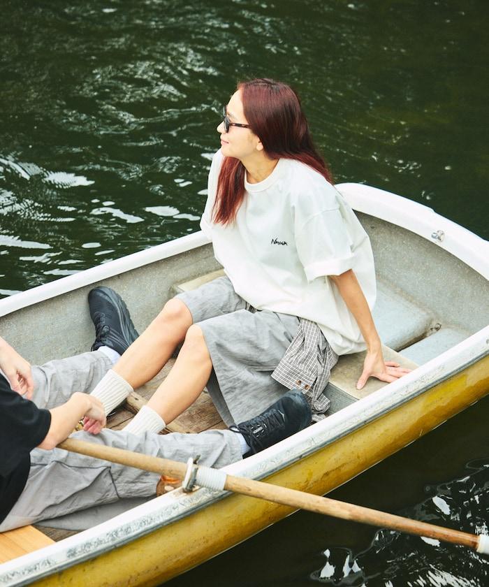 特別定製的刺繡 T 恤,正面和背面都有熟悉的 Nanga 徽標設計。