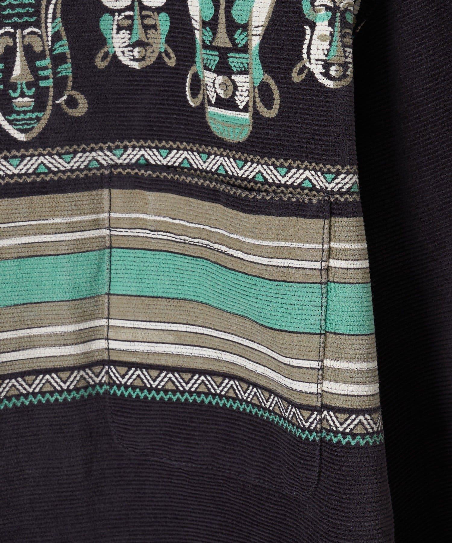用柔軟的燈芯絨面料製成的設計襯衫,帶有色彩斑斕的本土圖案。