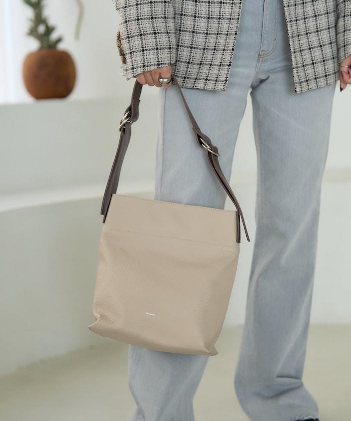 腰帶由光滑皮革製成,包身由粒麵皮革製成。