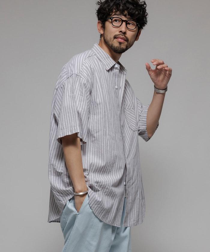 聯名 皺紋加工 舒適版型 常規領口 短袖條紋襯衫