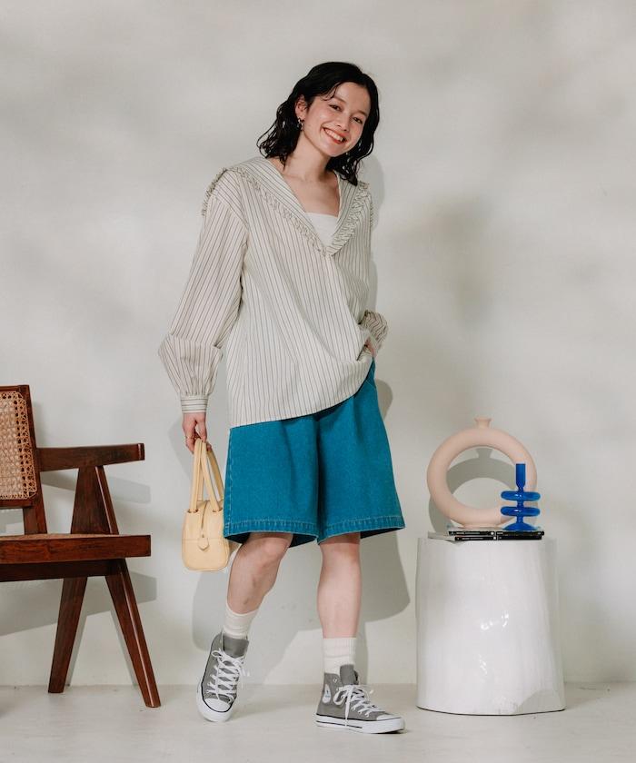這款半長褲的廓形寬大,易於穿著,給人以舒適感。