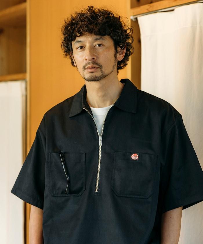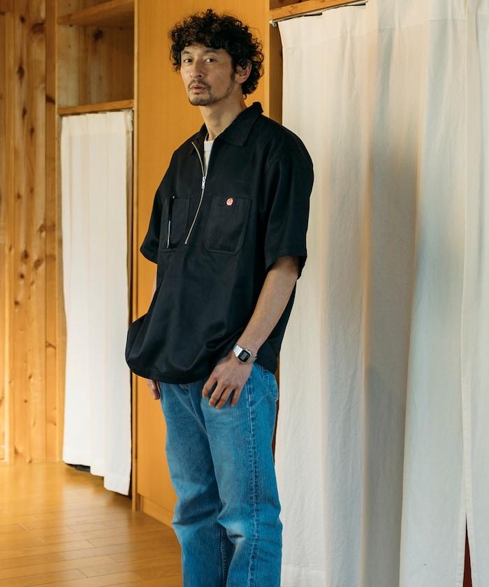 聯名 舒適版型 半拉鍊 一點標誌 短袖斜紋工裝襯衫 純色