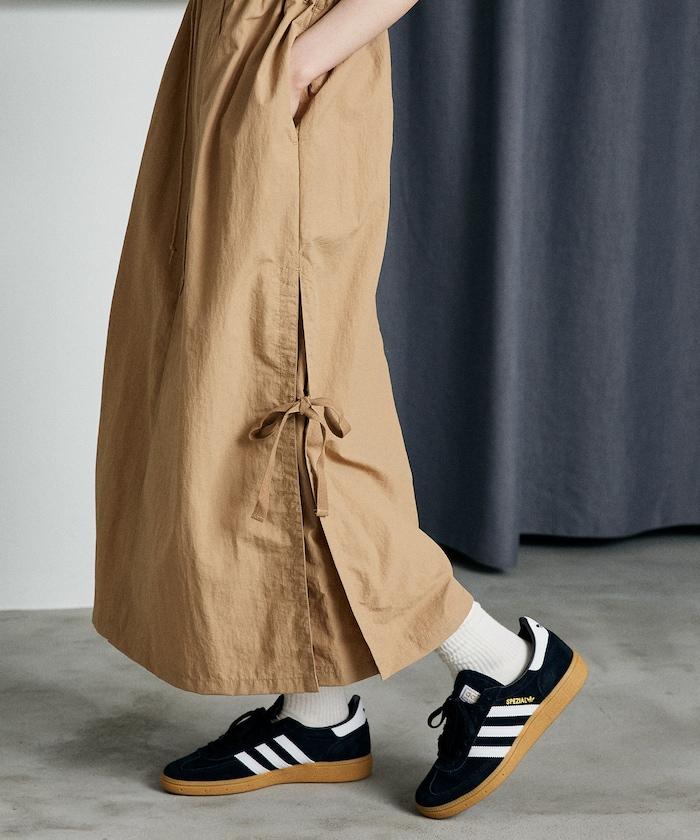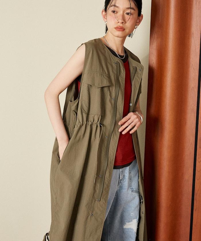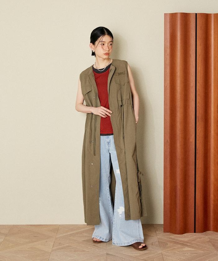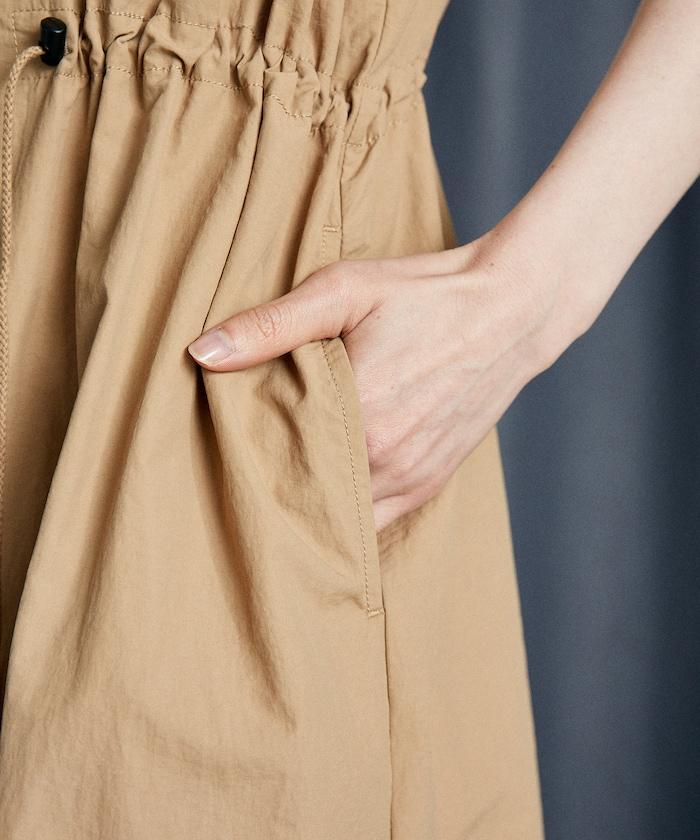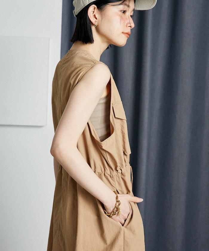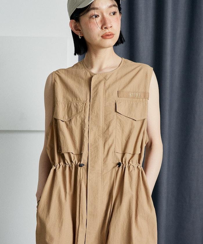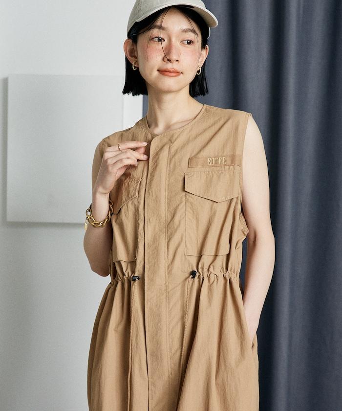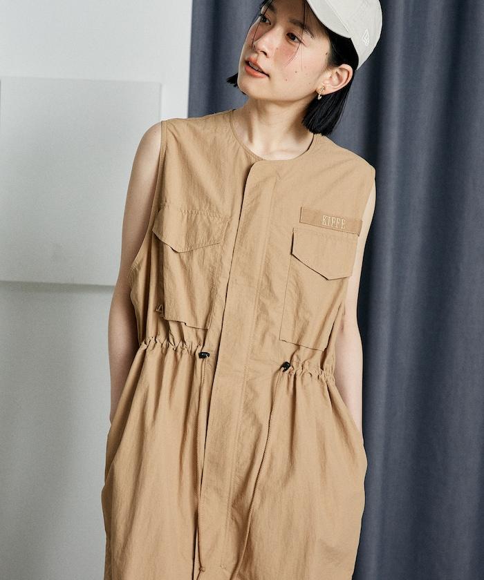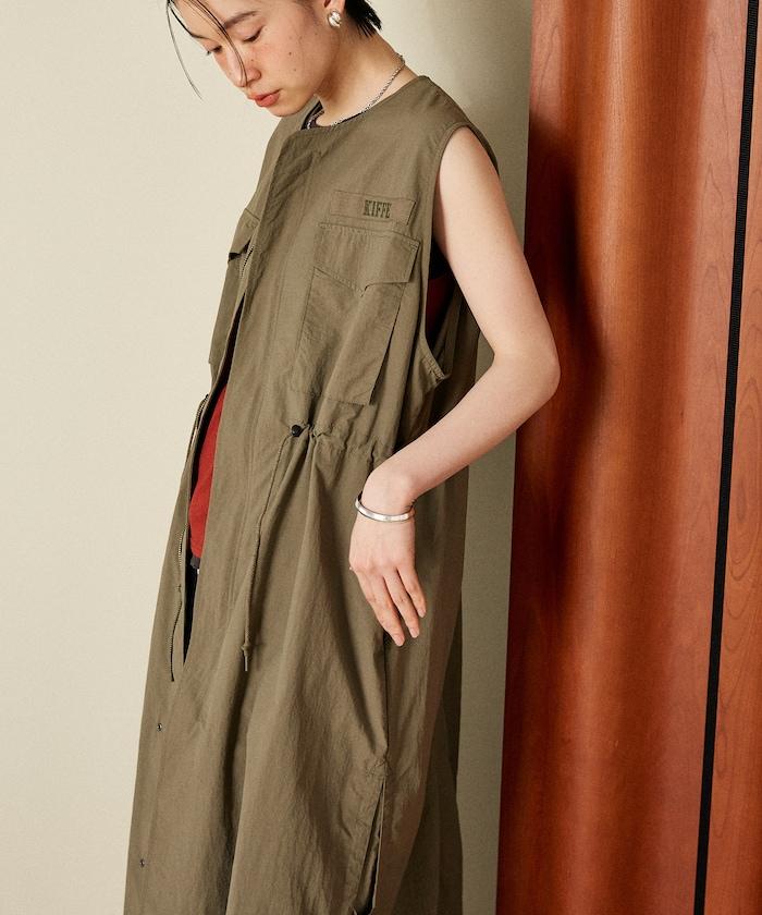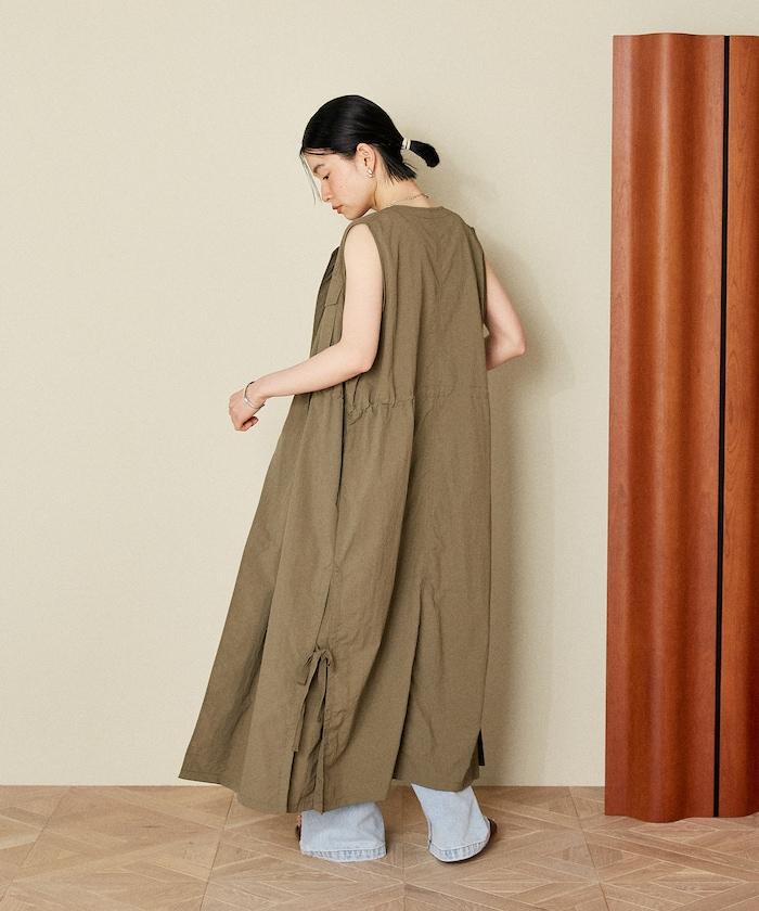 這款連身裙既有時尚感,又融入了翻蓋口袋和側面繫帶等軍裝設計細節。