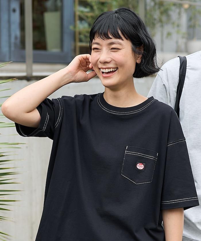 口袋式 T 恤,胸前口袋有姓名標籤。